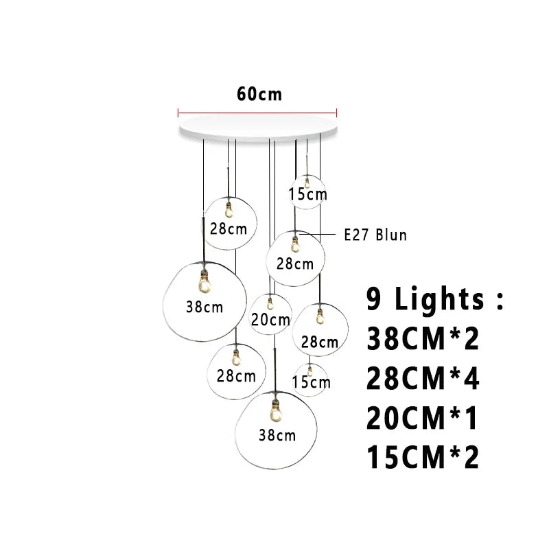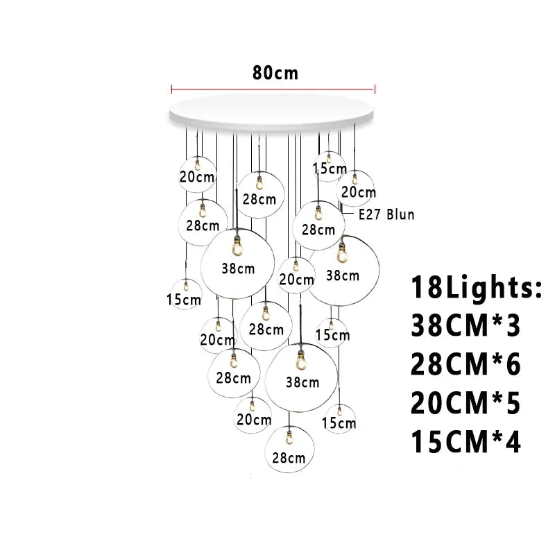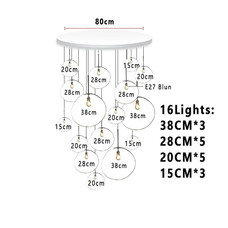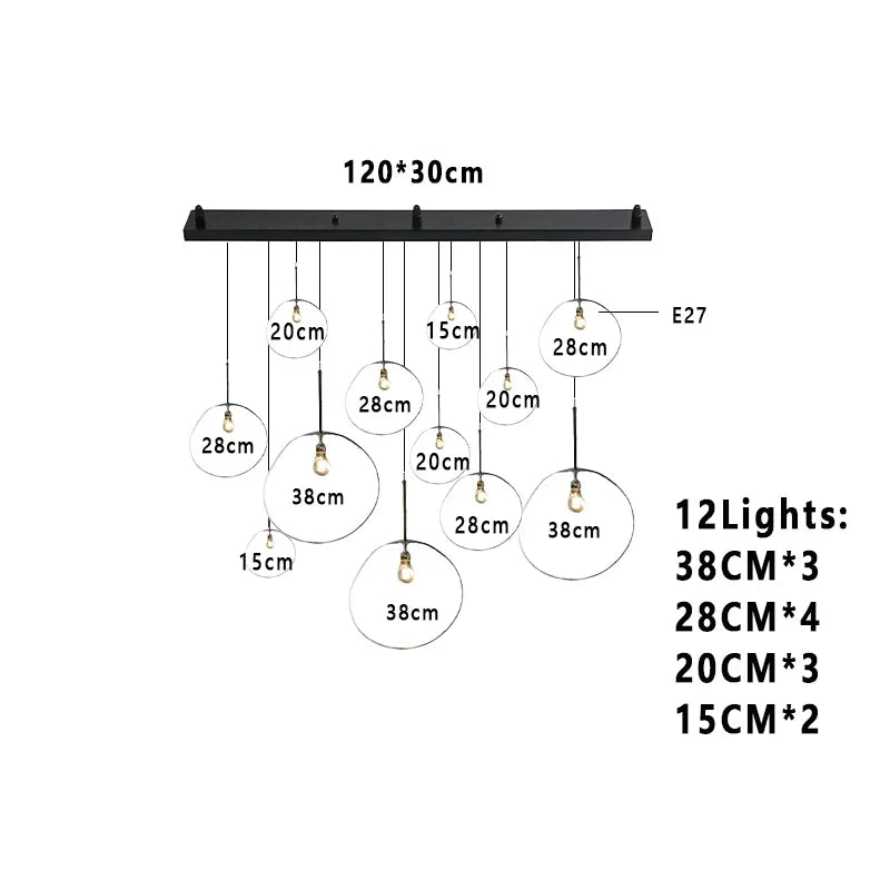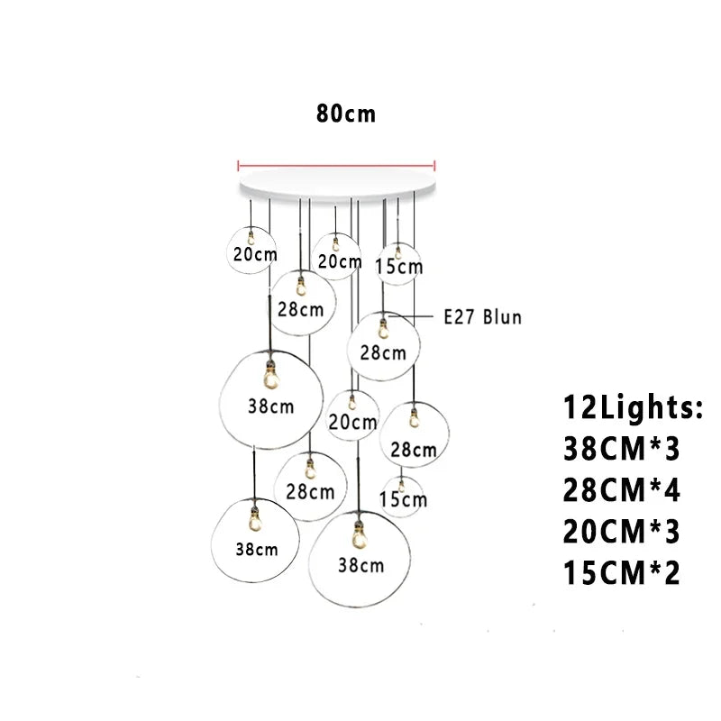 This chandelier features an E27 base type with included LED bulbs, providing efficient, long-lasting illumination that covers an area of 10-15 square meters. The installation type is a cord pendant, allowing flexible placement over dining tables, in studies, bedrooms, or hotel lodging and hallways for a welcoming ambiance.