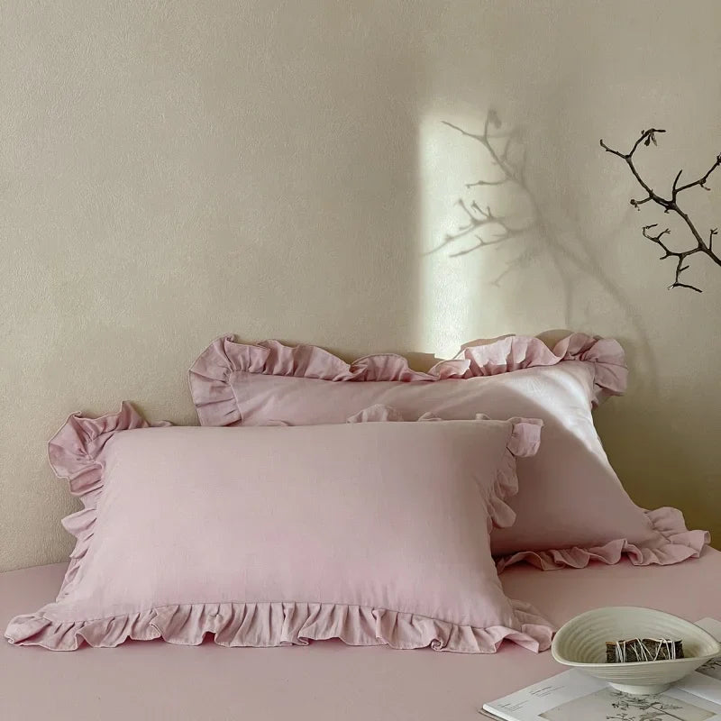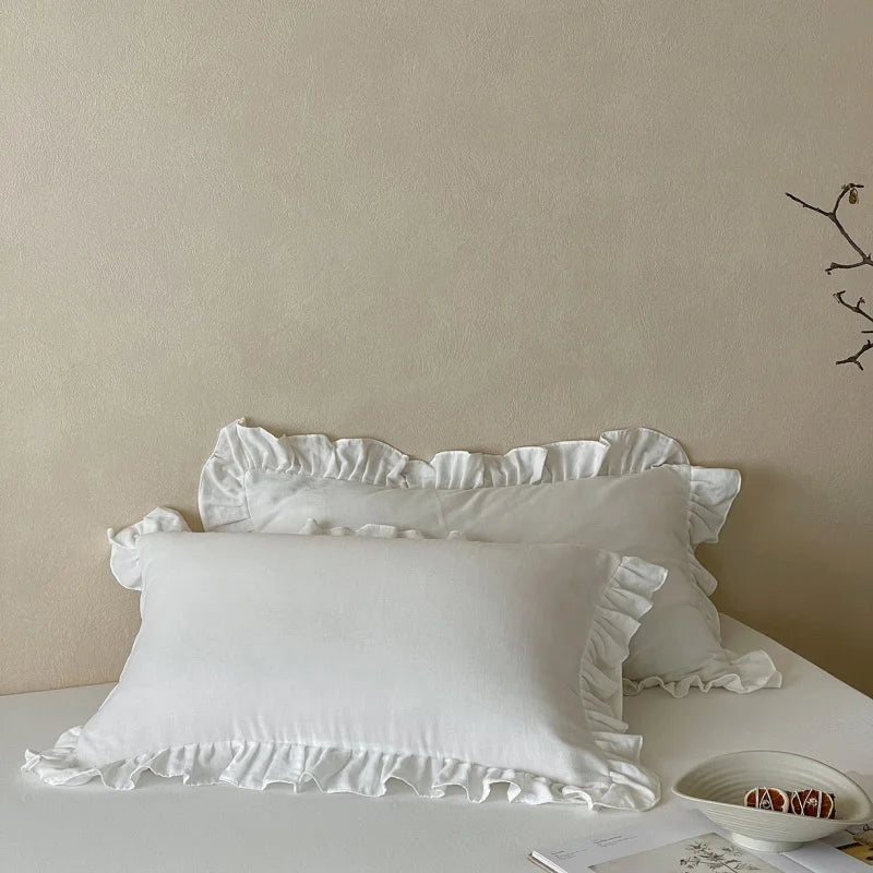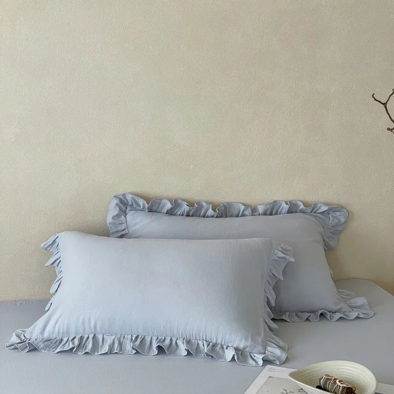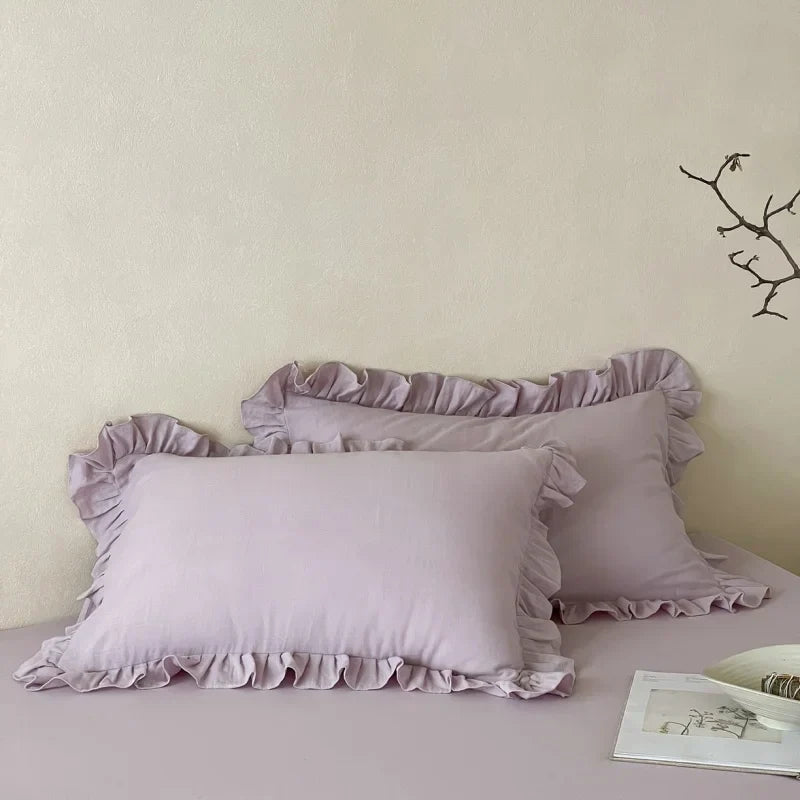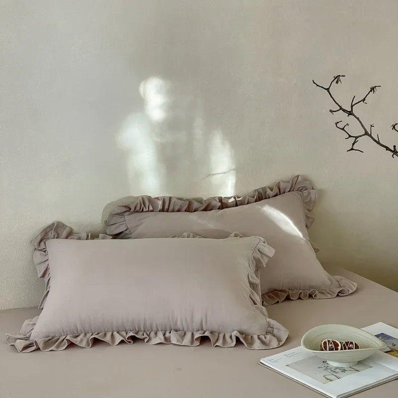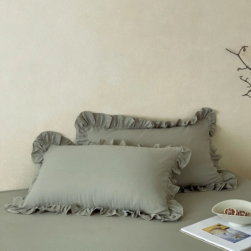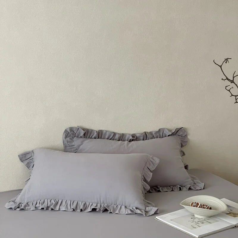 Axyaa Double Layer Cotton Gauze Pillowcases with Ruffles