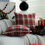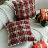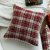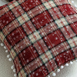 Elevate the cozy charm of your home this holiday season with the Axyaa Double-Sided Plaid Christmas Cushion Cover with Balls. Crafted with meticulous attention to detail, this decorative throw pillow adds a festive touch to your living space.