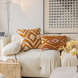 Introducing our Axyaa Geometric Tufted Tassel Cotton Cushion Cover, the perfect addition to elevate your retro bohemia decor. Crafted with high-quality 100% cotton material, this cushion cover features a stylish geometric pattern that adds a touch of modern flair to any space.