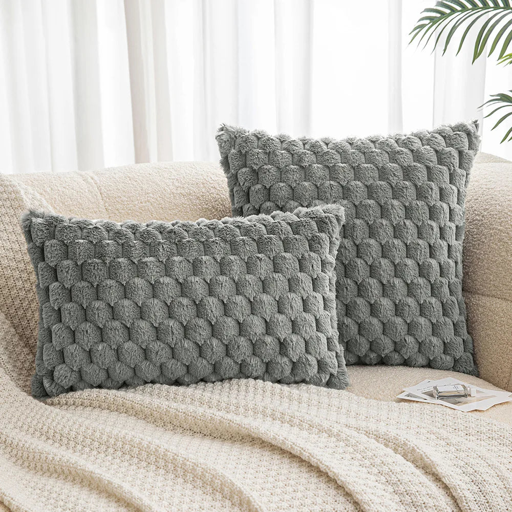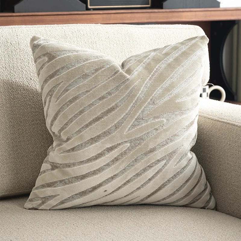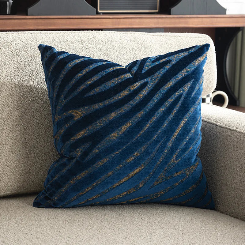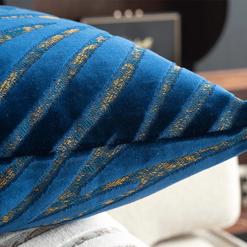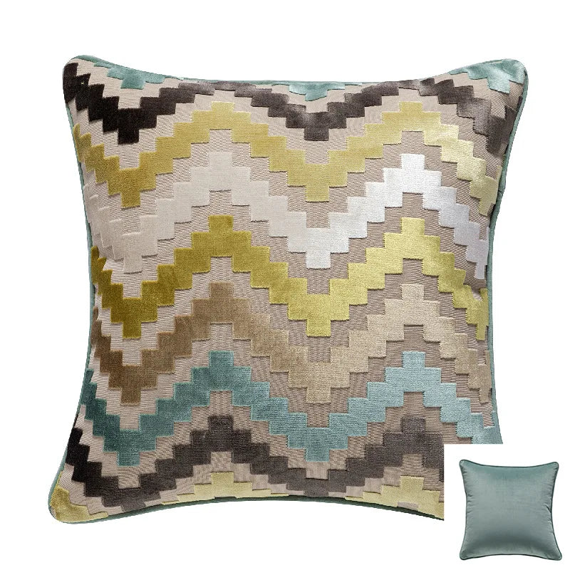 Axyaa Velvet Cushion Cover Zigzag Pattern Soft Pillow Cover in Grey Coffee Blue - 45x45cm/30x50cm/50x50cm