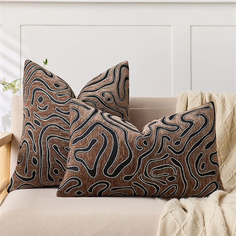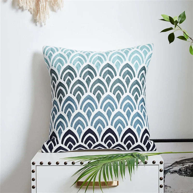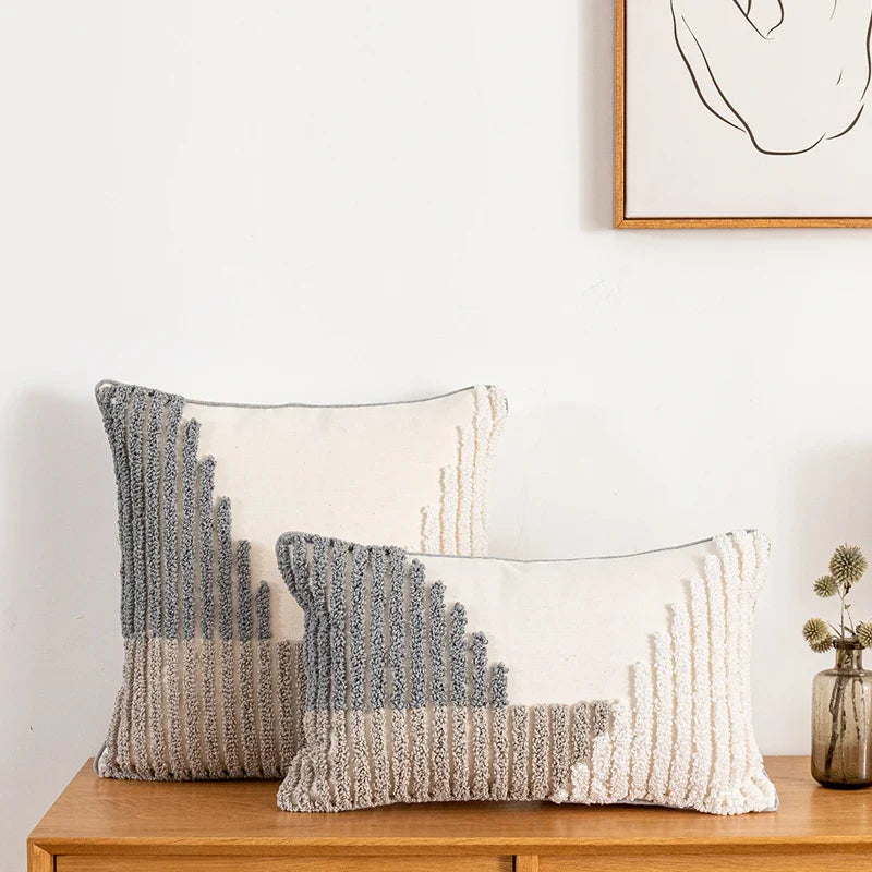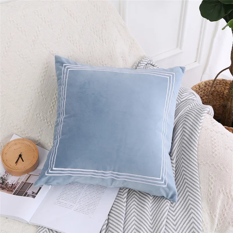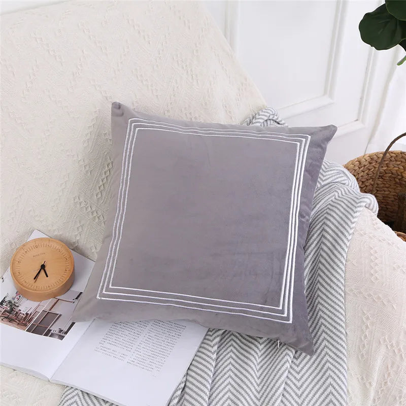Axyaa Velvet Cushion Cover Zigzag Pattern Soft Pillow Cover in Grey Coffee Blue - 45x45cm/30x50cm/50x50cm