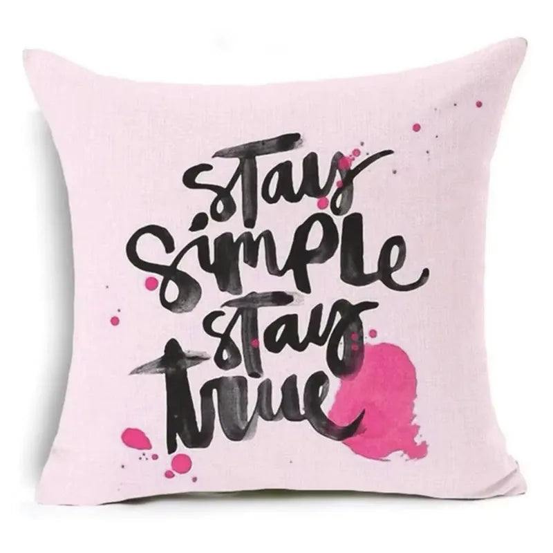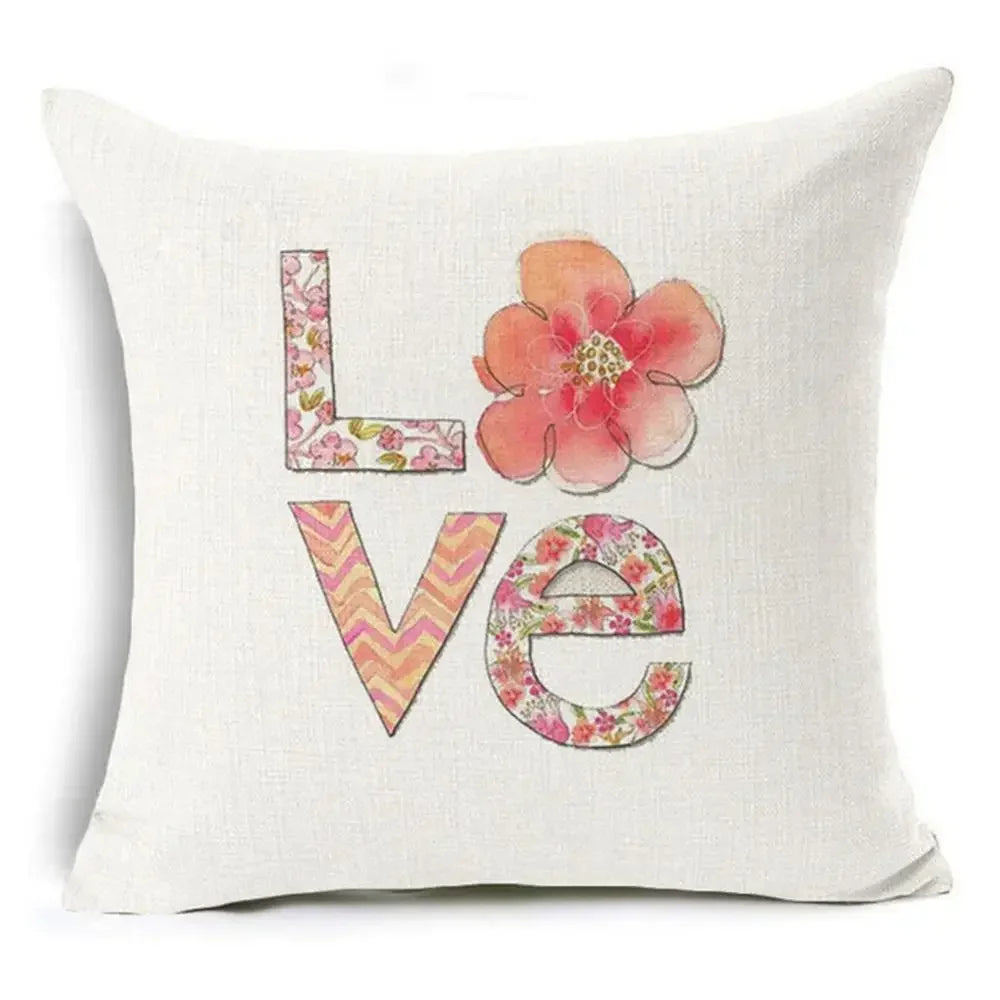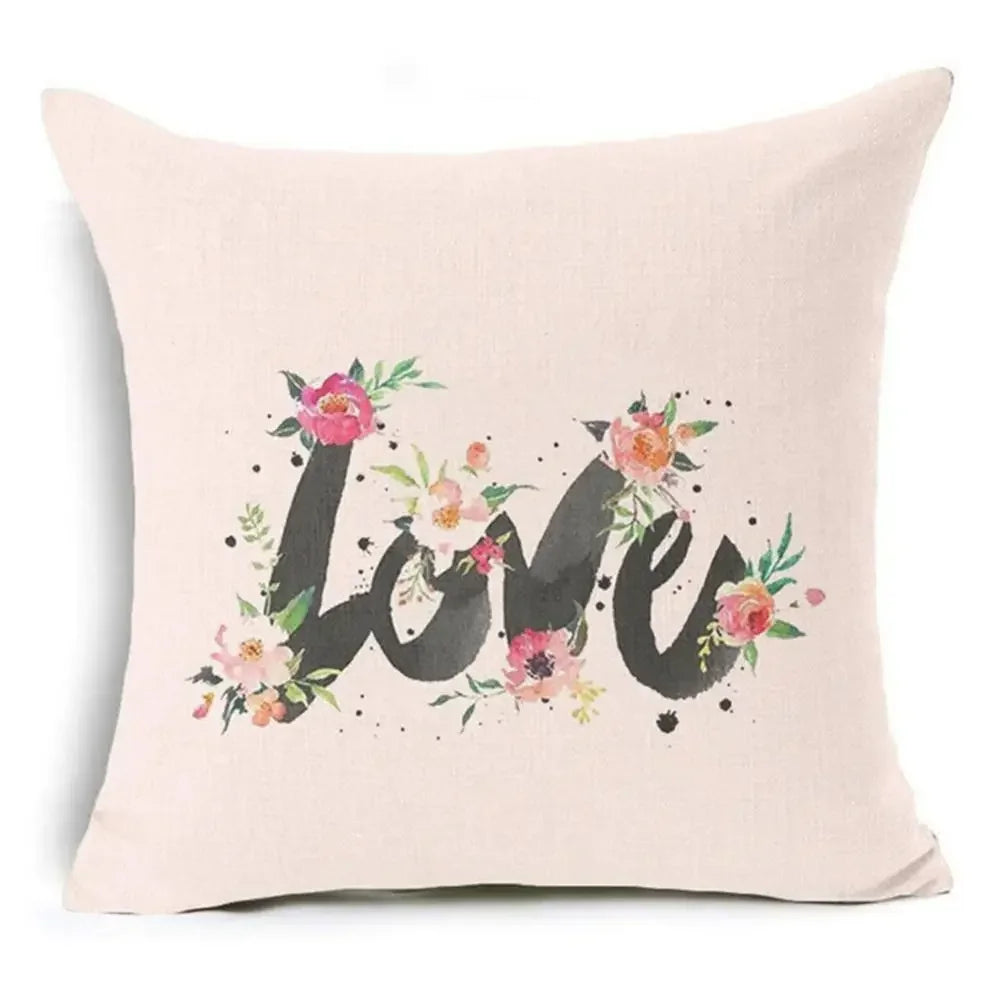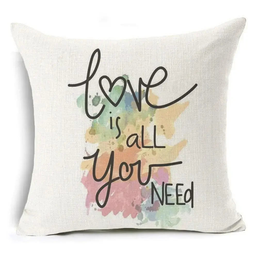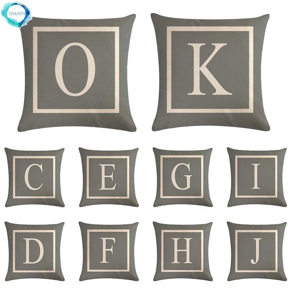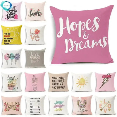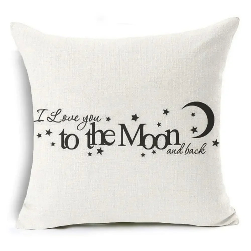 Axyaa Letter Print Pillow Case 45x45 cm Linen Cushion Cover for Home Decor