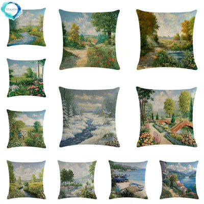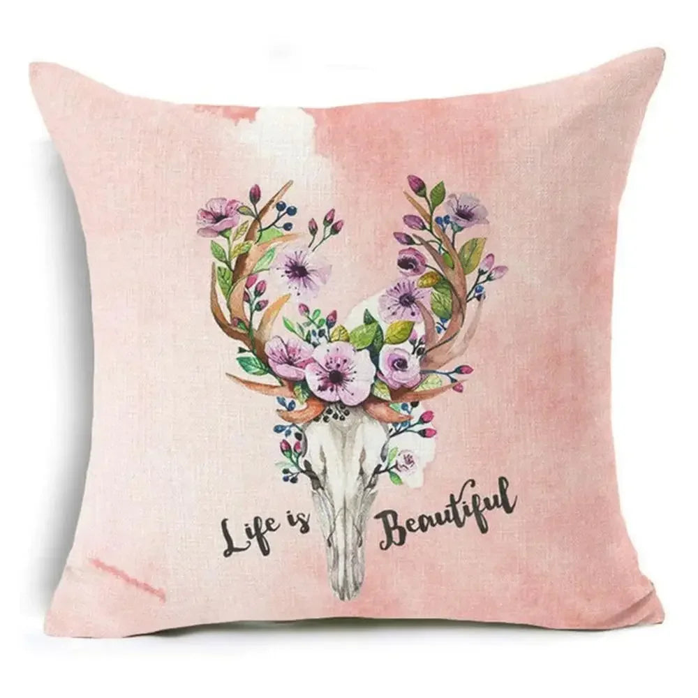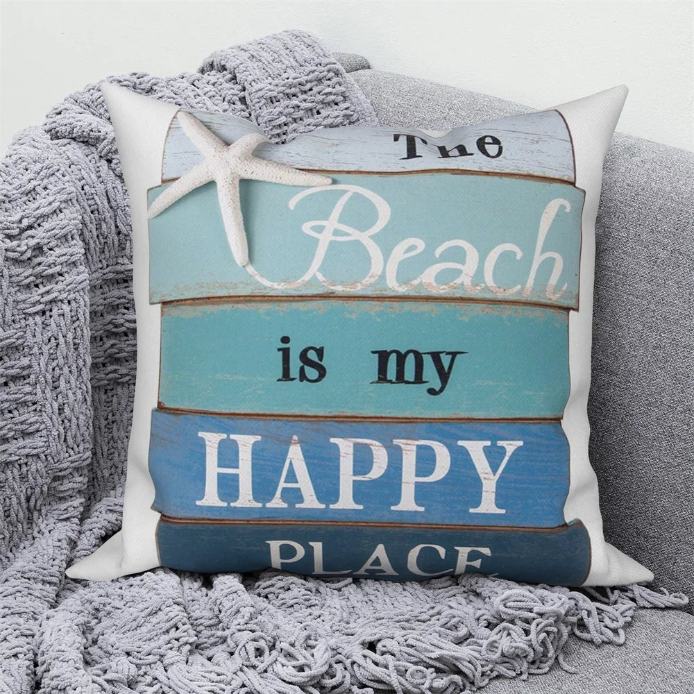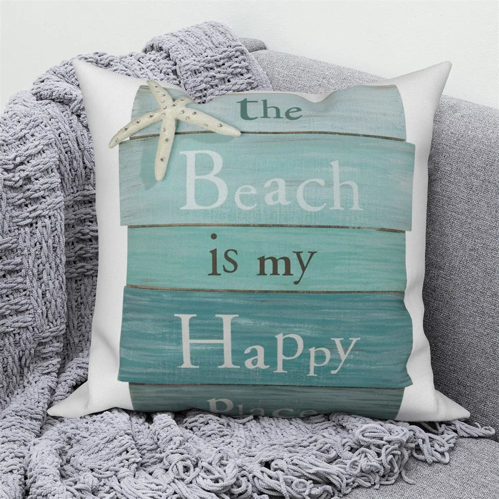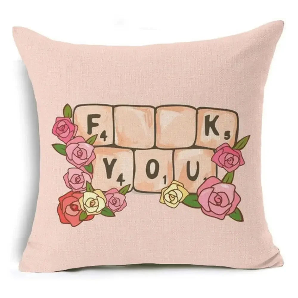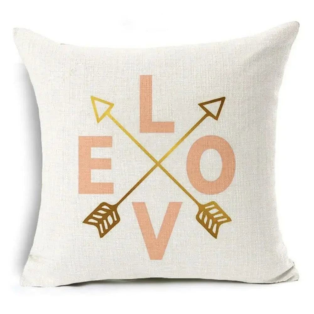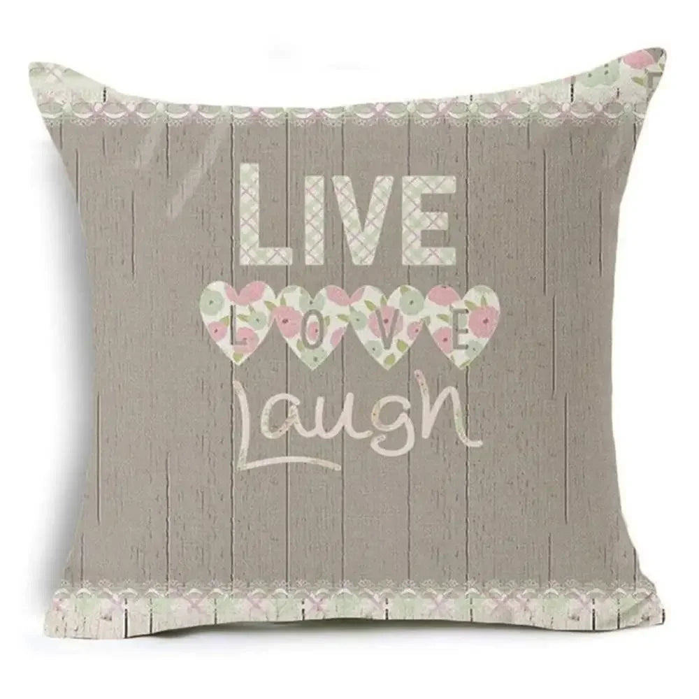 Axyaa Letter Print Pillow Case 45x45 cm Linen Cushion Cover for Home Decor