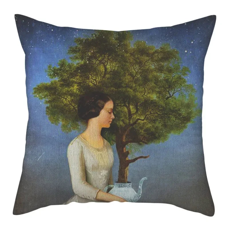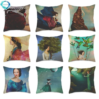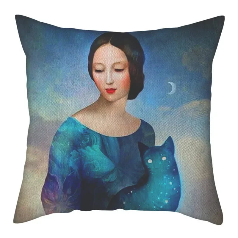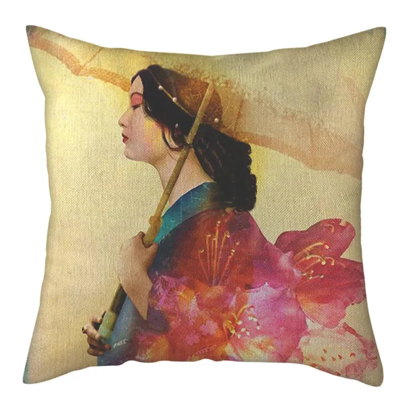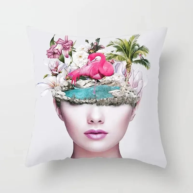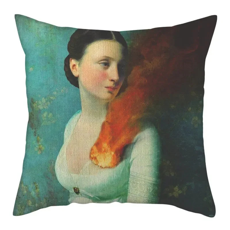 Embrace the elegant portrait pattern that adorns this square-shaped cushion cover, adding a touch of charm to any space. Whether placed on your sofa, bed, chair, or even in your car, this cushion cover is versatile and functional, enhancing both the look and feel of your living area.
