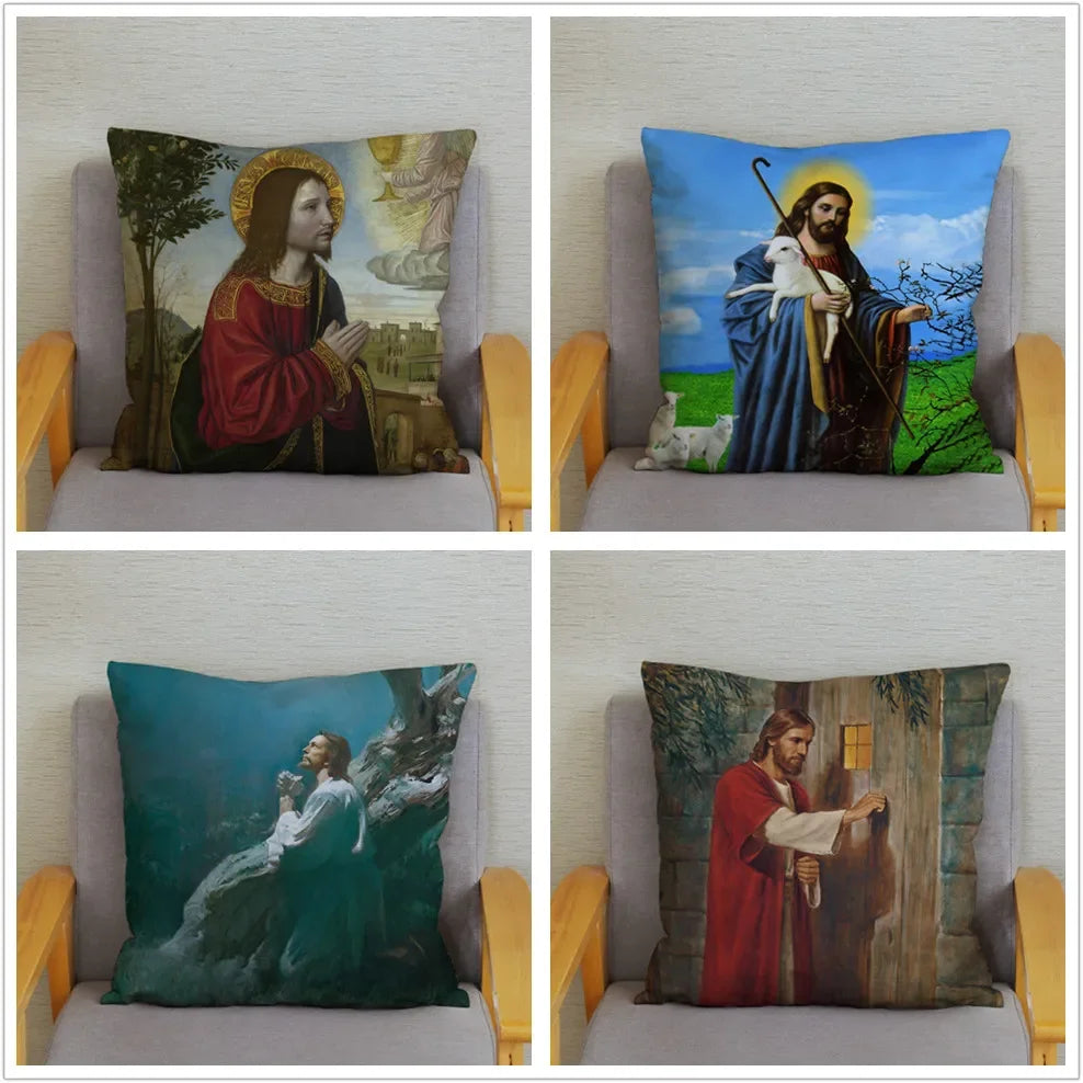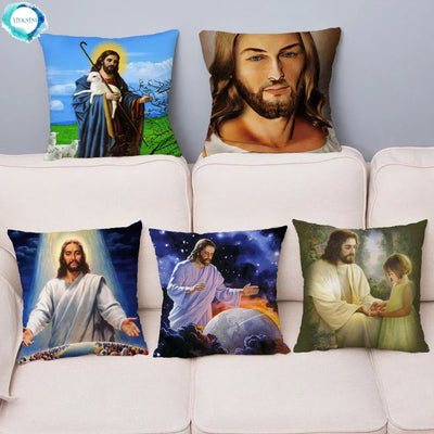 Axyaa Jesus Christ Soft Plush Cushion Cover 45*45 Throw Pillow Case Home Decor