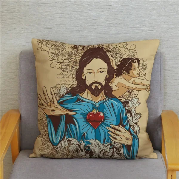 Measuring 4545 CM (1818 inches), this cushion cover is the ideal size for standard throw pillows, bringing a pop of artistry to your home decoration. The one-sided printed pattern features a vivid depiction of Jesus Christ, creating a serene atmosphere in any room.