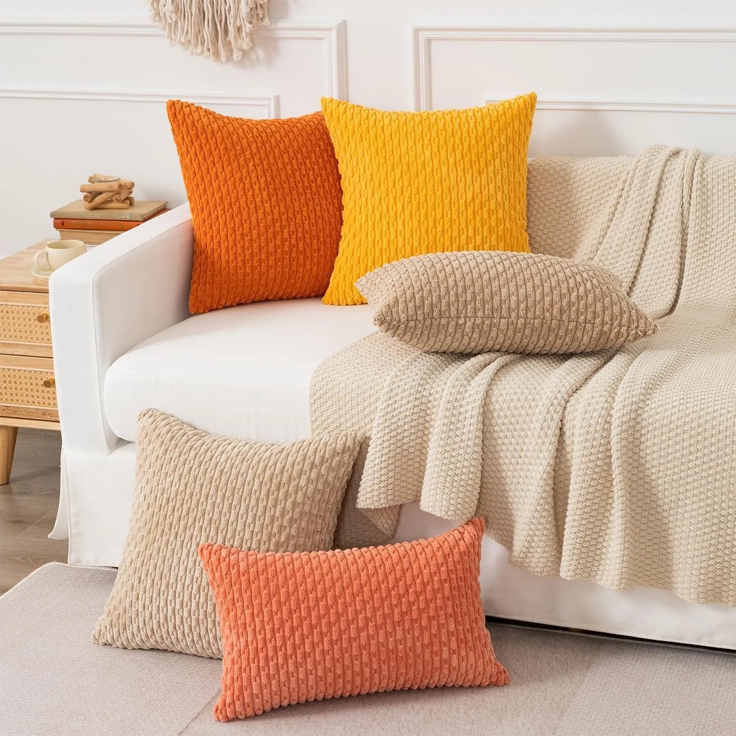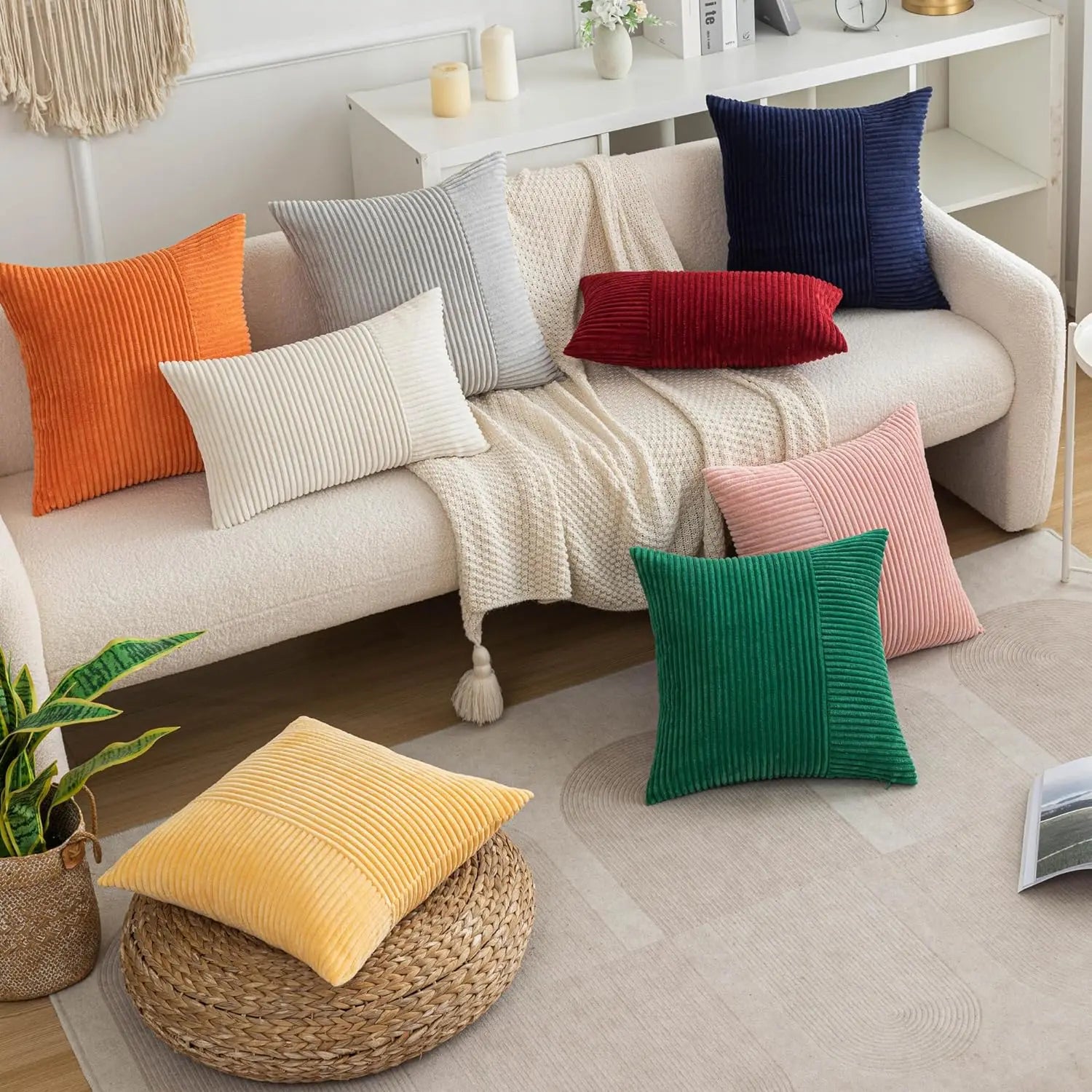 Introducing our Axyaa Super Soft Corduroy Pillow Case, the perfect addition to your home decor. Elevate your space with the luxurious touch of our boho room decor style cushion cover, measuring 45x45 inches.