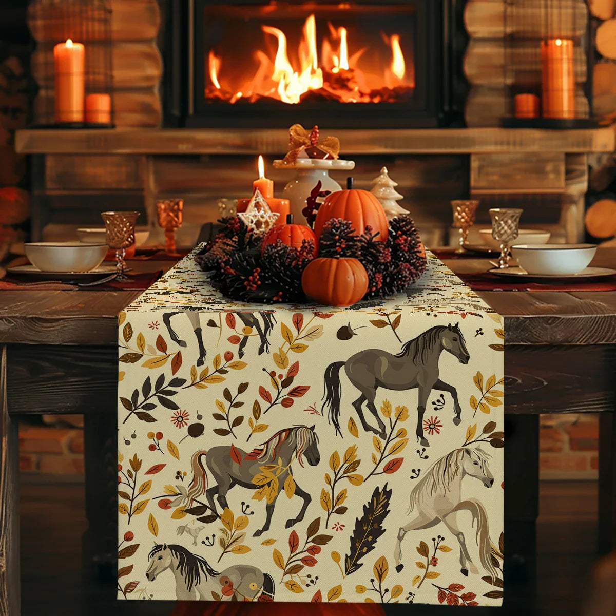 Axyaa Floral Horse Chain Table Runner for Kitchen Dining and Party Decor