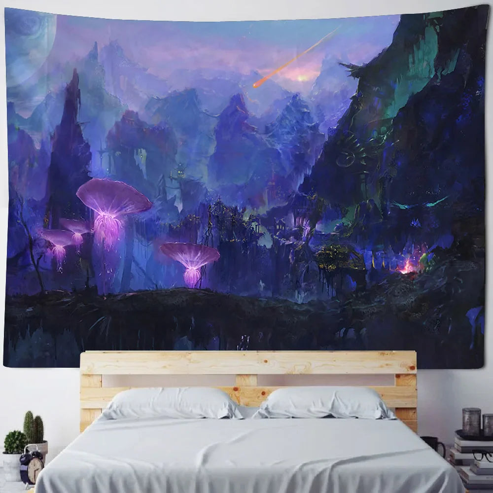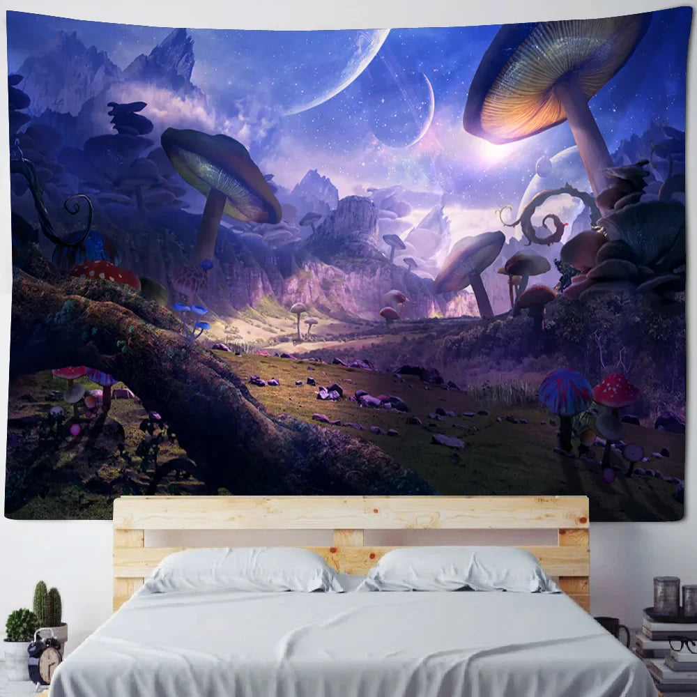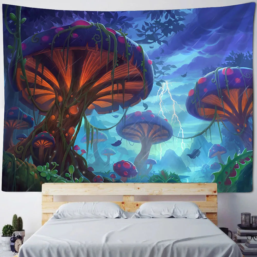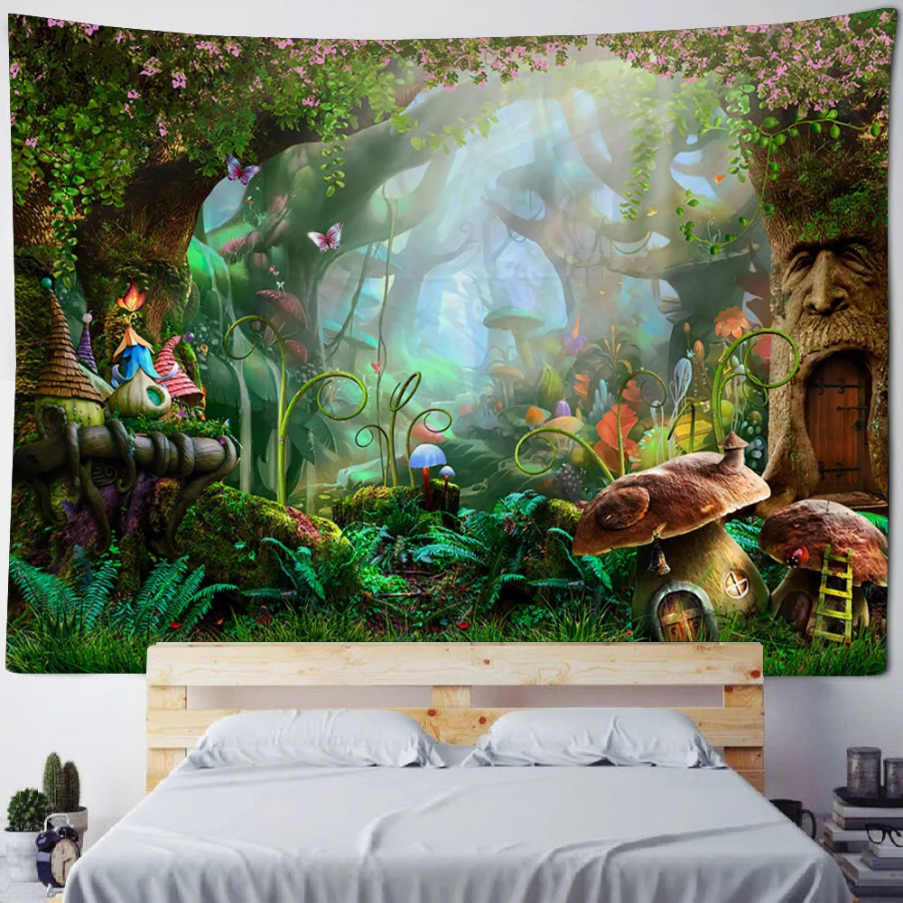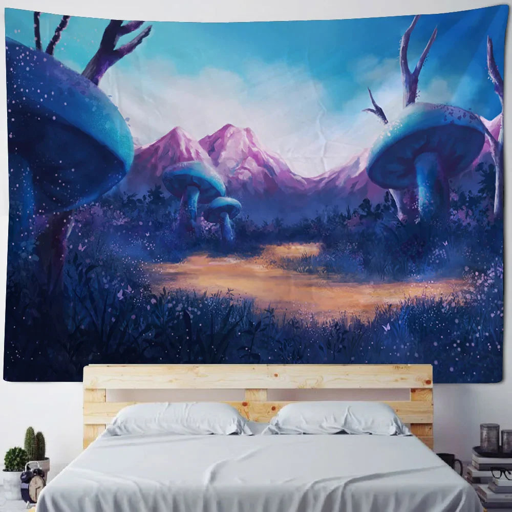 Axyaa Fairy Tale Fantasy Mushroom Tapestry - Boho Kids Room Art Decor