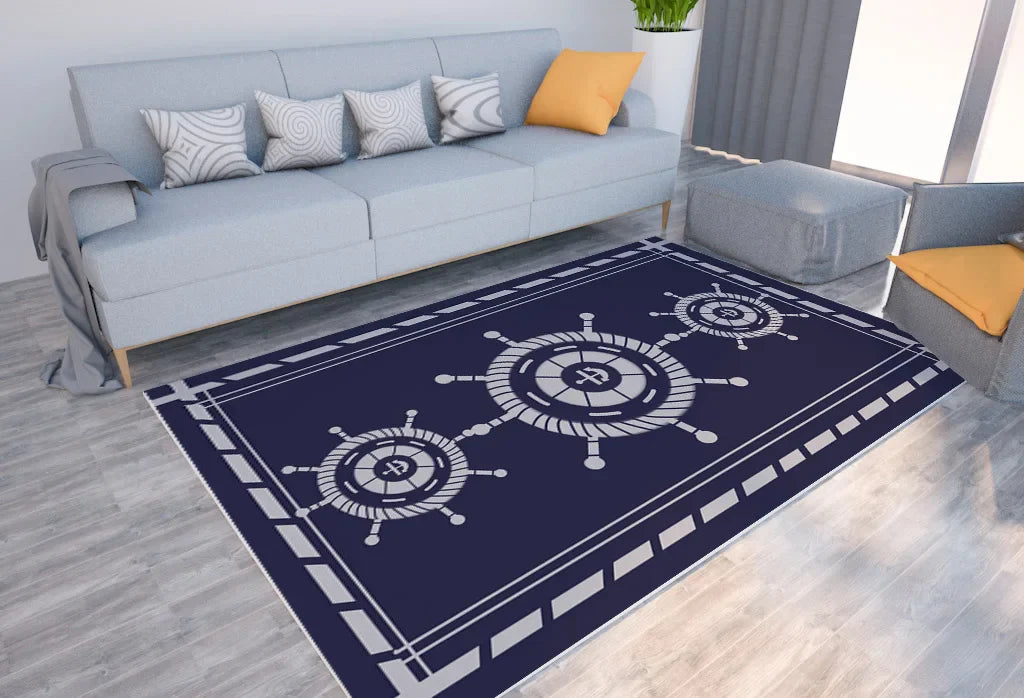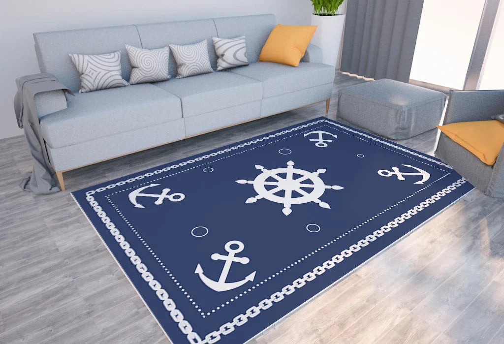 Introducing our Axyaa Nautical Anchor Rudder Printed Carpet Soft Floor Mat, the perfect addition to any home living room.