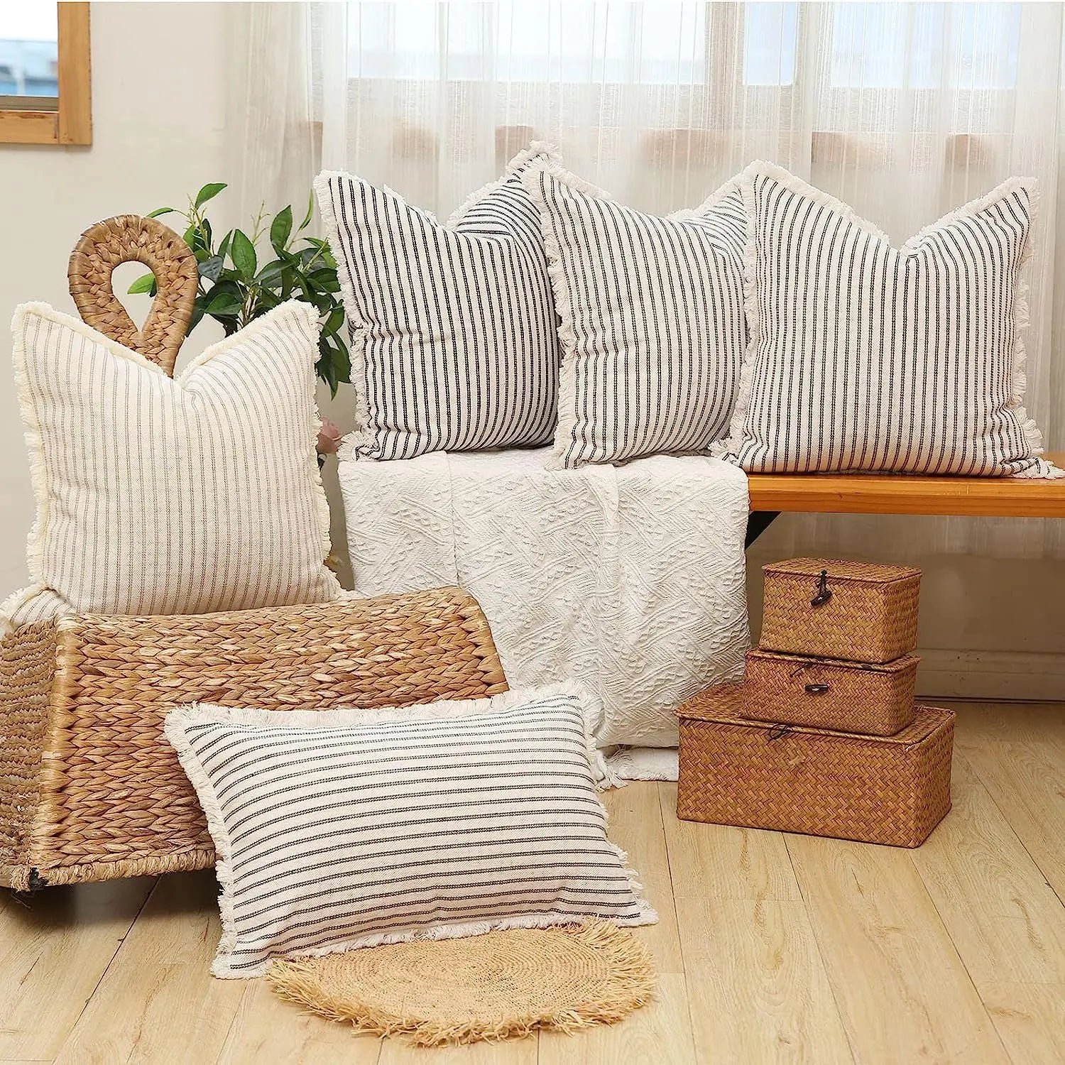 Axyaa Yarn-Dyed Striped Pillow Case Cover Soft Living Room Sofa Decoration