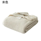 The Axyaa Thread Blanket features a sophisticated design with tassels, adding a touch of elegance to any bedroom or living room decor. Its solid beige, grey, and coffee tones blend seamlessly with various interior styles, making it a fashionable choice for modern homes.