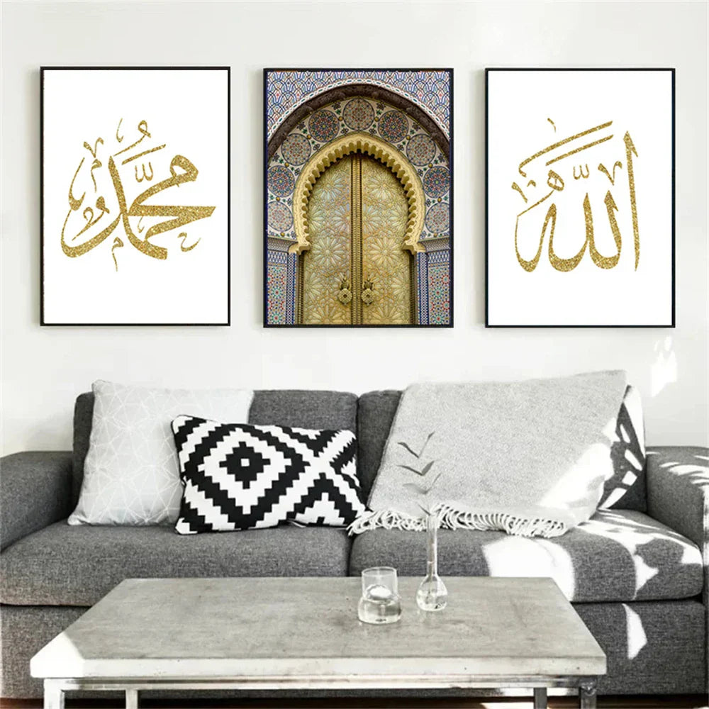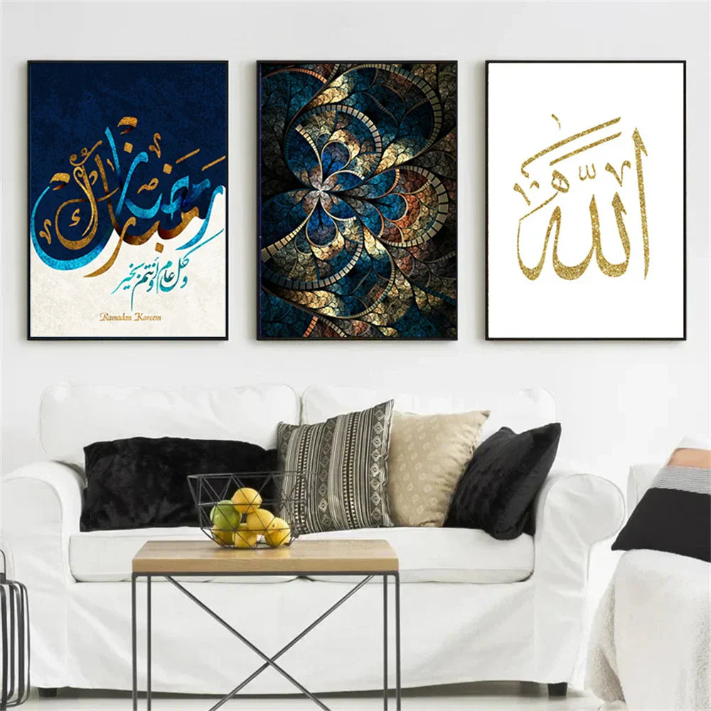 Axyaa Islamic Arabic Calligraphy Canvas Wall Art for Living Room Decor