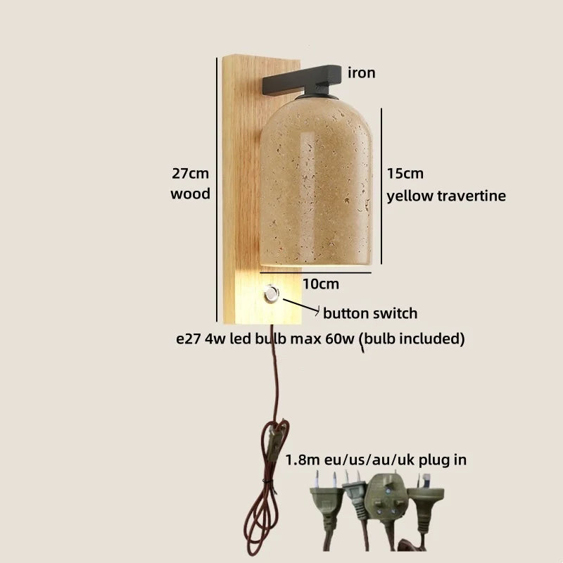 Crafted with high-quality stone material, this wall lamp exudes a sense of elegance and sophistication. The unique yellow travertine lampshade adds a touch of warmth and charm to your decor, creating a cozy atmosphere in any setting.