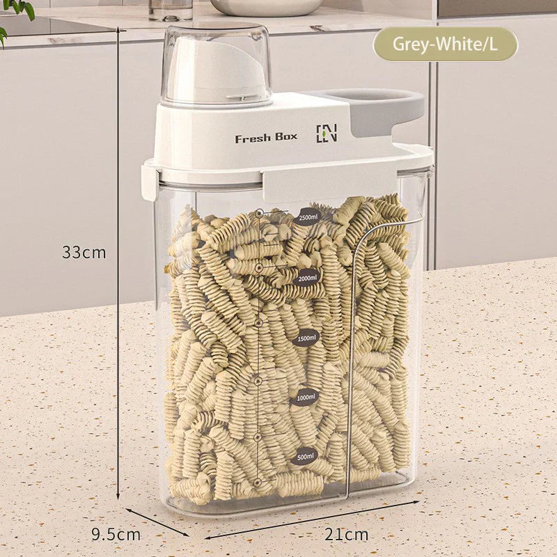 Introducing the Axyaa Multigrain Storage Box: a transparent food jar that is perfect for organizing your kitchen pantry. This sealed container is ideal for storing dried goods such as cereals, grains, and various other kitchen essentials.