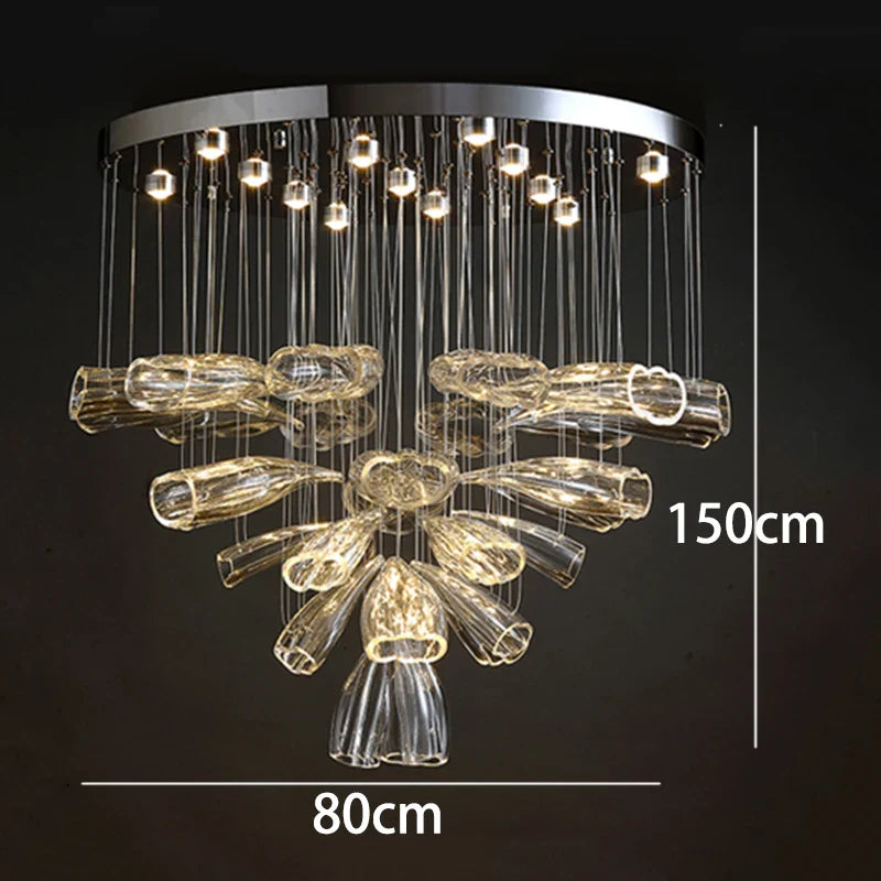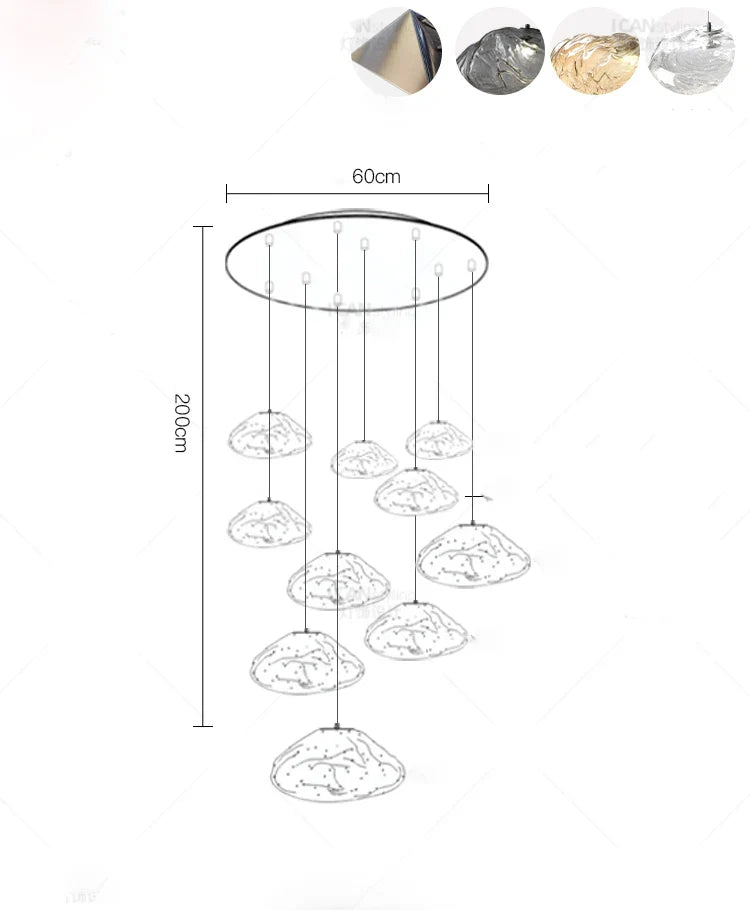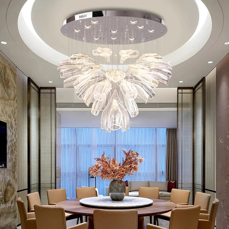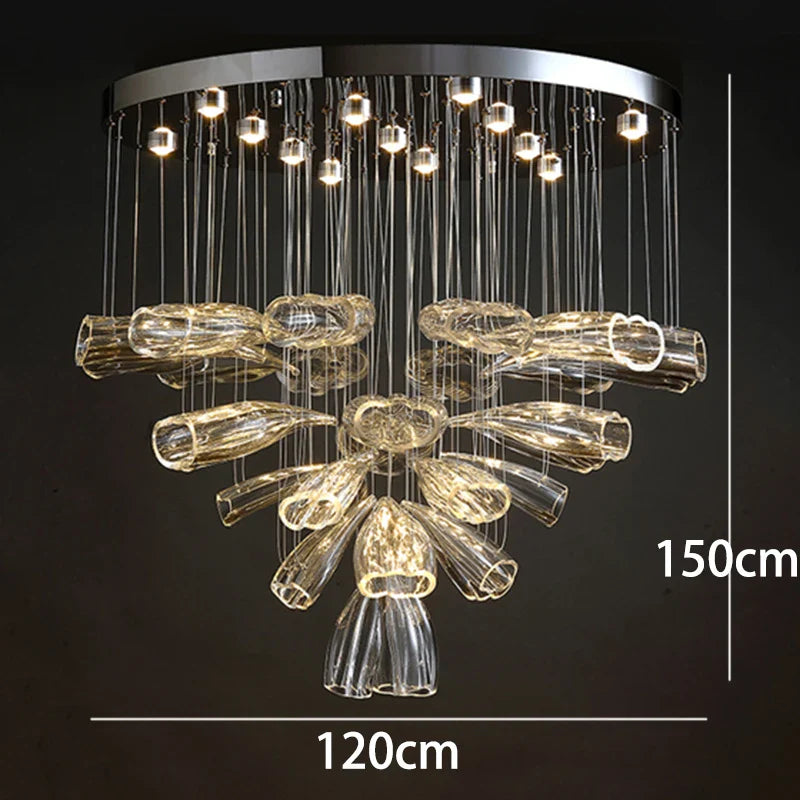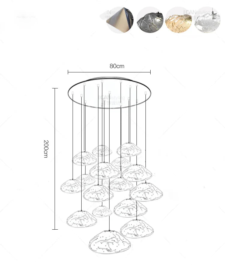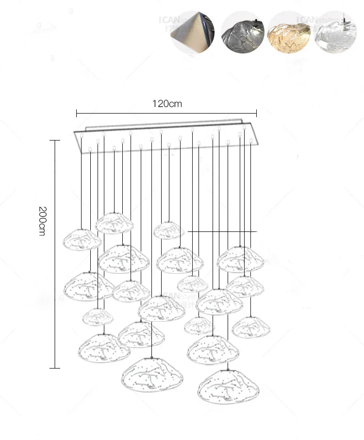 Experience modern elegance with our alloy material chandeliers, designed to enhance spaces such as parlors, studies, master bedrooms, hotel halls, and more. The remote control and touch on/off switch make it convenient to adjust the lighting settings with ease.
