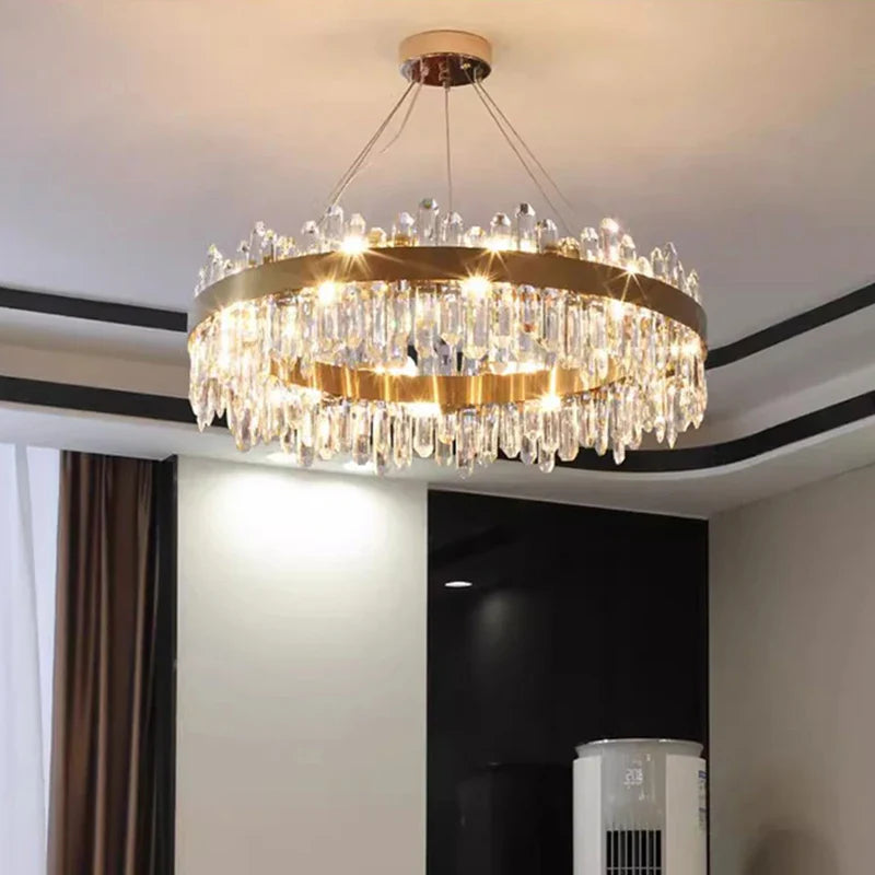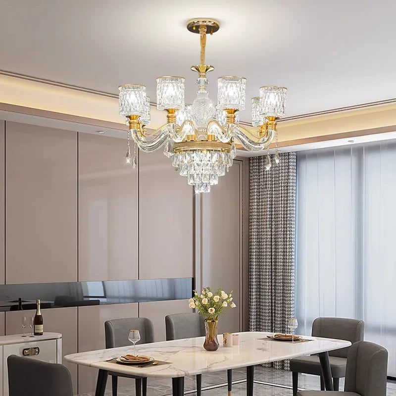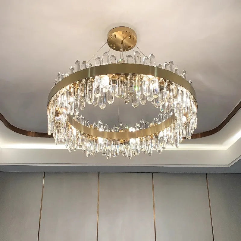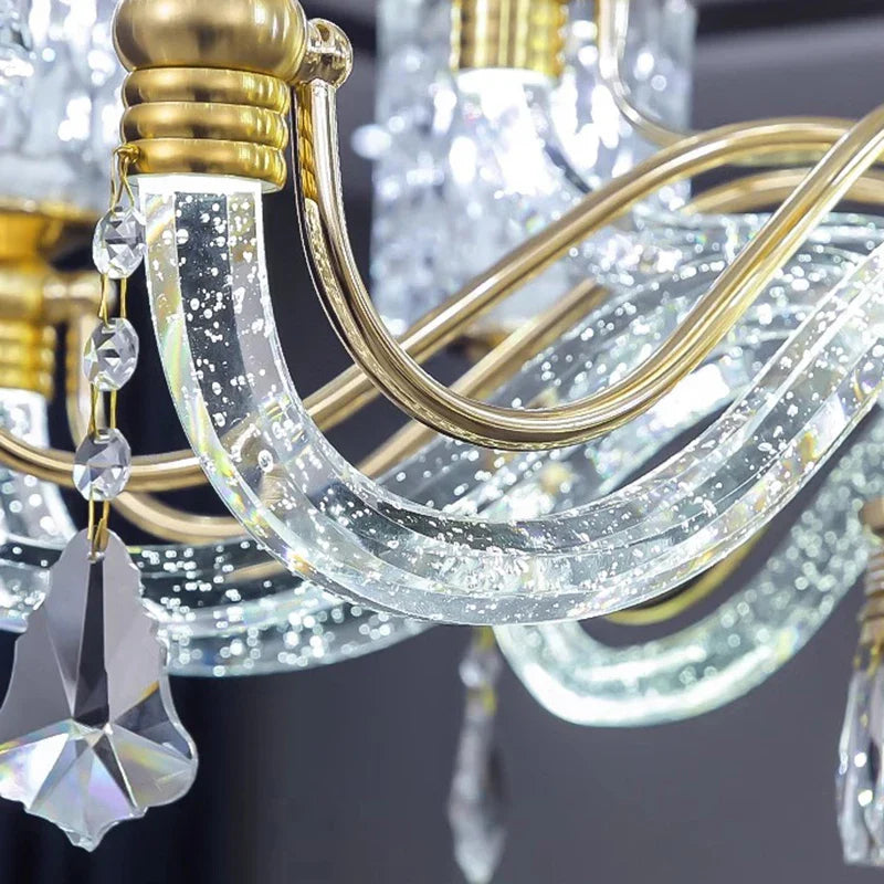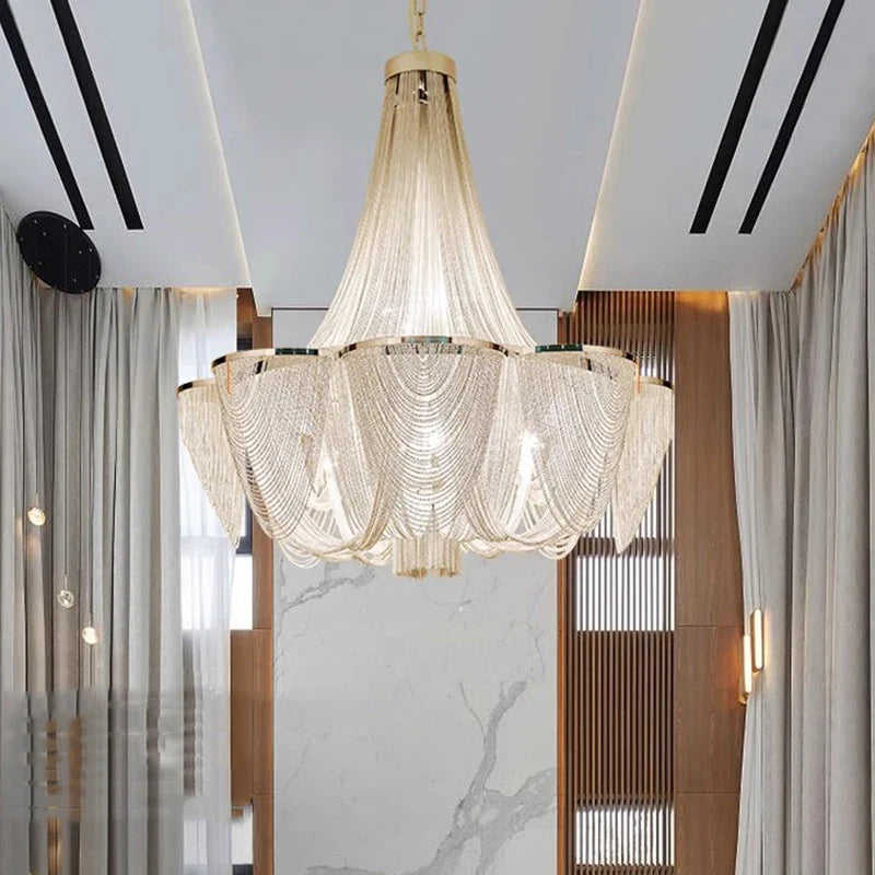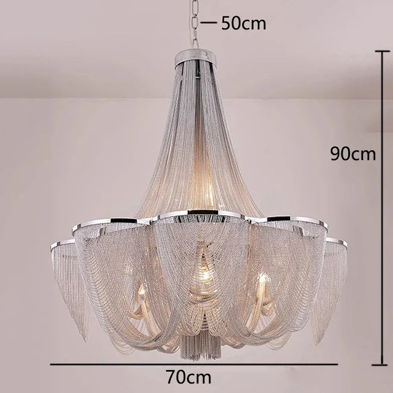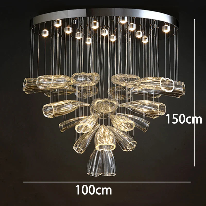 Experience modern elegance with our alloy material chandeliers, designed to enhance spaces such as parlors, studies, master bedrooms, hotel halls, and more. The remote control and touch on/off switch make it convenient to adjust the lighting settings with ease.