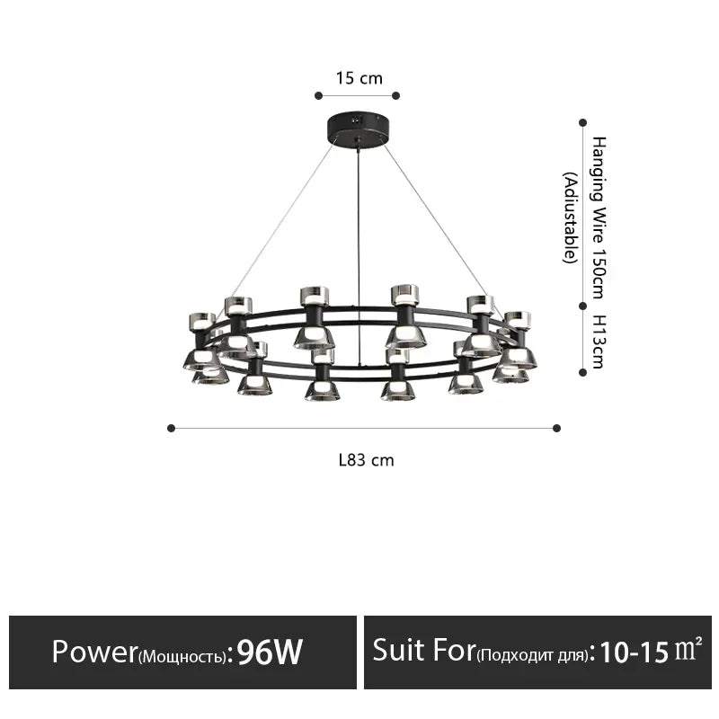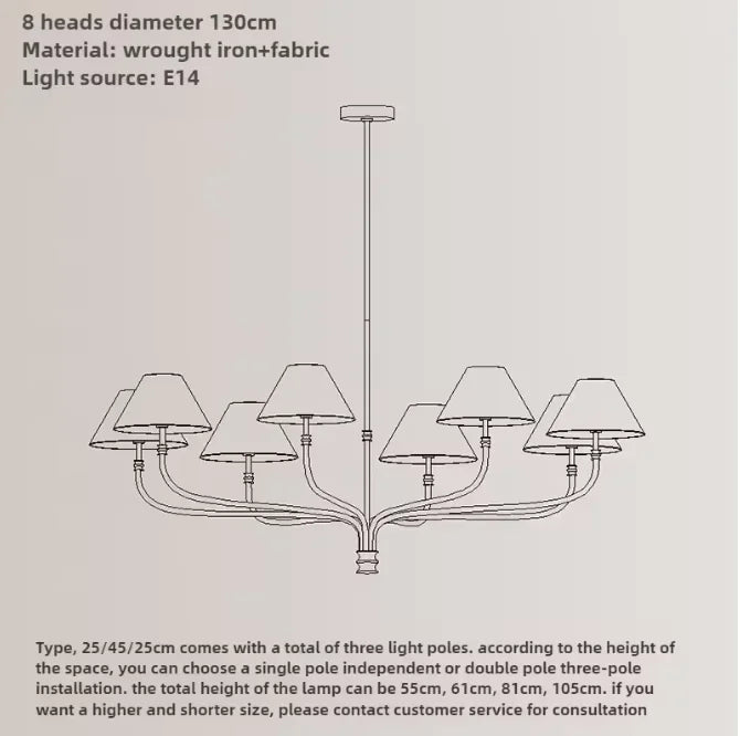 Our chandelier features a stylish finish in iron, adding a touch of elegance to any room. The lampshade is available in white or black, allowing you to customize the look to suit your decor. The light source is provided by energy-efficient LED bulbs, offering both brightness and cost-effectiveness.