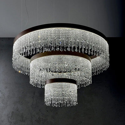 Axyaa Stainless Steel Round Crystal Ceiling Lights for Hotel Lobby, Bar, Cafe