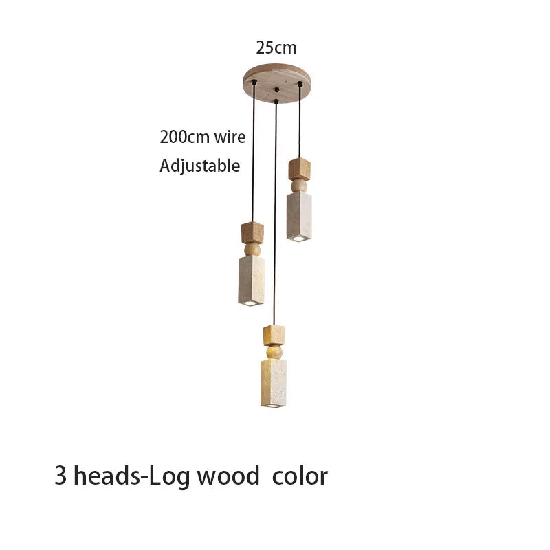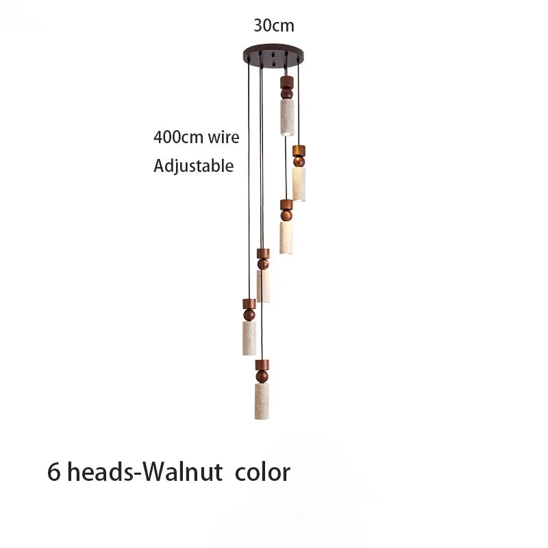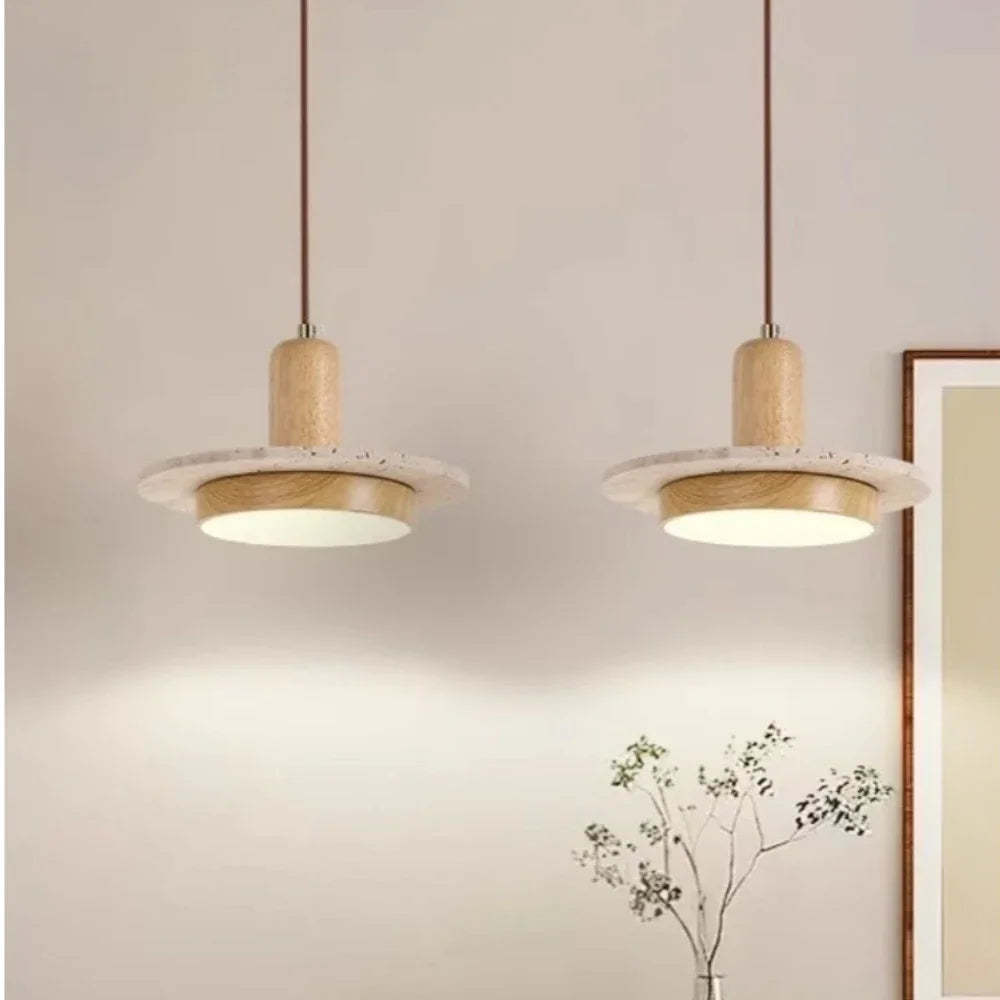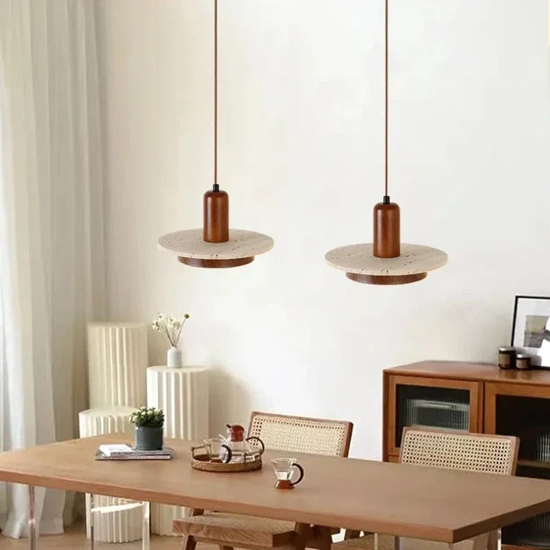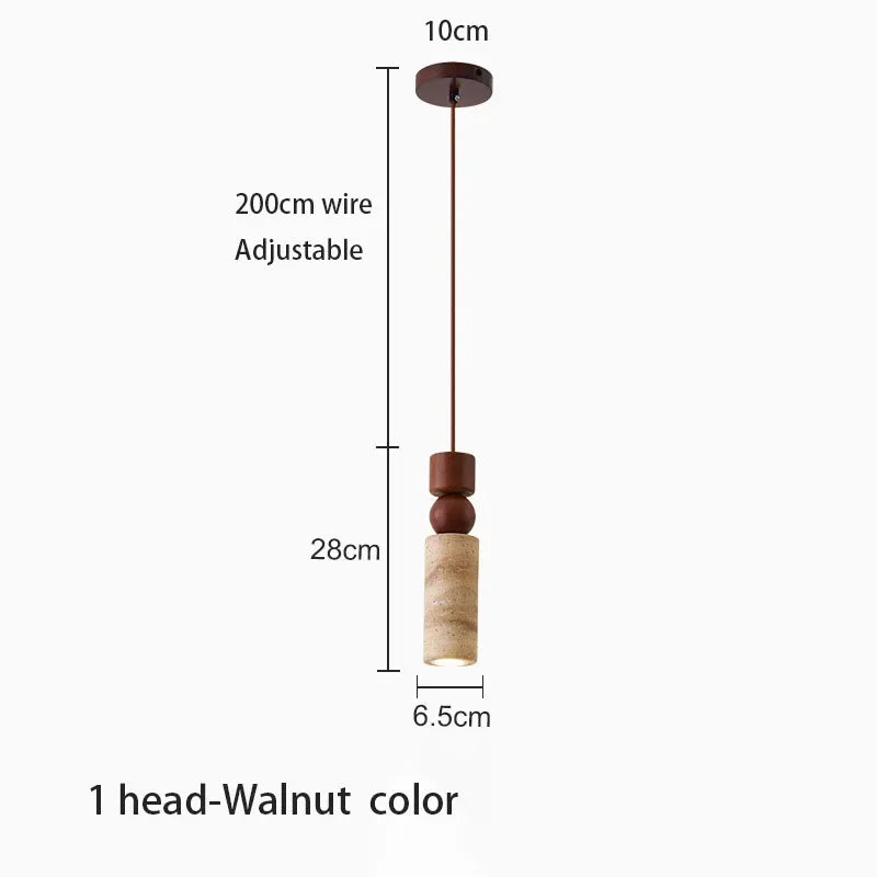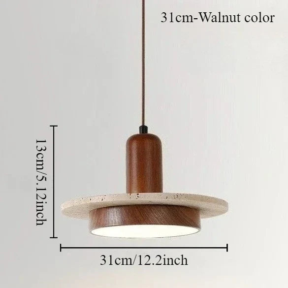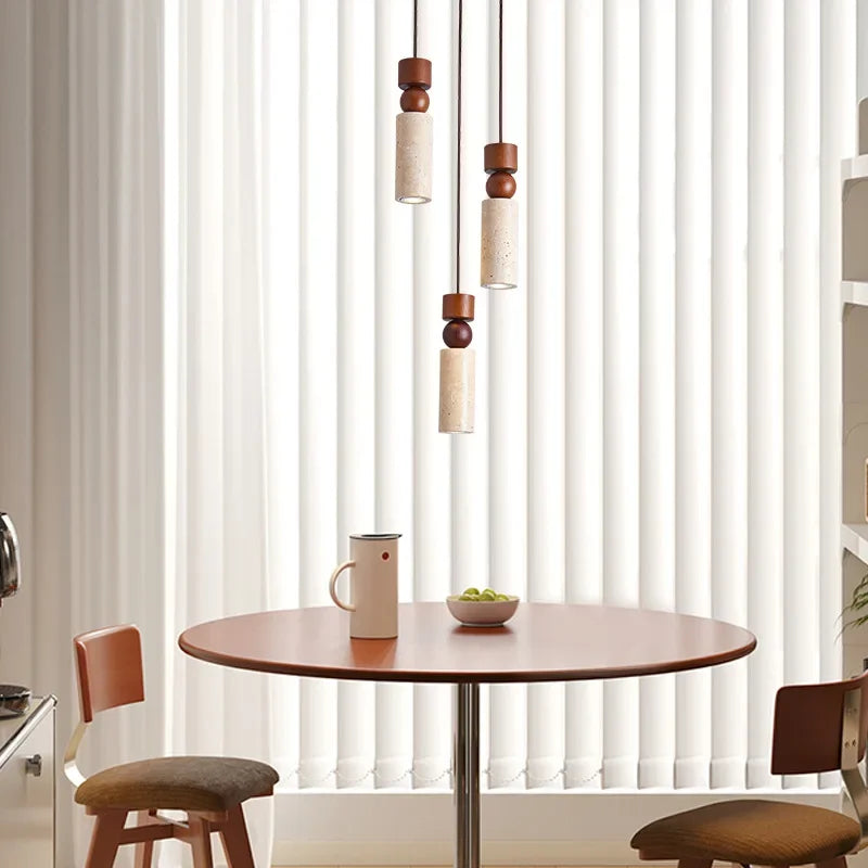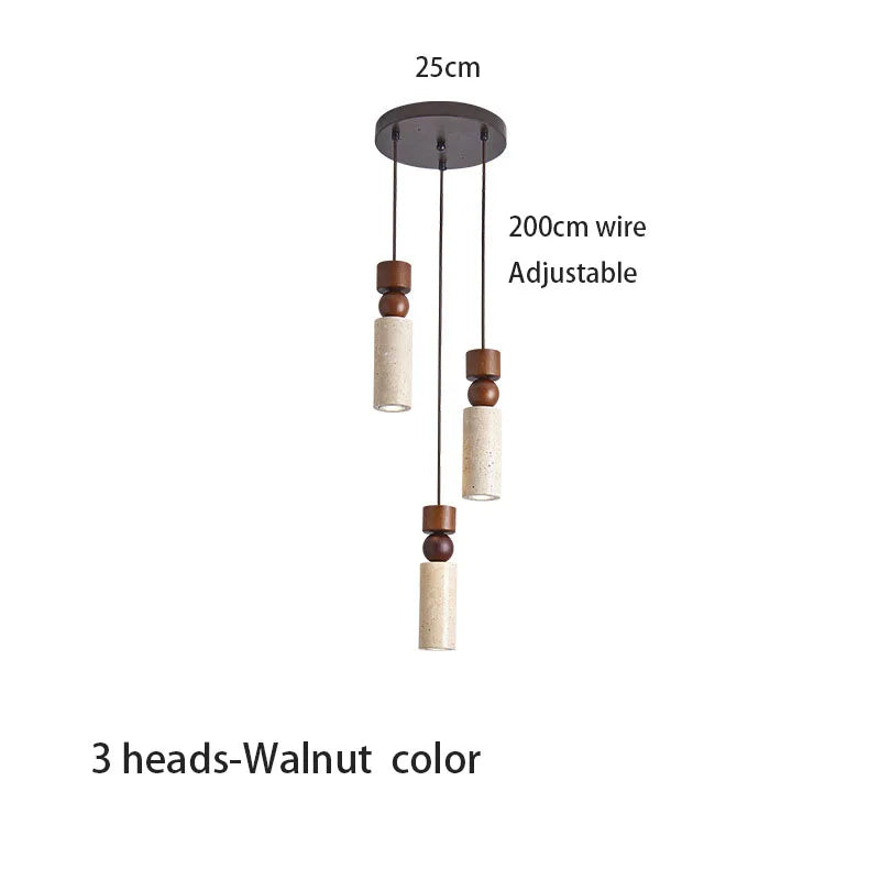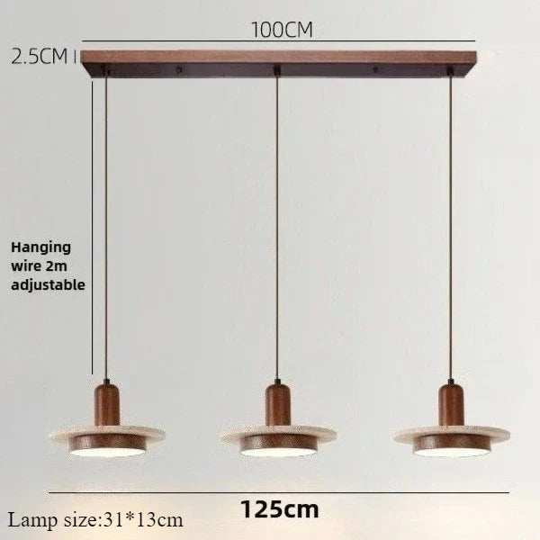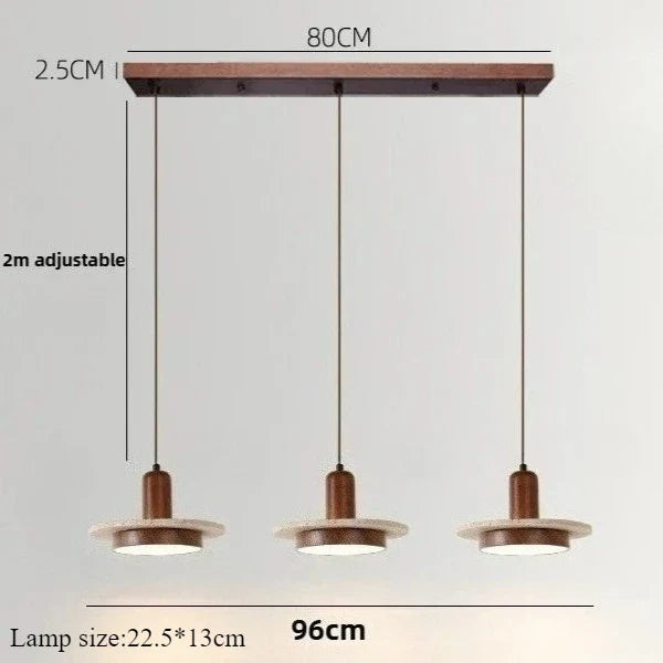 Axyaa Travertine LED Pendant Light - Modern Walnut Chandelier for Dining Kitchen Island Counter