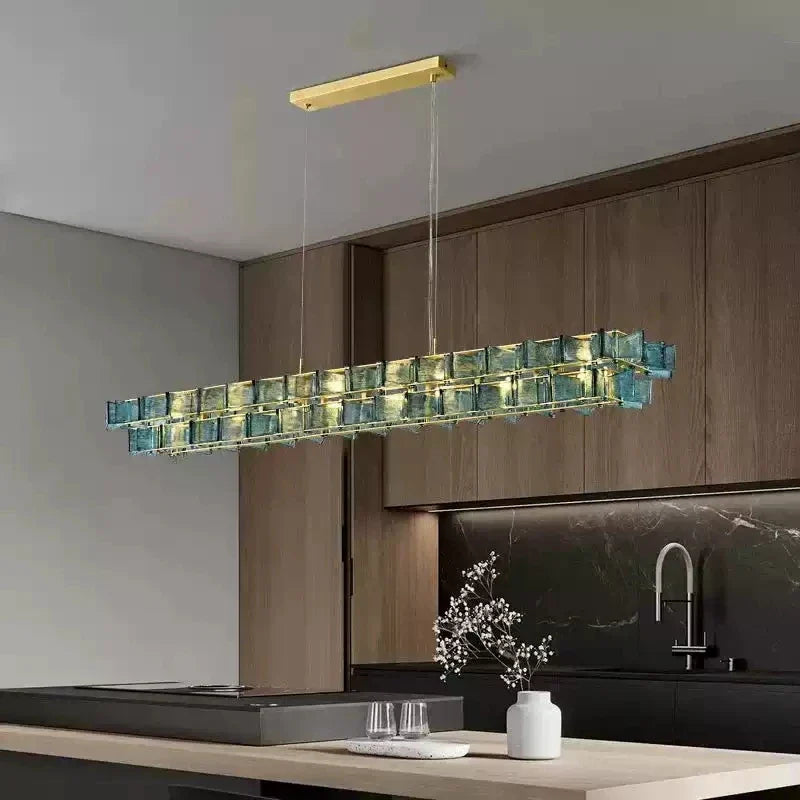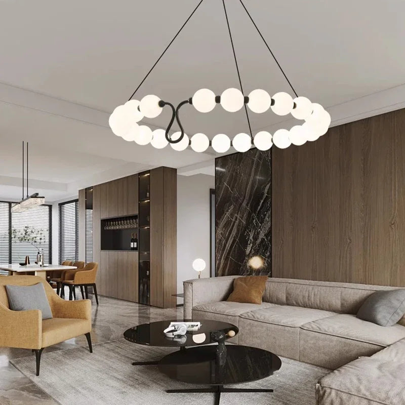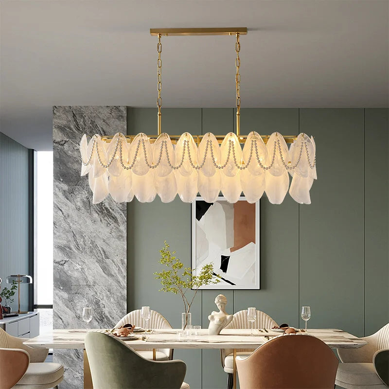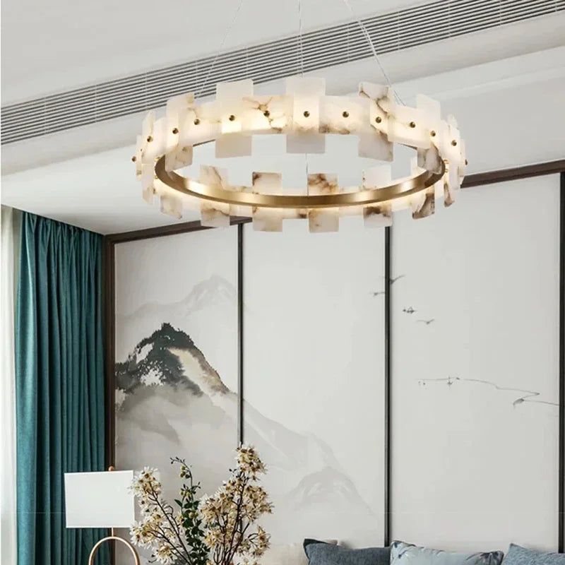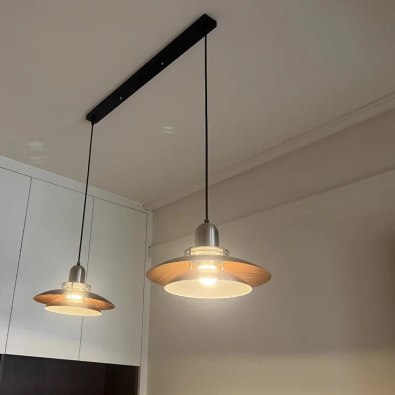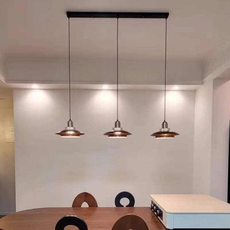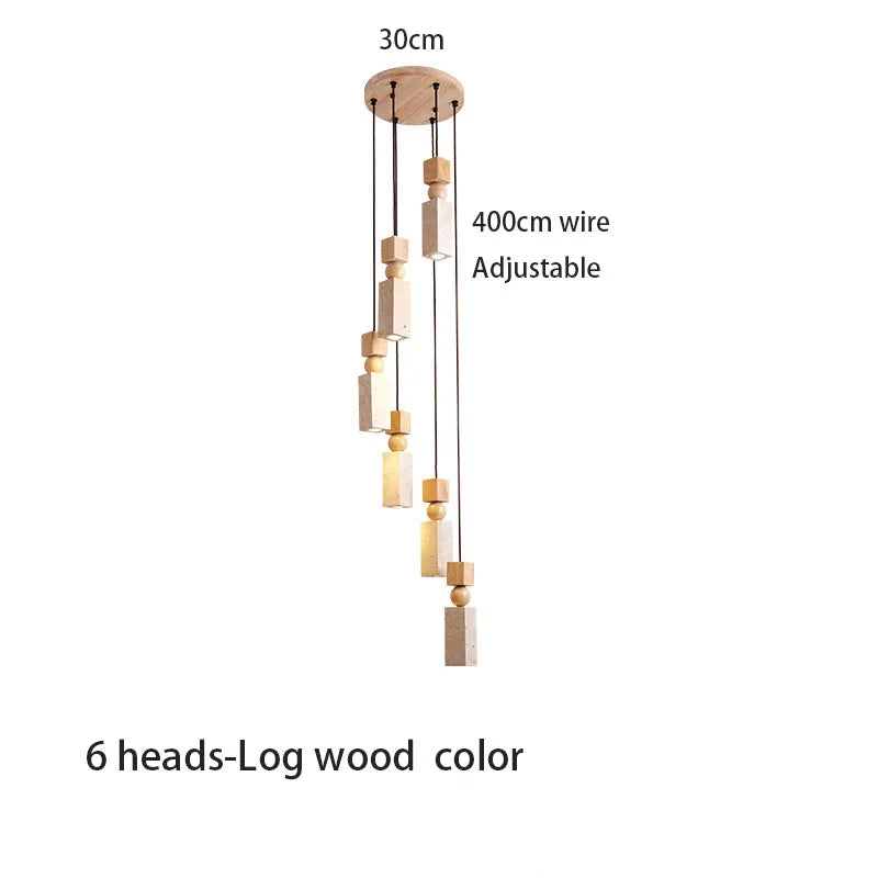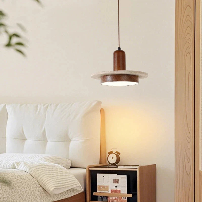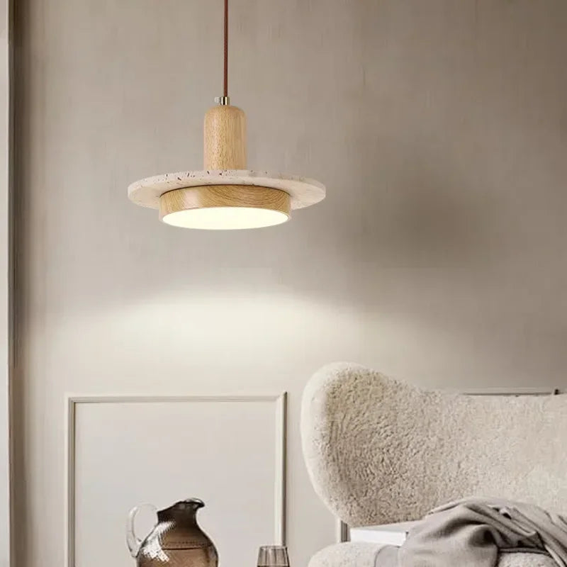 Axyaa Travertine LED Pendant Light - Modern Walnut Chandelier for Dining Kitchen Island Counter