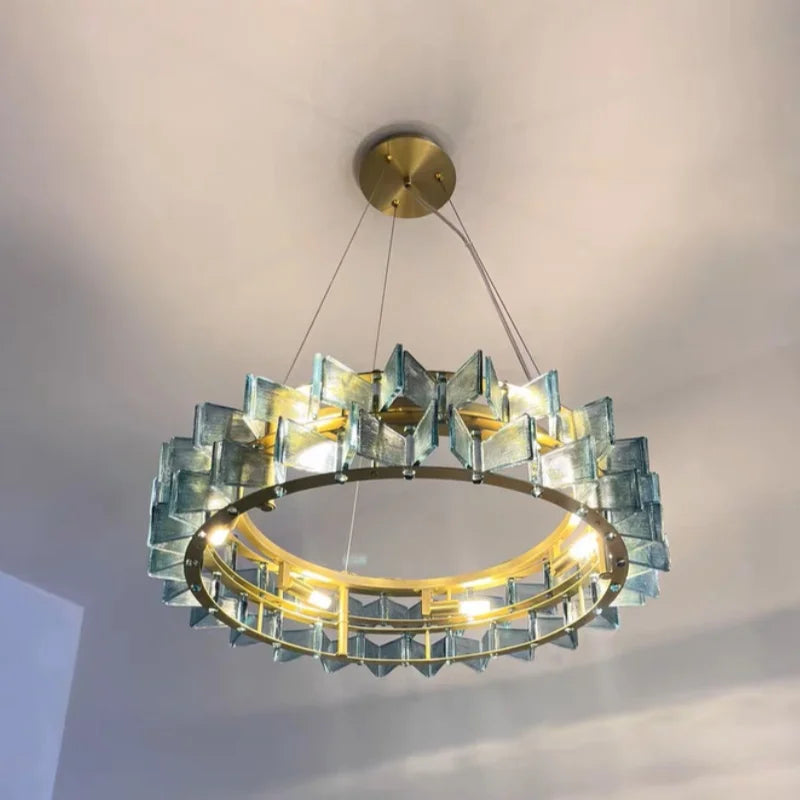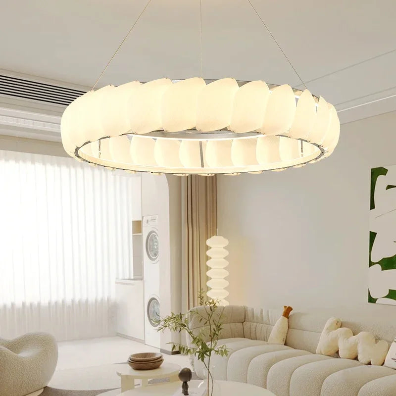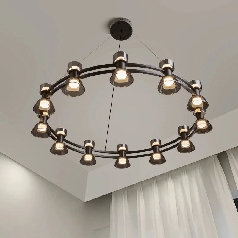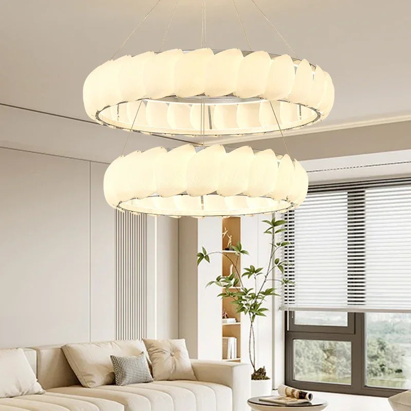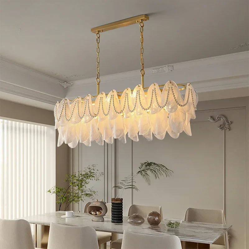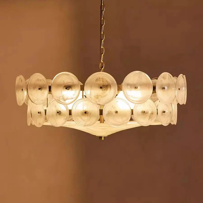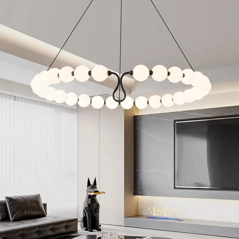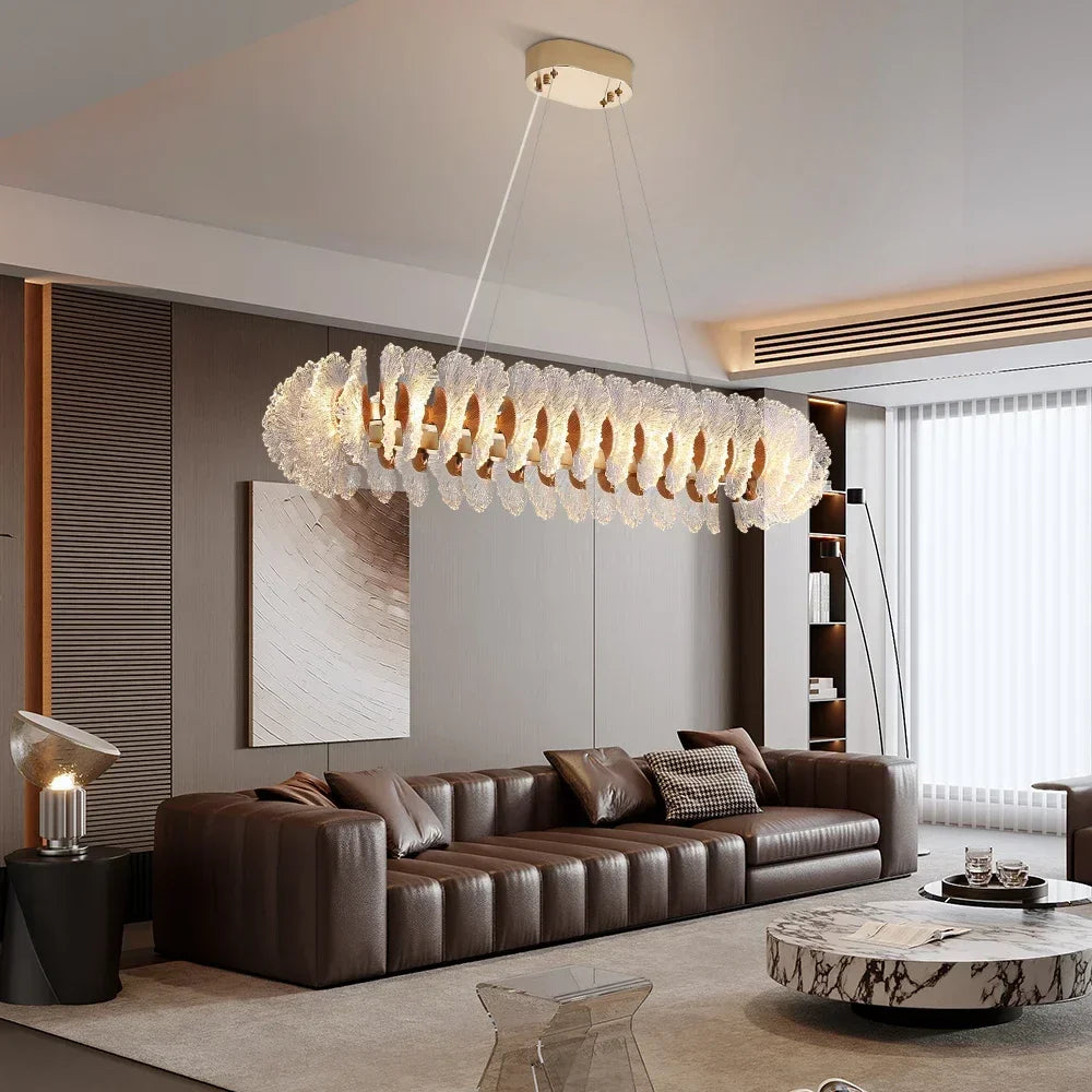 Axyaa Travertine LED Pendant Light - Modern Walnut Chandelier for Dining Kitchen Island Counter