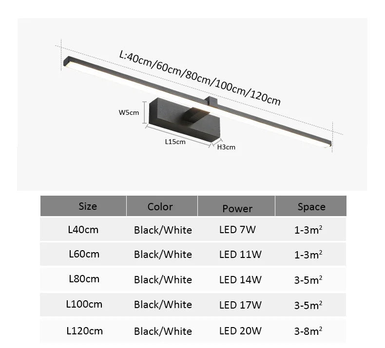 Enhance your bathroom with this versatile light fixture, perfect for use as a bathroom lamp, bathroom light, or mirror light. Choose from warm white, cool white, or natural light emissions to create the desired ambiance in your space.