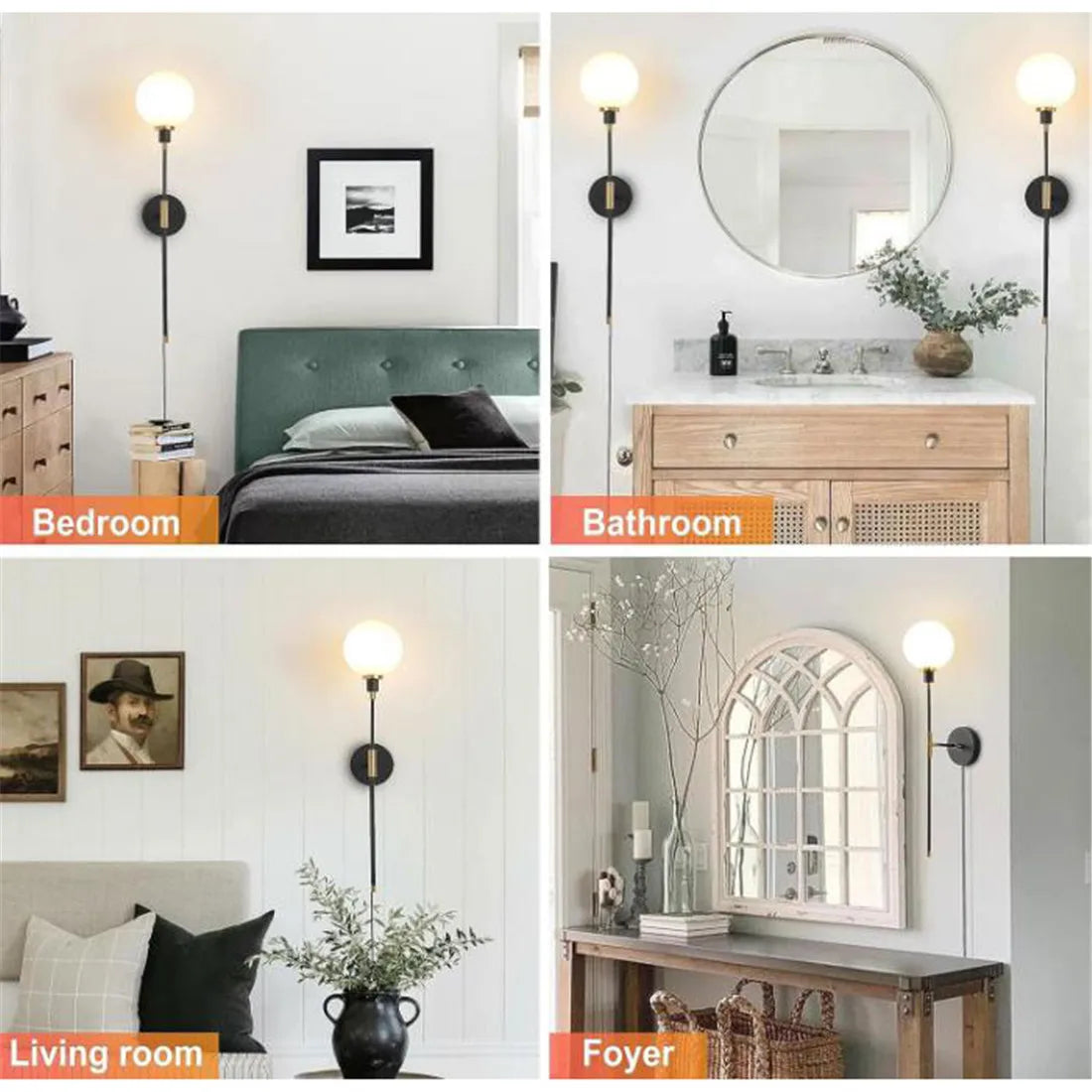 Ideal for various applications including the kitchen, dining room, bedroom, foyer, or study, these wall sconces add a modern touch to any room they are placed in. The knob switch allows for easy operation, while the E27 base type ensures compatibility with standard light bulbs.