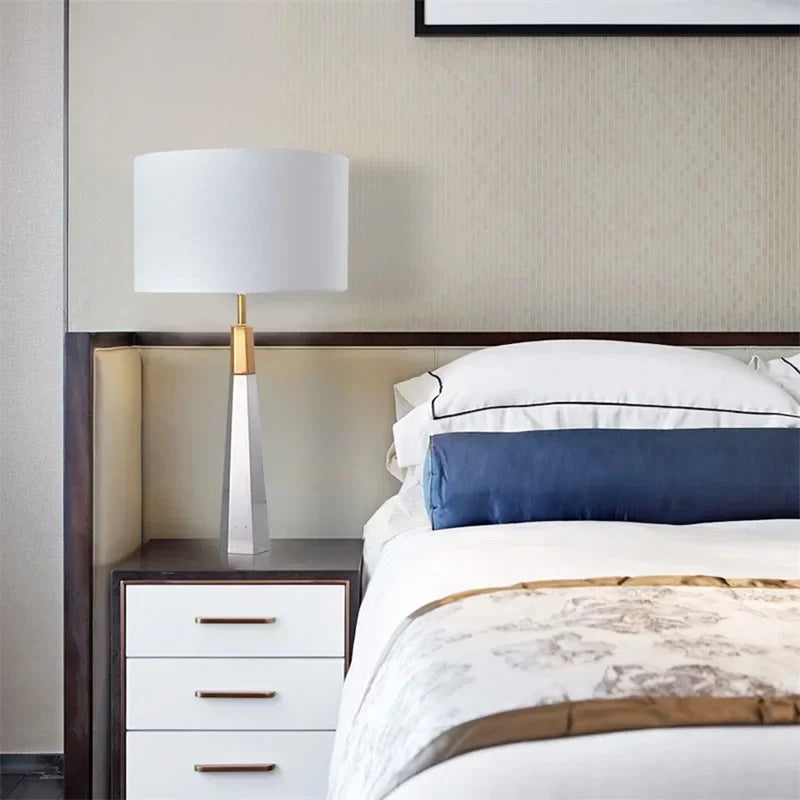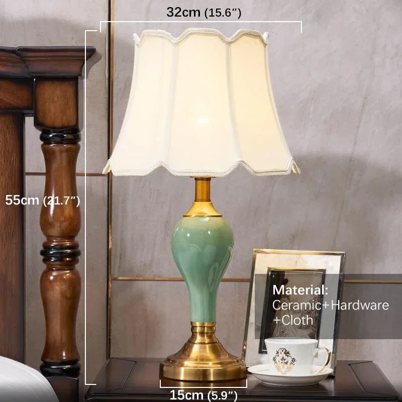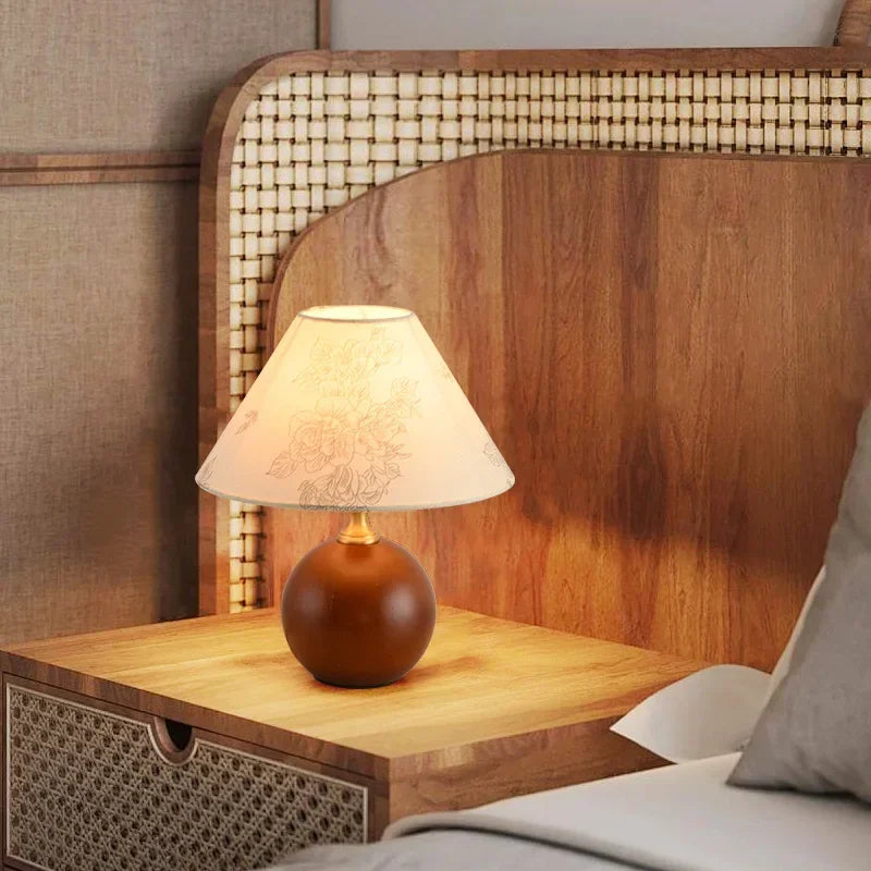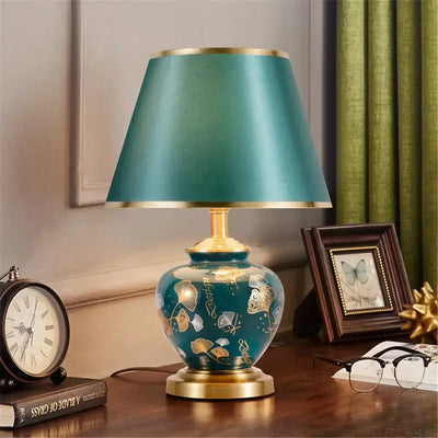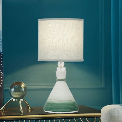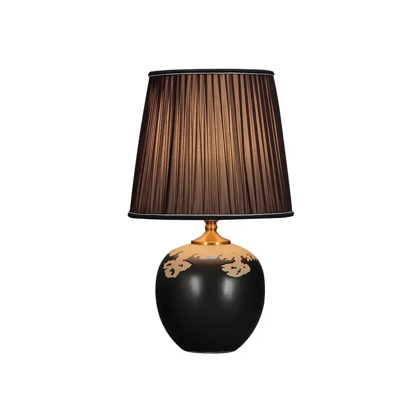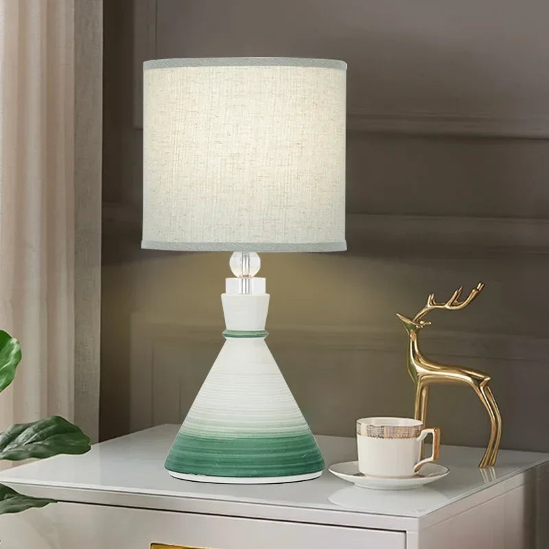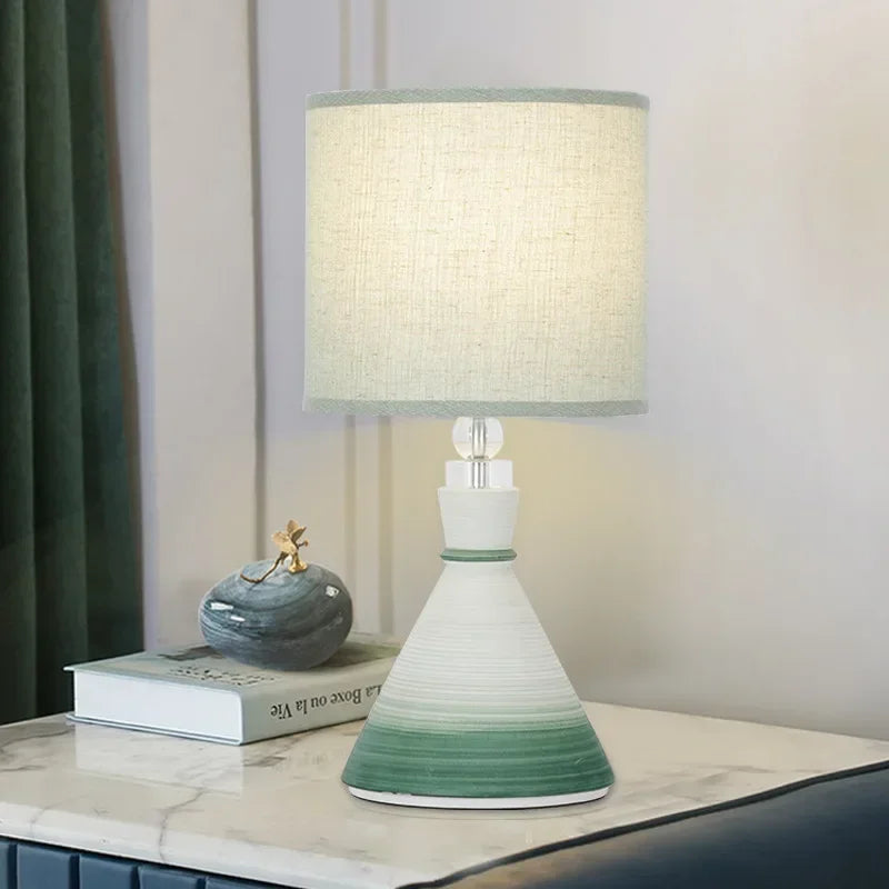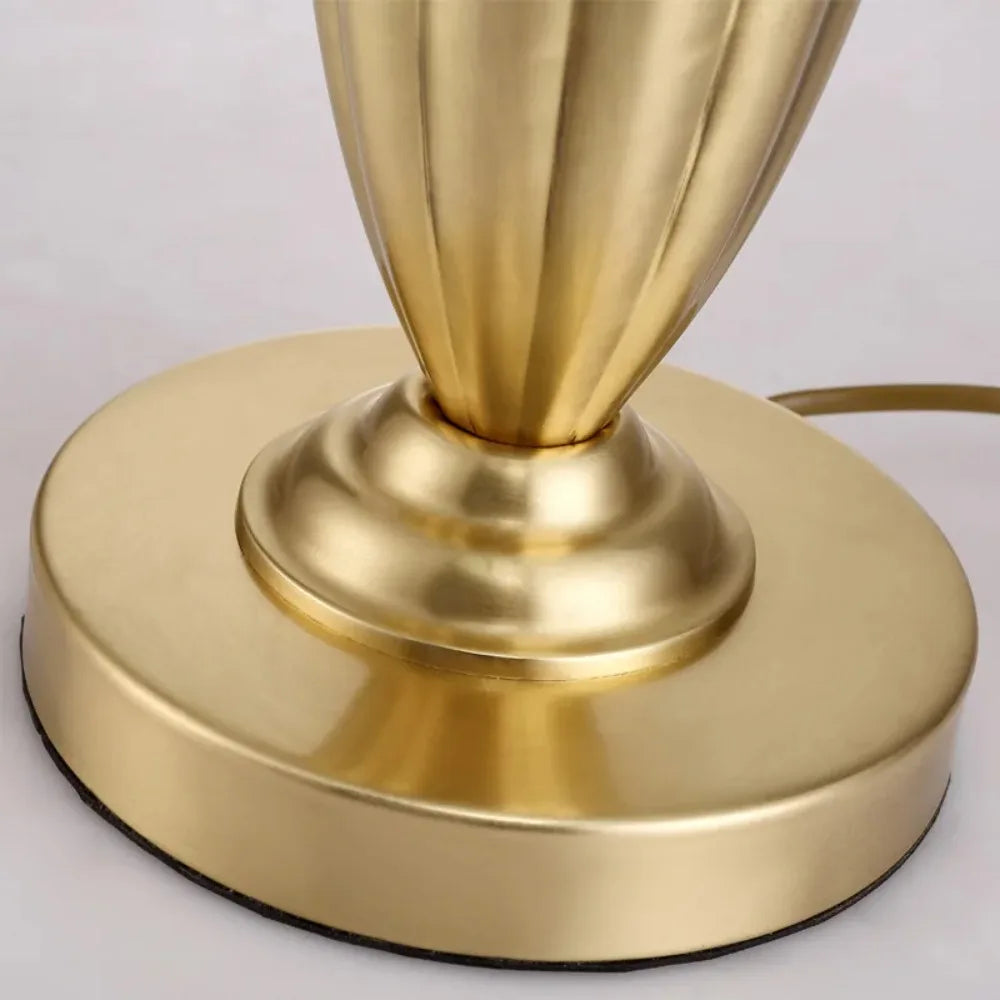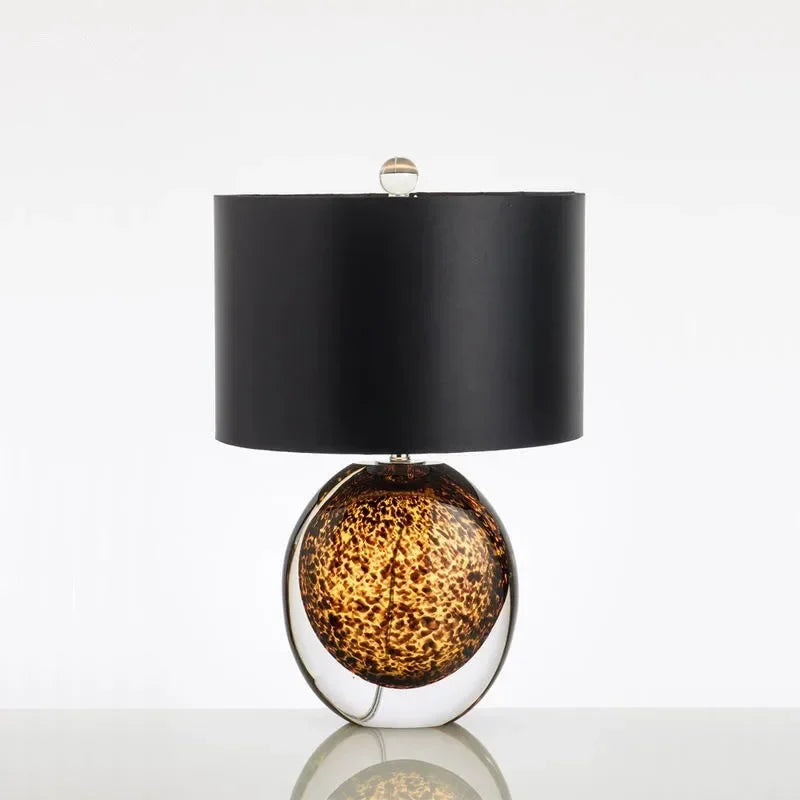 Designed with a contemporary style, this table lamp is a statement piece that will enhance the ambiance of your bedroom. The shade is made of stained glass and directs the light downwards, creating a warm and inviting atmosphere. The switch type is a convenient knob switch, allowing for easy operation.