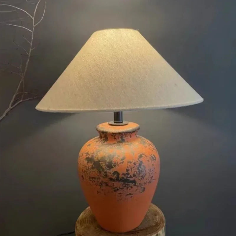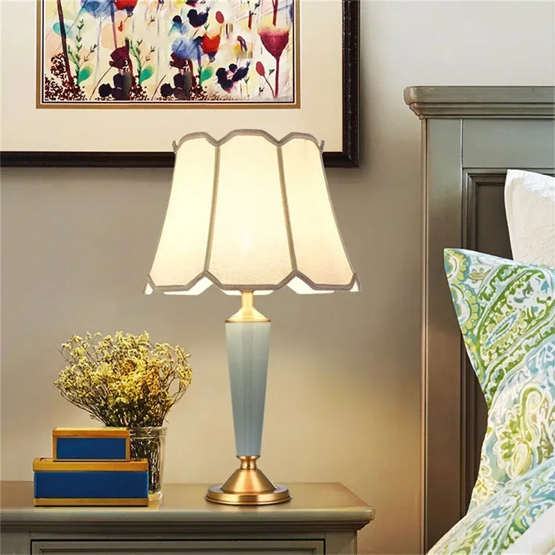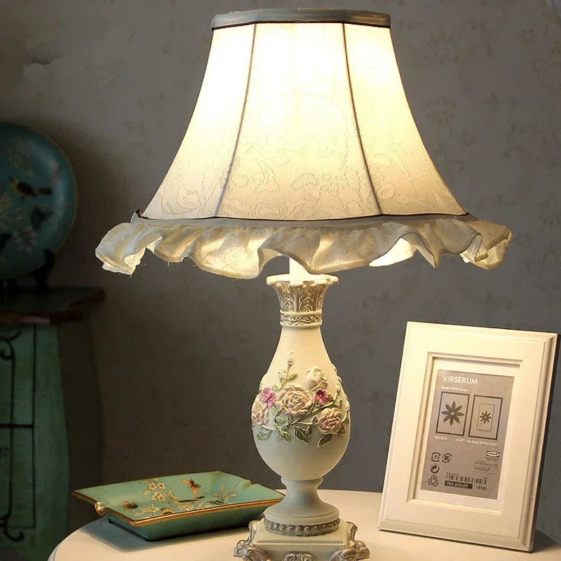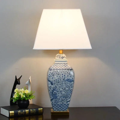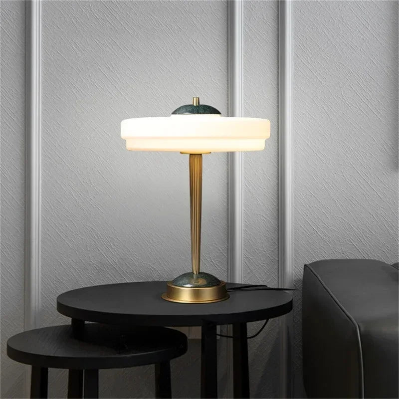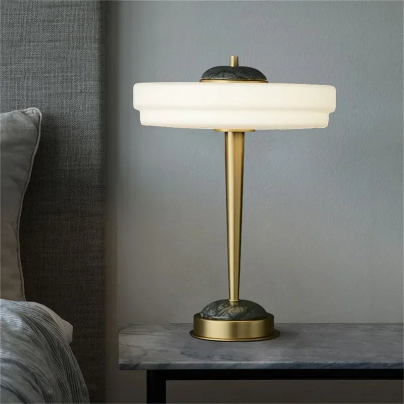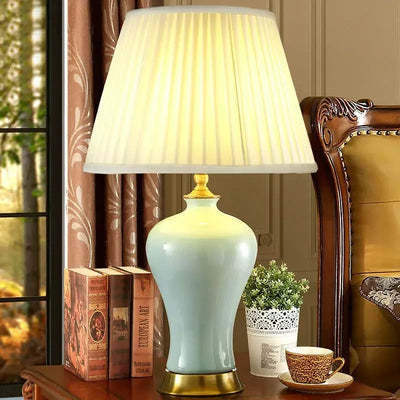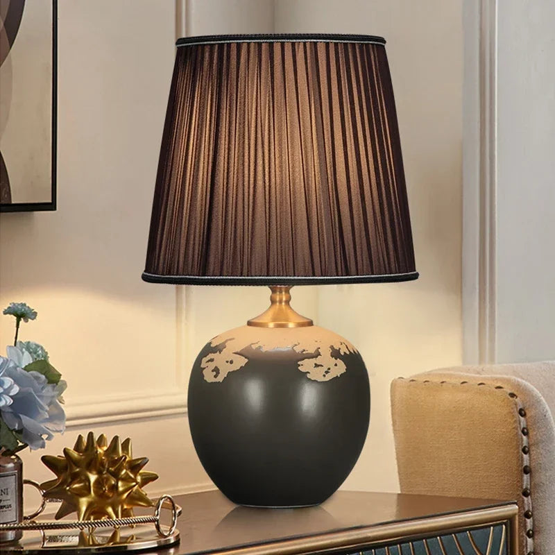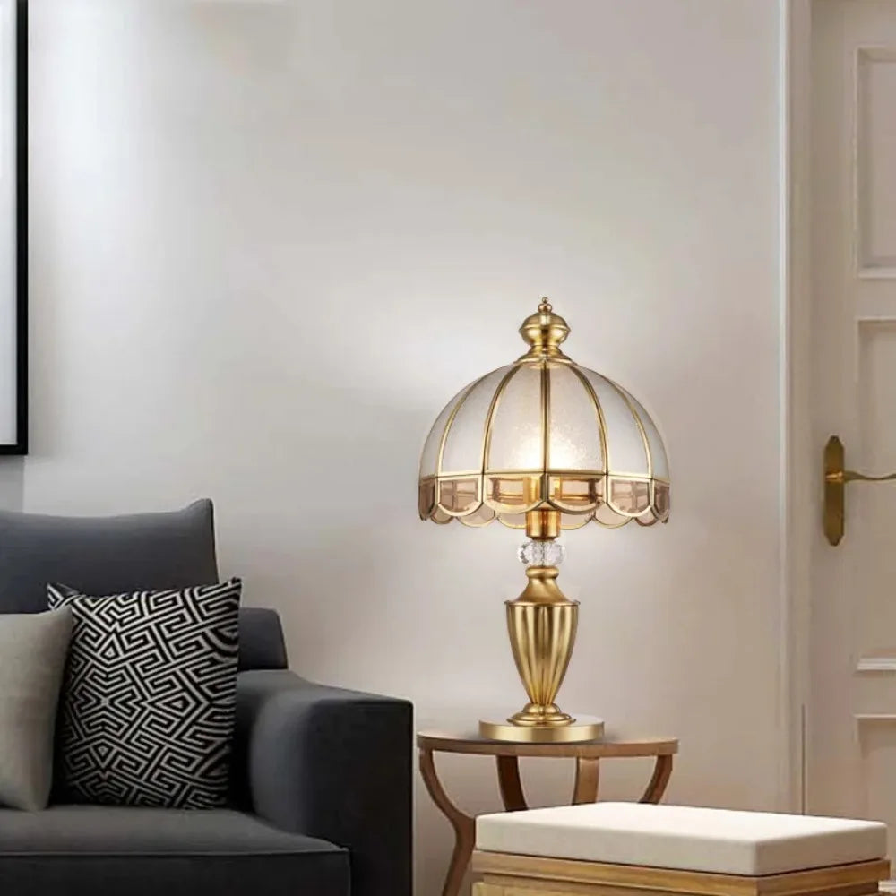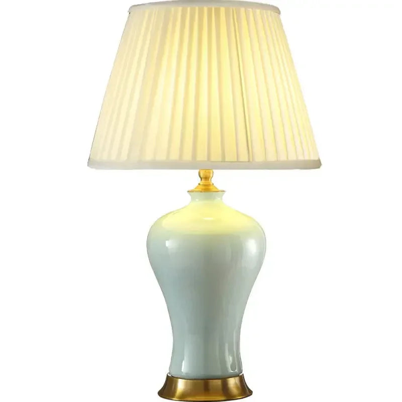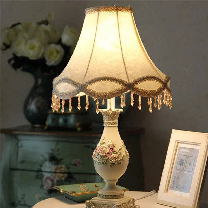 Designed with a contemporary style, this table lamp is a statement piece that will enhance the ambiance of your bedroom. The shade is made of stained glass and directs the light downwards, creating a warm and inviting atmosphere. The switch type is a convenient knob switch, allowing for easy operation.