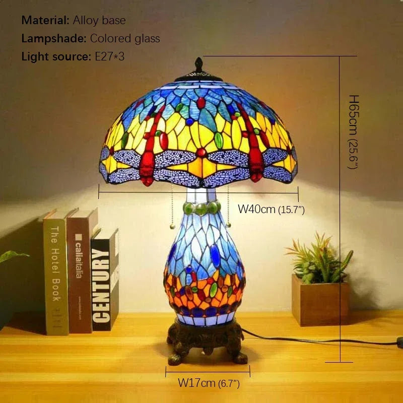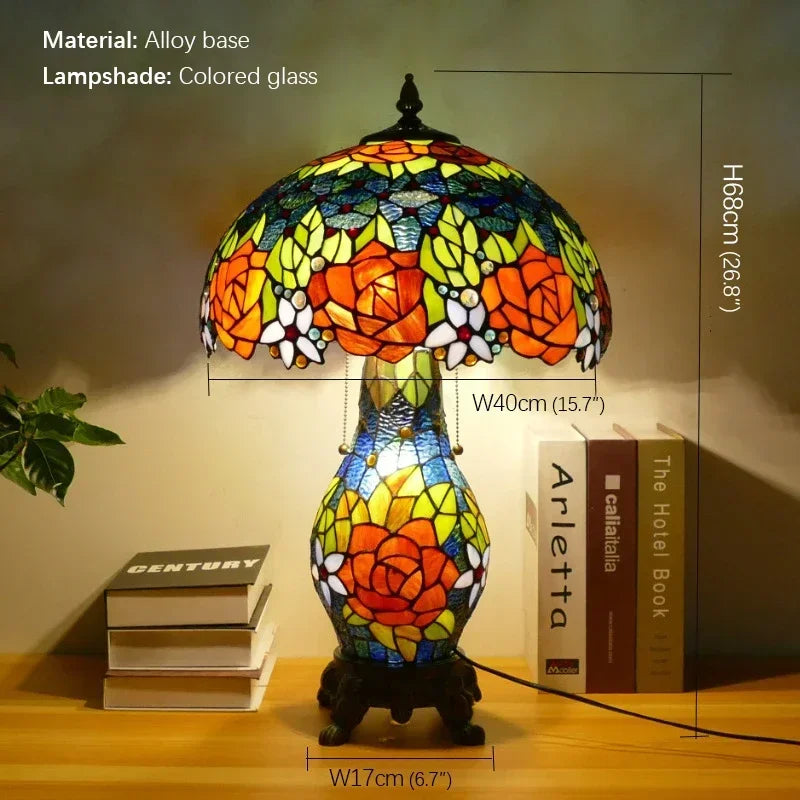 Axyaa Tiffany Glass Table Lamp - LED Modern Creative Color Desk Light