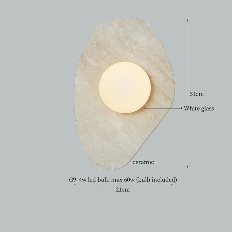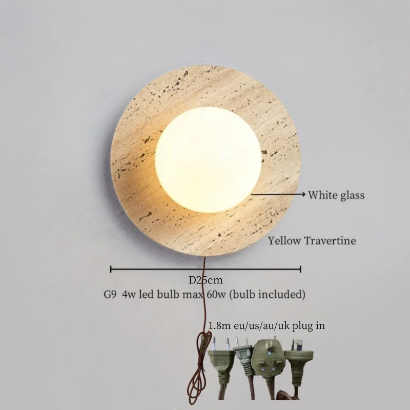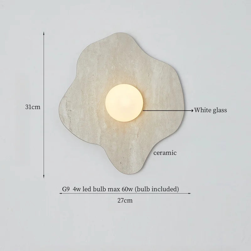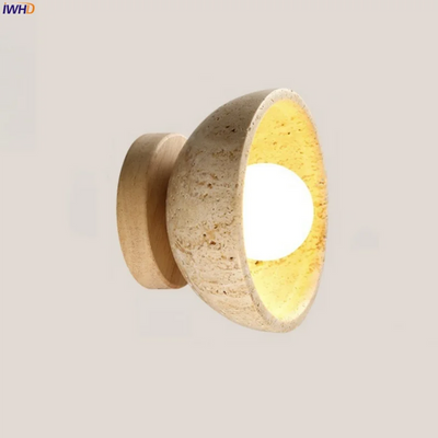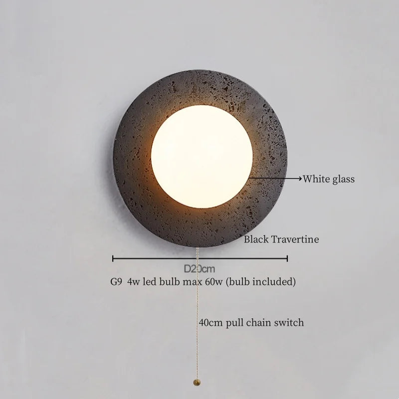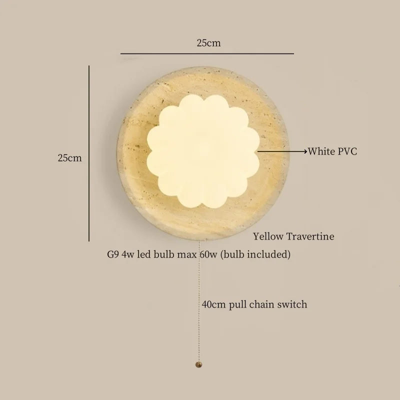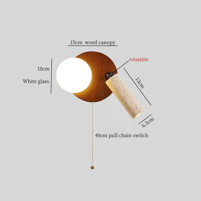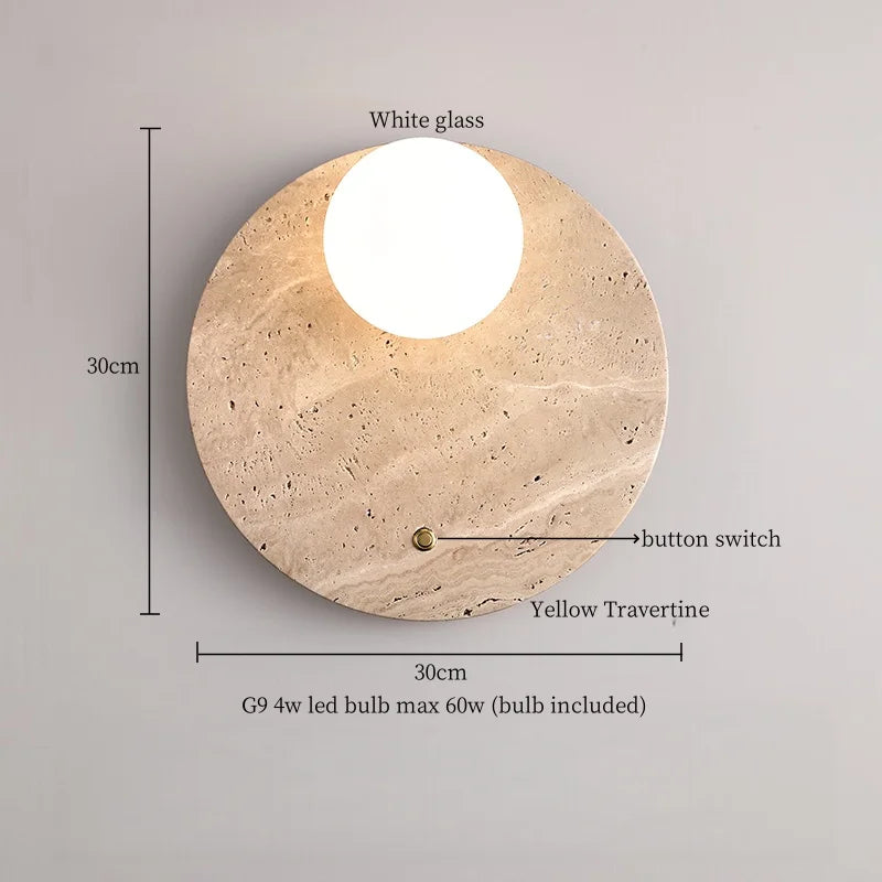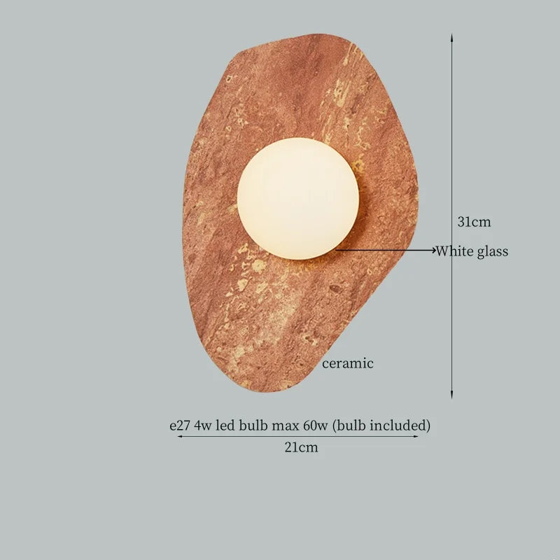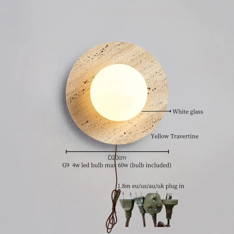 Illuminate your space with style and sophistication with our Axyaa Vintage Wabi Sabi LED Wall Lamp.Upgrade your interior lighting with our Axyaa Vintage Wabi Sabi LED Wall Lamp with Pull Chain Switch. This stylish wall lamp features a unique yellow travertine body that adds a touch of elegance to any room. The self-contained installation method makes it easy to mount on your wall, while the glass lampshade allows the LED light source to shine brightly.