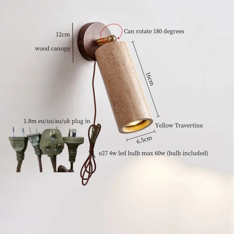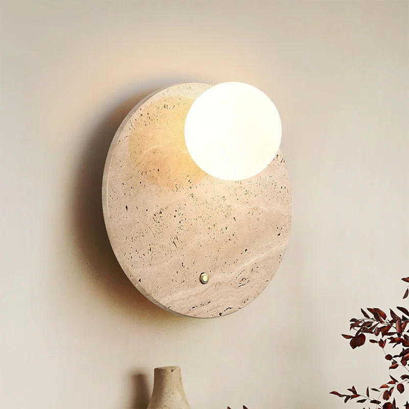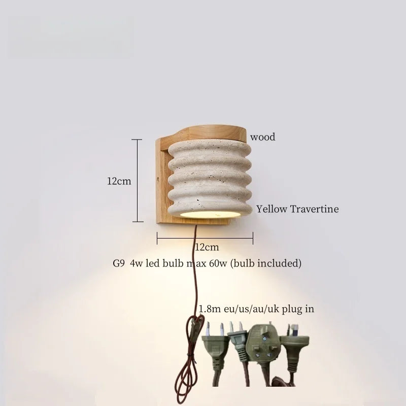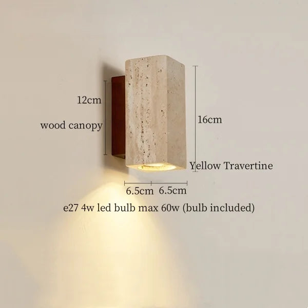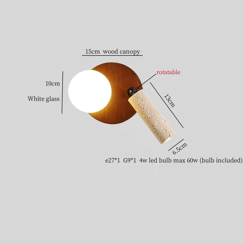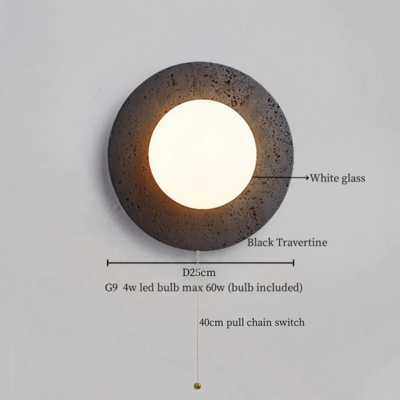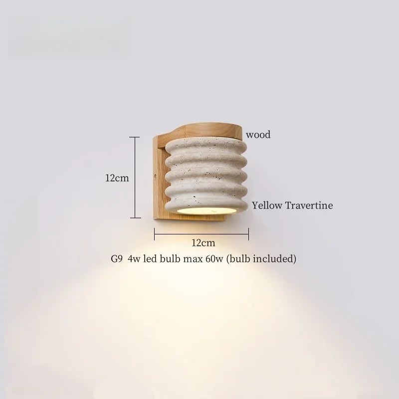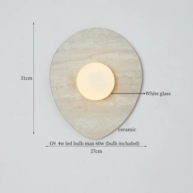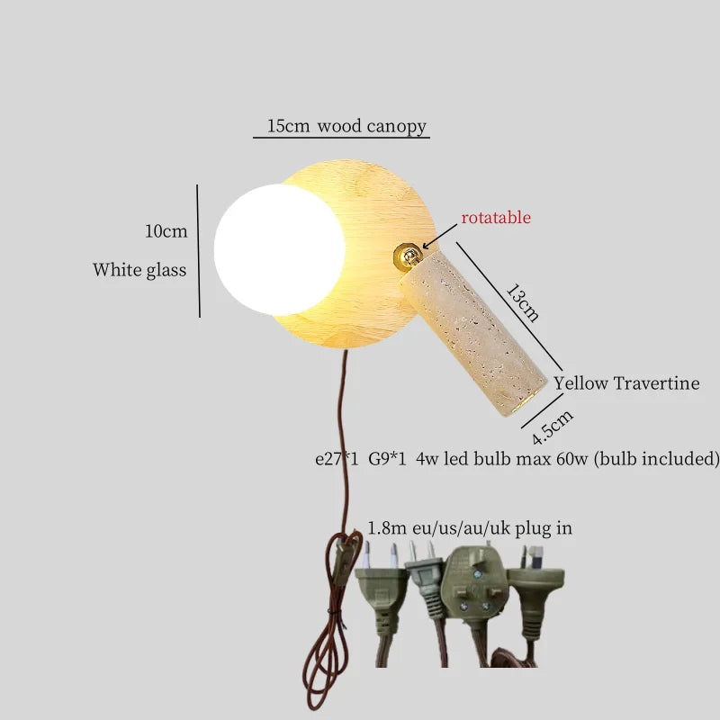 Illuminate your space with style and sophistication with our Axyaa Vintage Wabi Sabi LED Wall Lamp.Upgrade your interior lighting with our Axyaa Vintage Wabi Sabi LED Wall Lamp with Pull Chain Switch. This stylish wall lamp features a unique yellow travertine body that adds a touch of elegance to any room. The self-contained installation method makes it easy to mount on your wall, while the glass lampshade allows the LED light source to shine brightly.