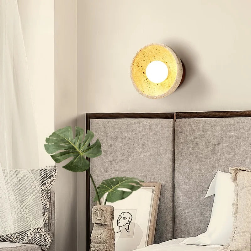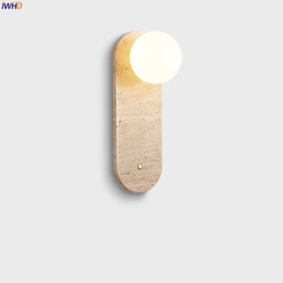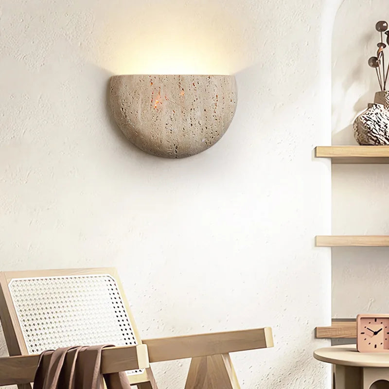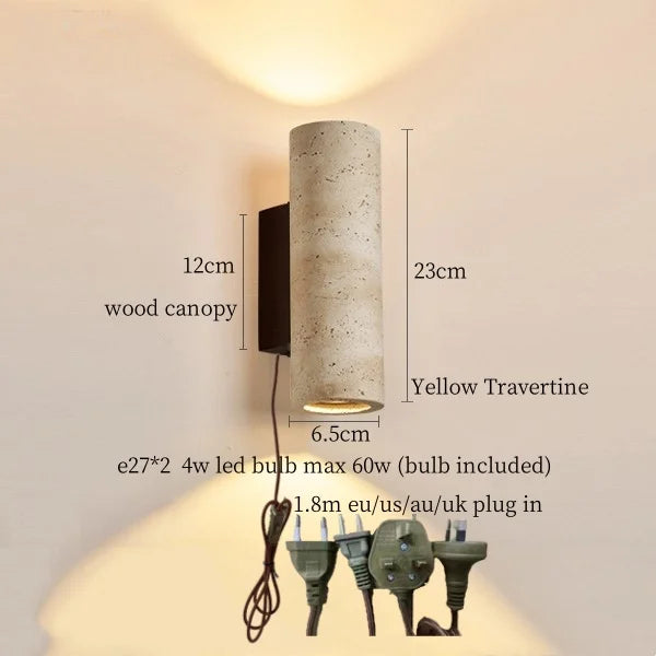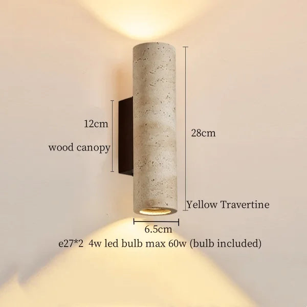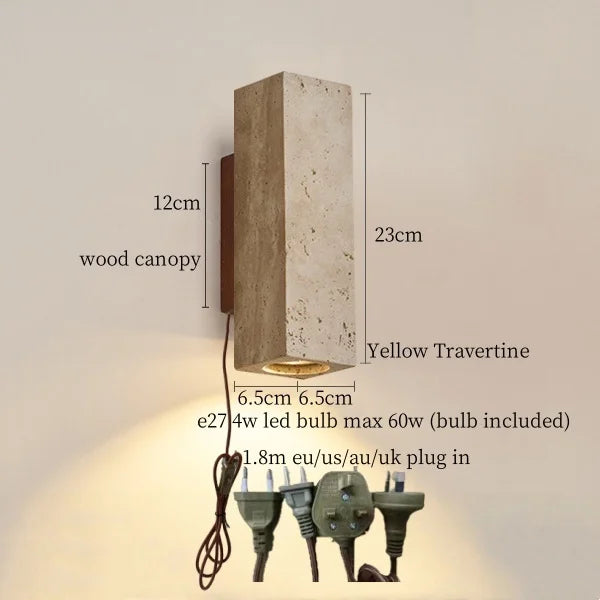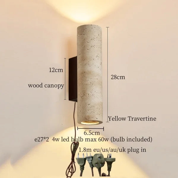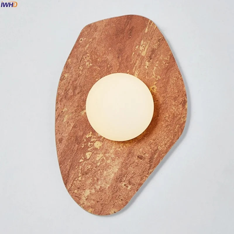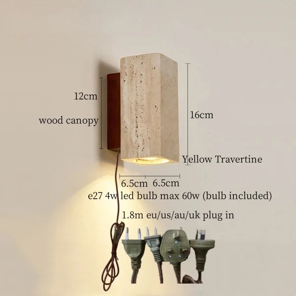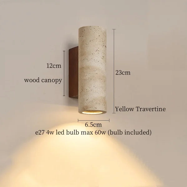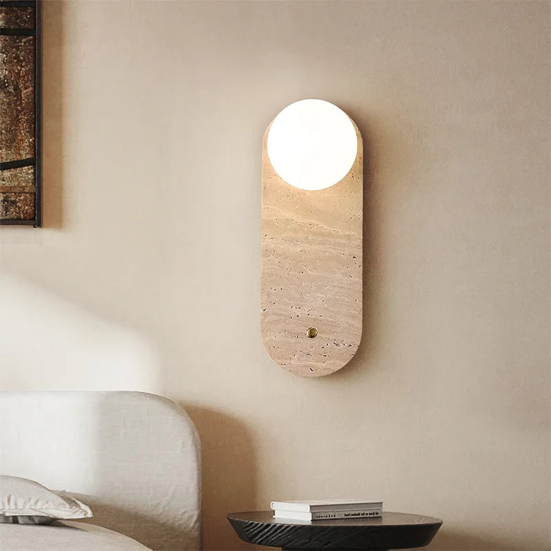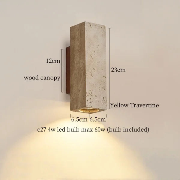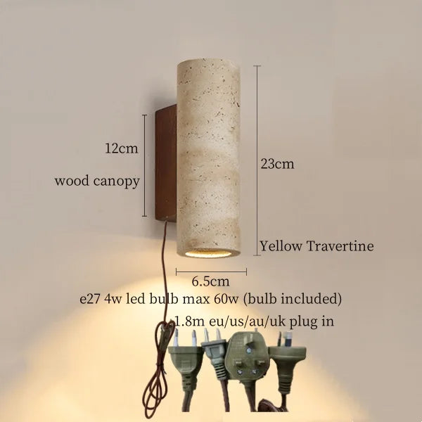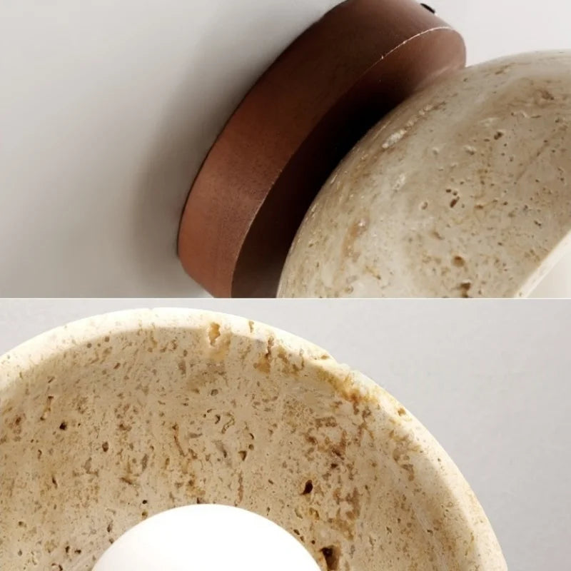 Illuminate your space with style and sophistication with our Axyaa Vintage Wabi Sabi LED Wall Lamp.Upgrade your interior lighting with our Axyaa Vintage Wabi Sabi LED Wall Lamp with Pull Chain Switch. This stylish wall lamp features a unique yellow travertine body that adds a touch of elegance to any room. The self-contained installation method makes it easy to mount on your wall, while the glass lampshade allows the LED light source to shine brightly.