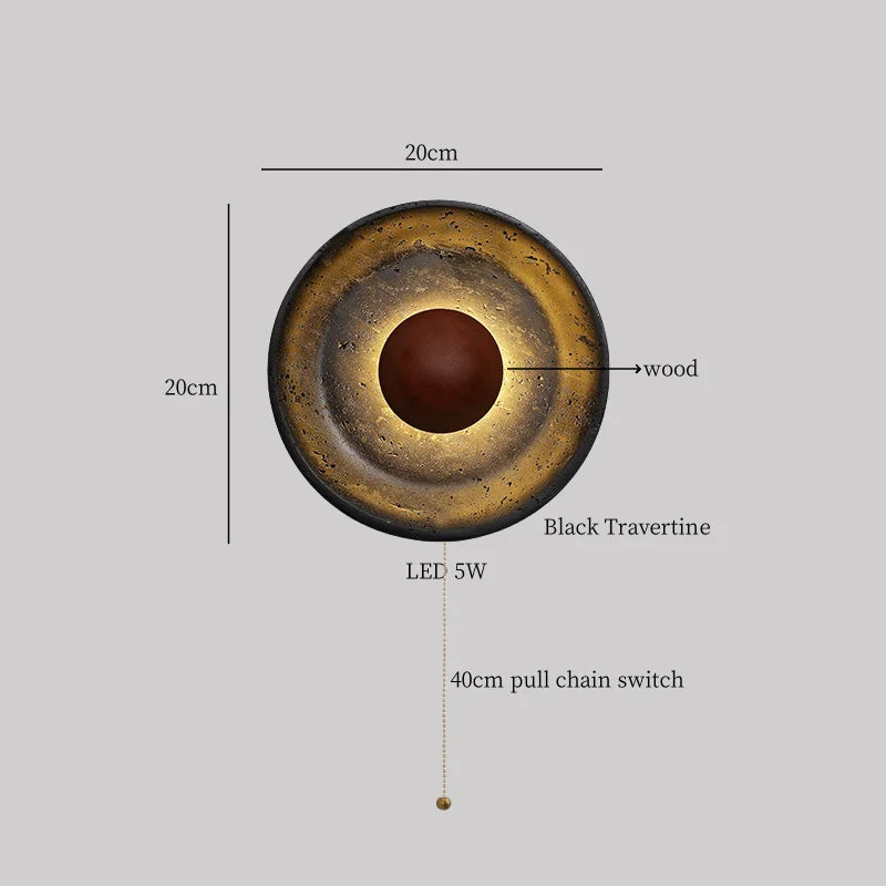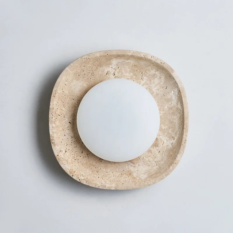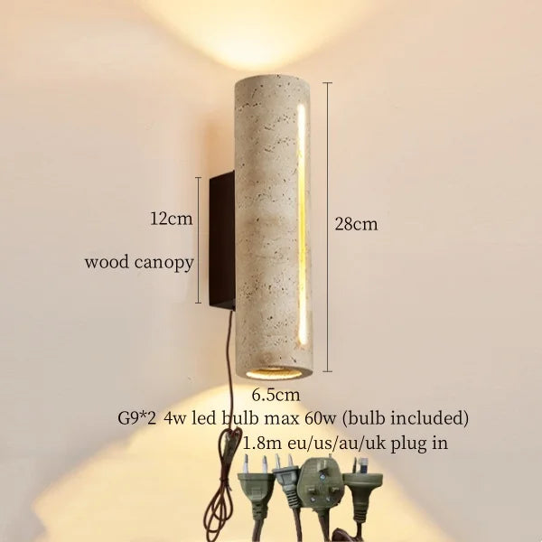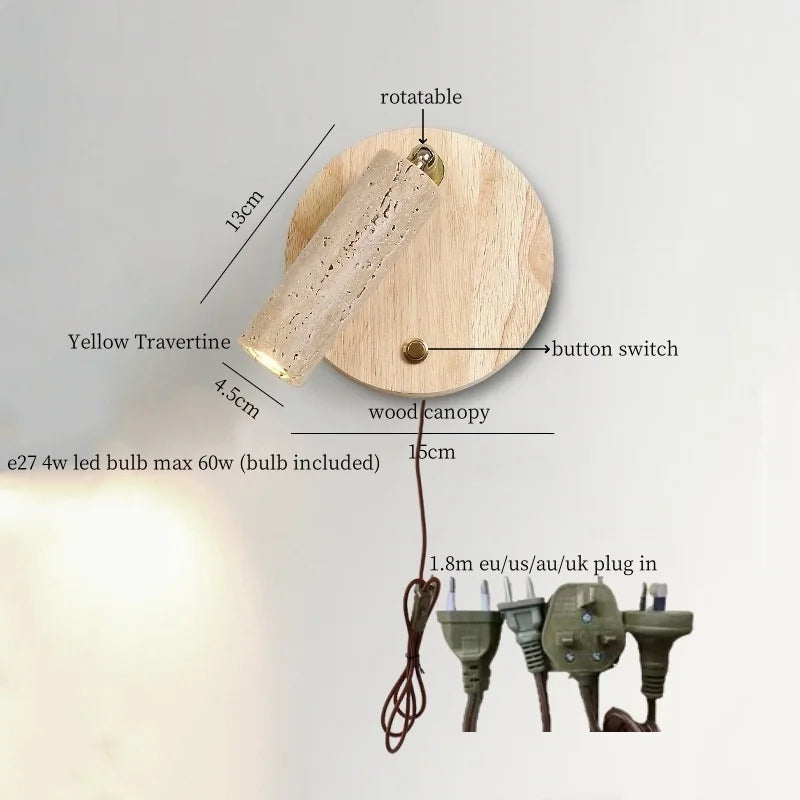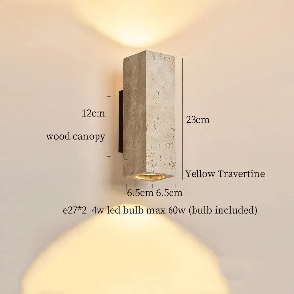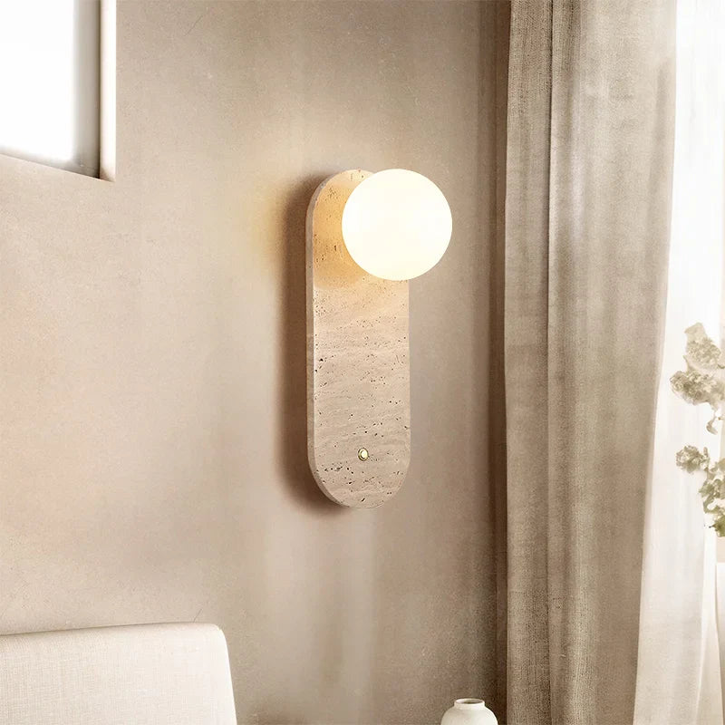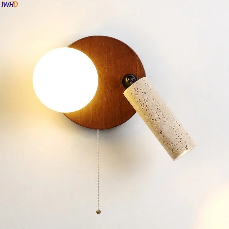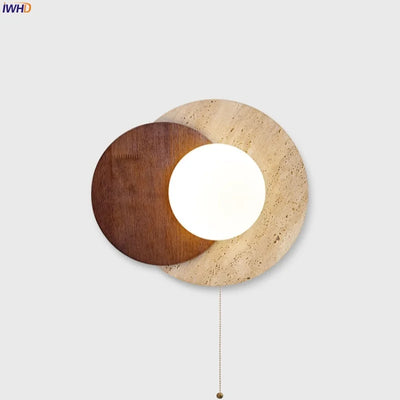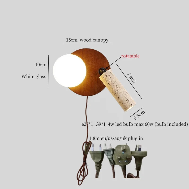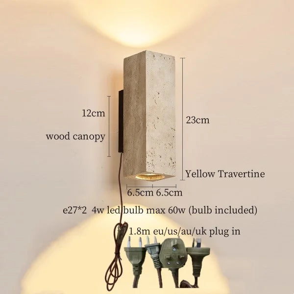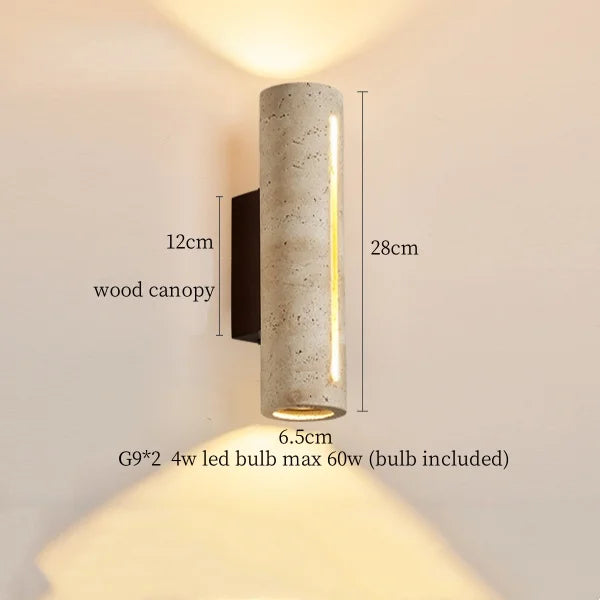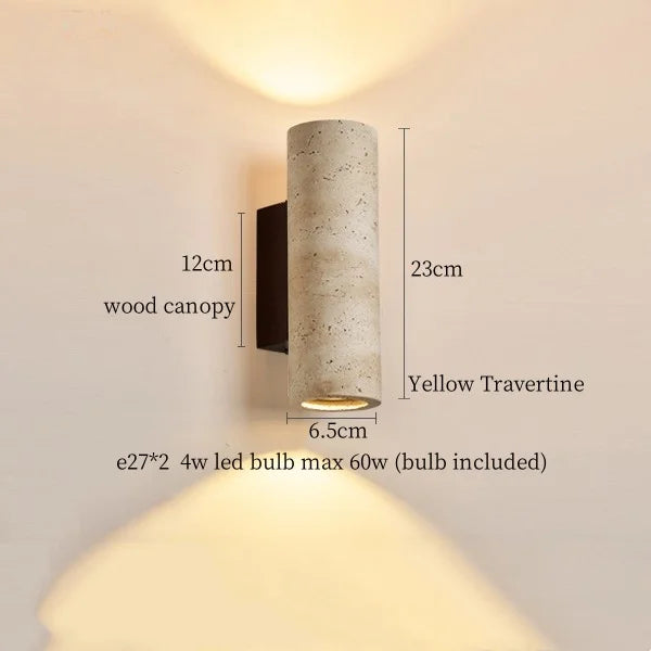 Illuminate your space with style and sophistication with our Axyaa Vintage Wabi Sabi LED Wall Lamp.Upgrade your interior lighting with our Axyaa Vintage Wabi Sabi LED Wall Lamp with Pull Chain Switch. This stylish wall lamp features a unique yellow travertine body that adds a touch of elegance to any room. The self-contained installation method makes it easy to mount on your wall, while the glass lampshade allows the LED light source to shine brightly.