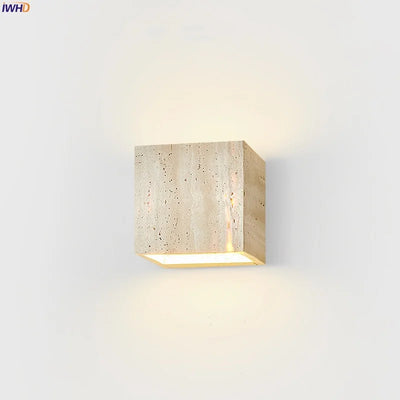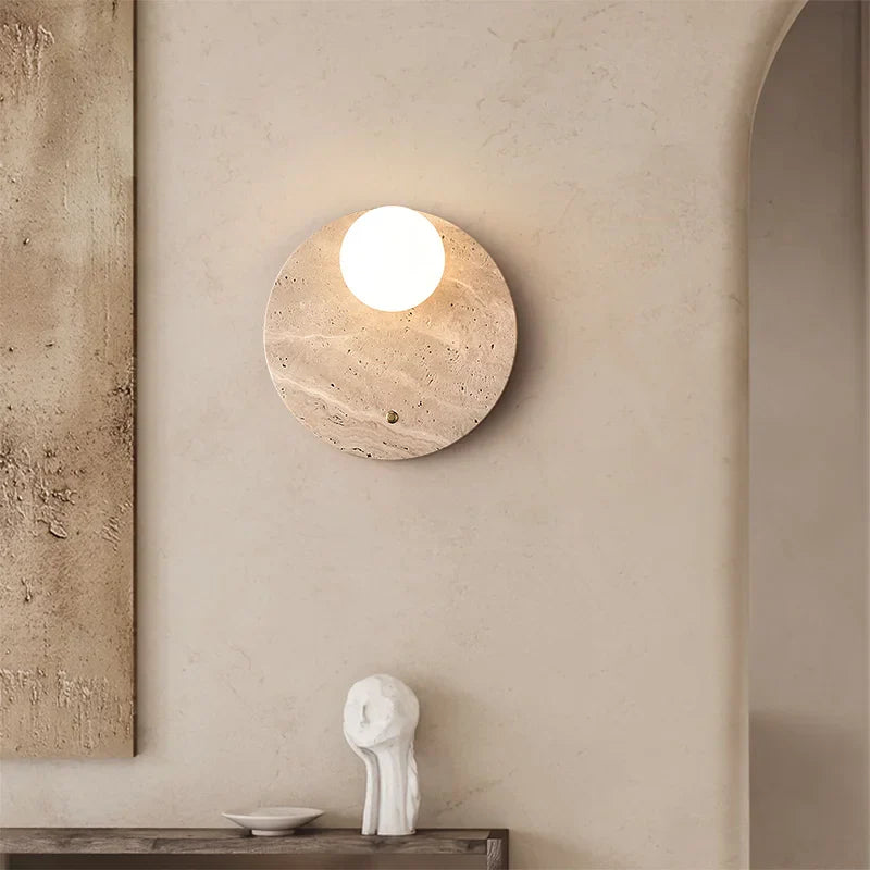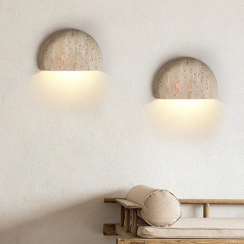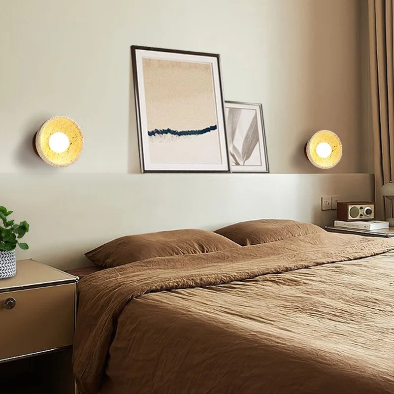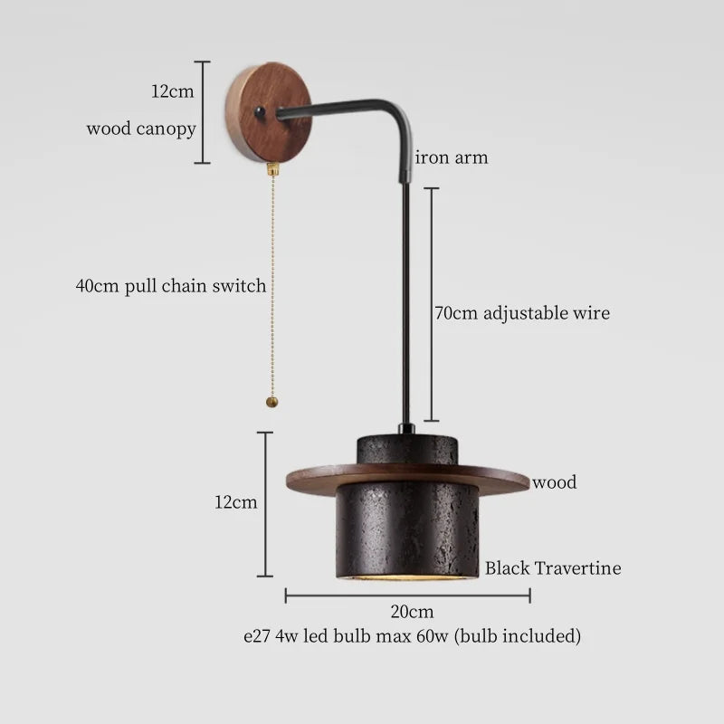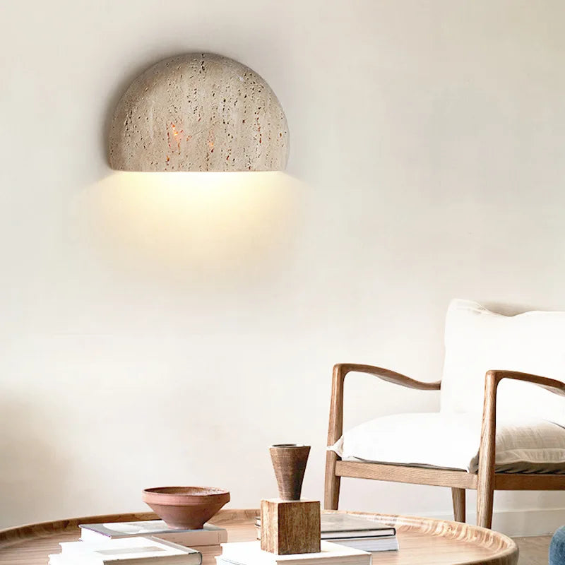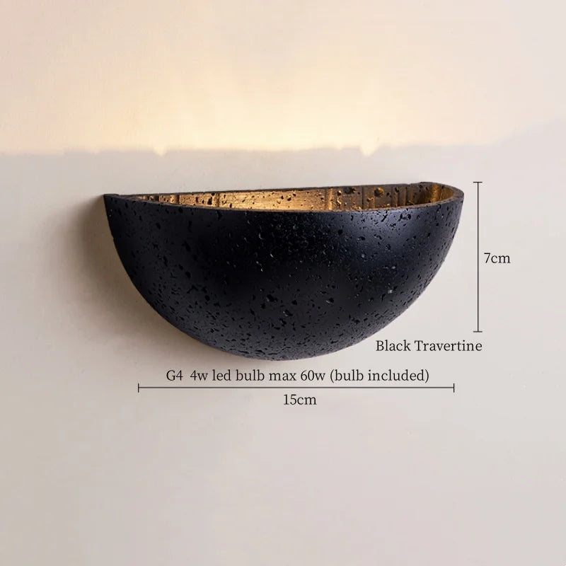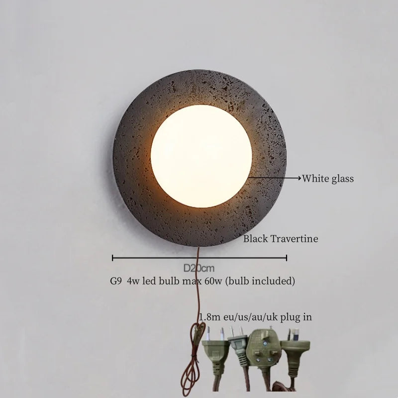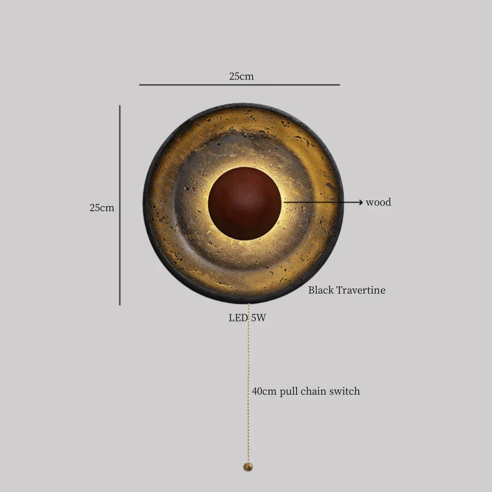 Illuminate your space with style and sophistication with our Axyaa Vintage Wabi Sabi LED Wall Lamp.Upgrade your interior lighting with our Axyaa Vintage Wabi Sabi LED Wall Lamp with Pull Chain Switch. This stylish wall lamp features a unique yellow travertine body that adds a touch of elegance to any room. The self-contained installation method makes it easy to mount on your wall, while the glass lampshade allows the LED light source to shine brightly.