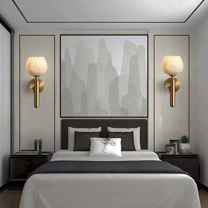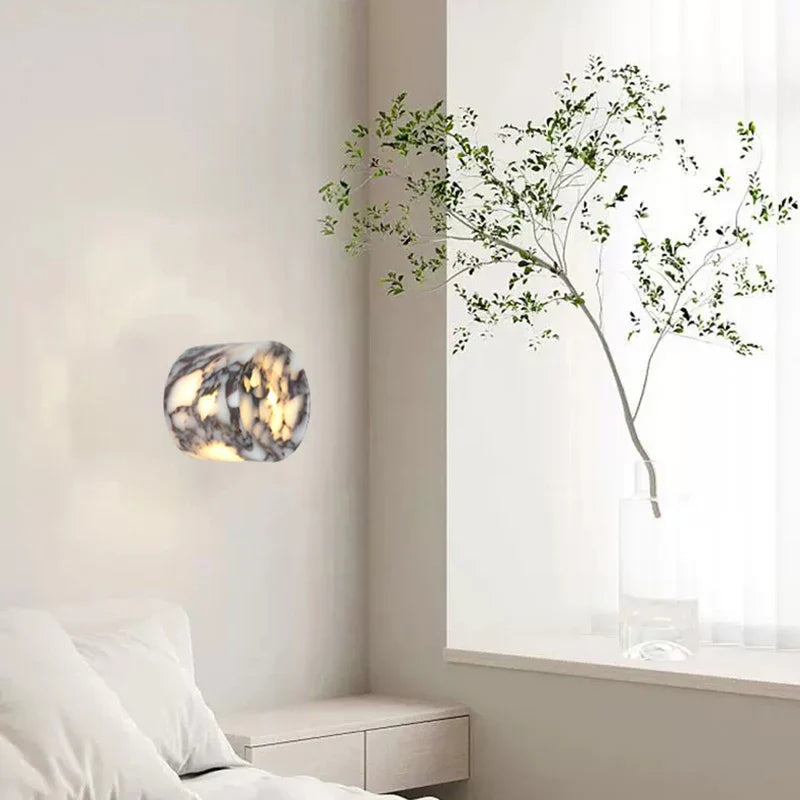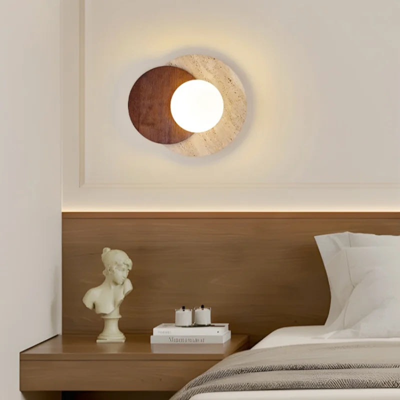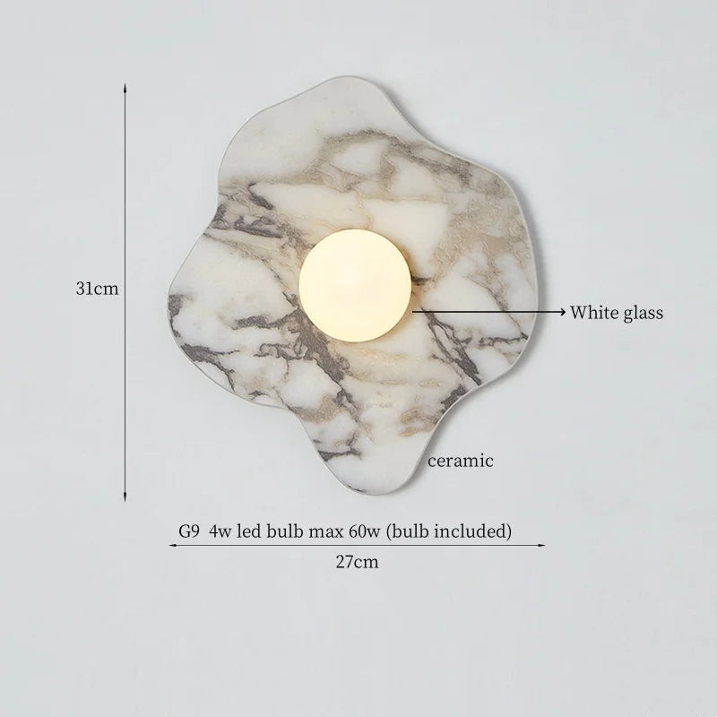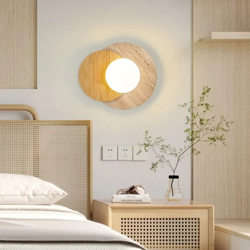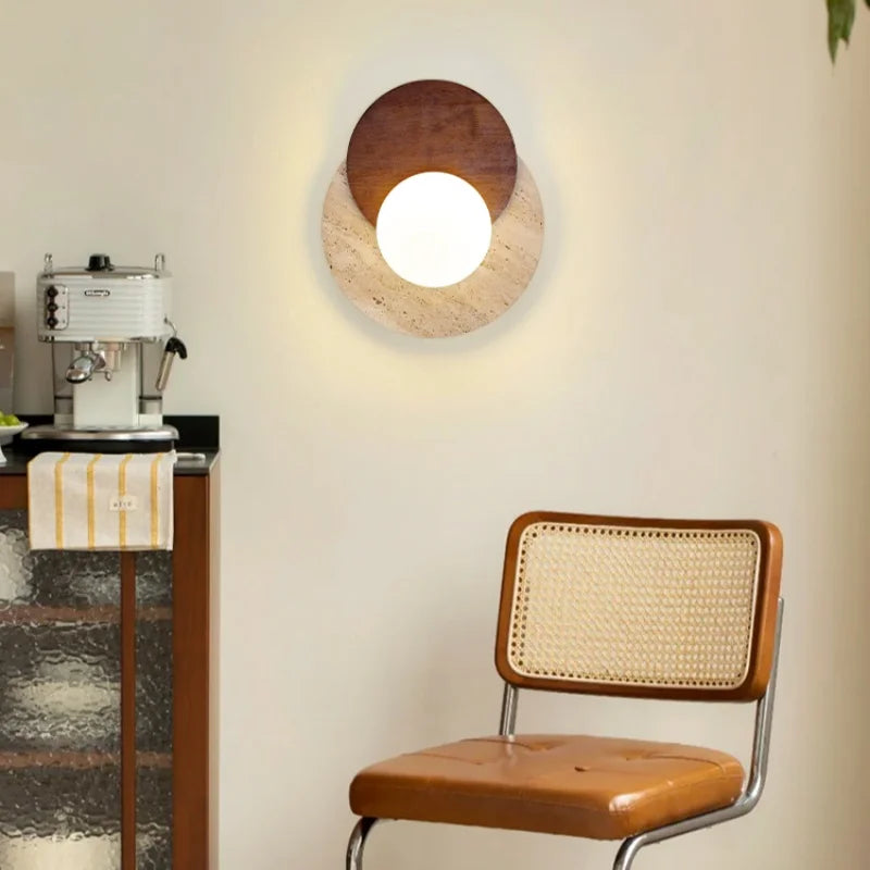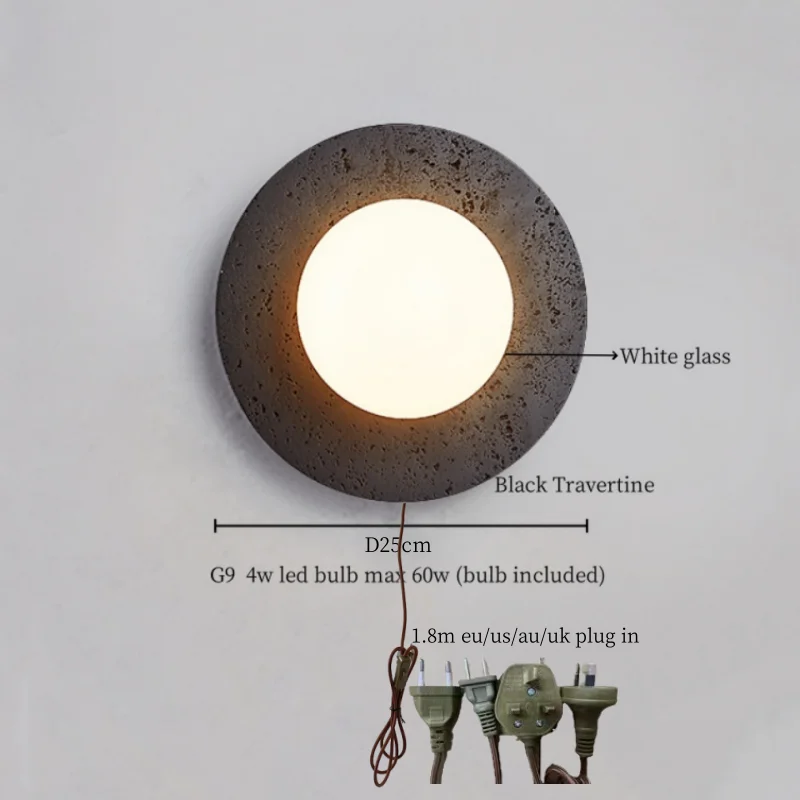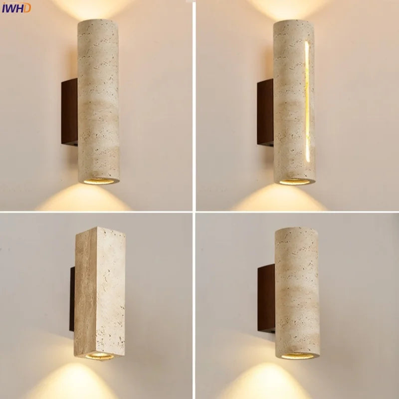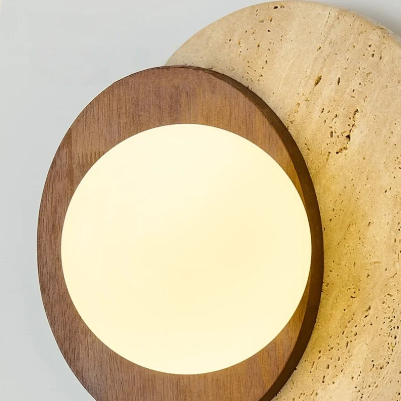 Illuminate your space with style and sophistication with our Axyaa Vintage Wabi Sabi LED Wall Lamp.Upgrade your interior lighting with our Axyaa Vintage Wabi Sabi LED Wall Lamp with Pull Chain Switch. This stylish wall lamp features a unique yellow travertine body that adds a touch of elegance to any room. The self-contained installation method makes it easy to mount on your wall, while the glass lampshade allows the LED light source to shine brightly.