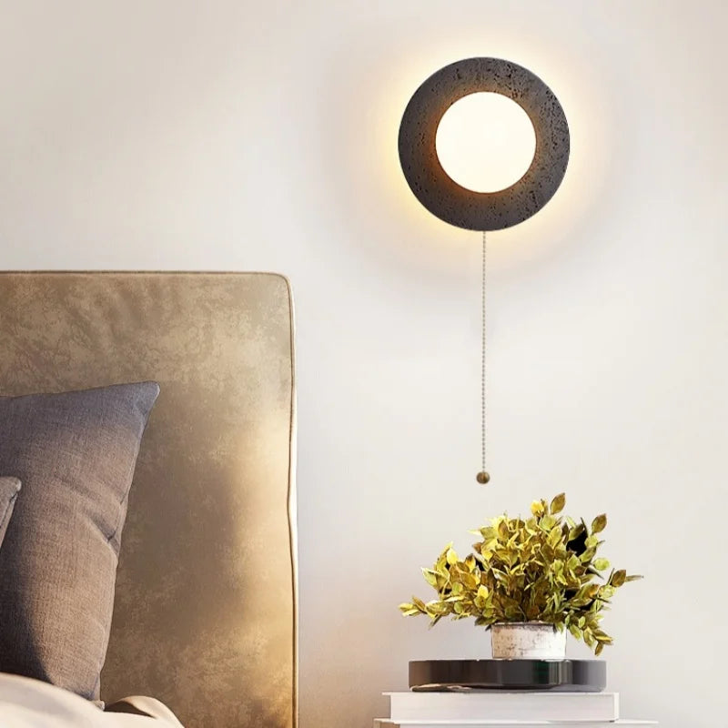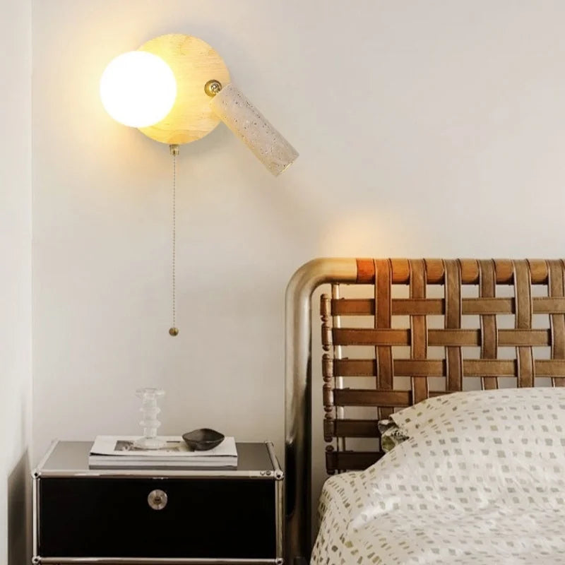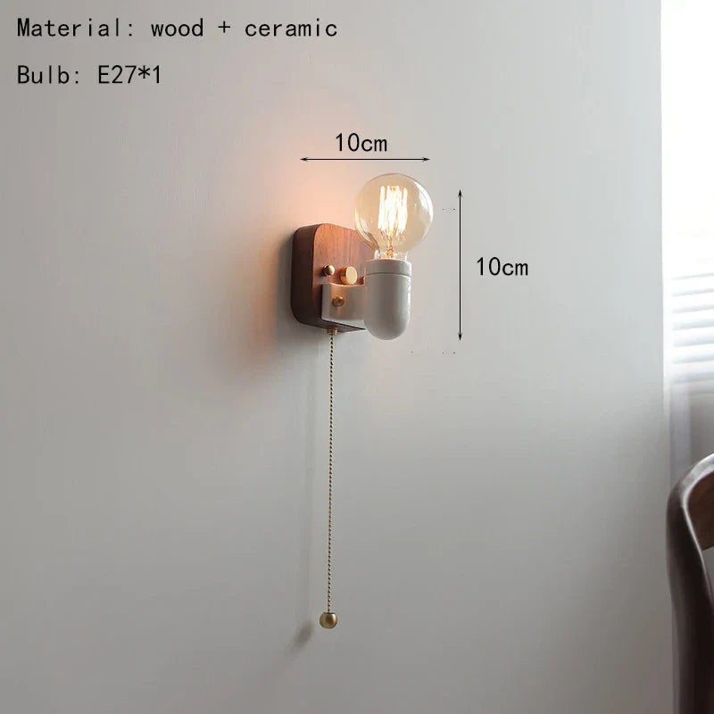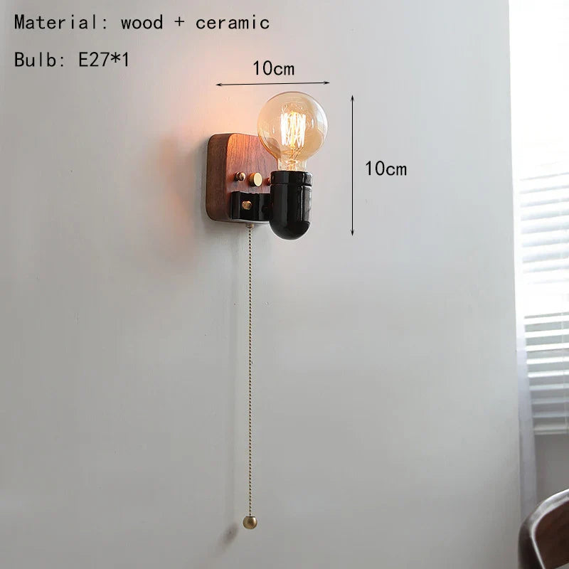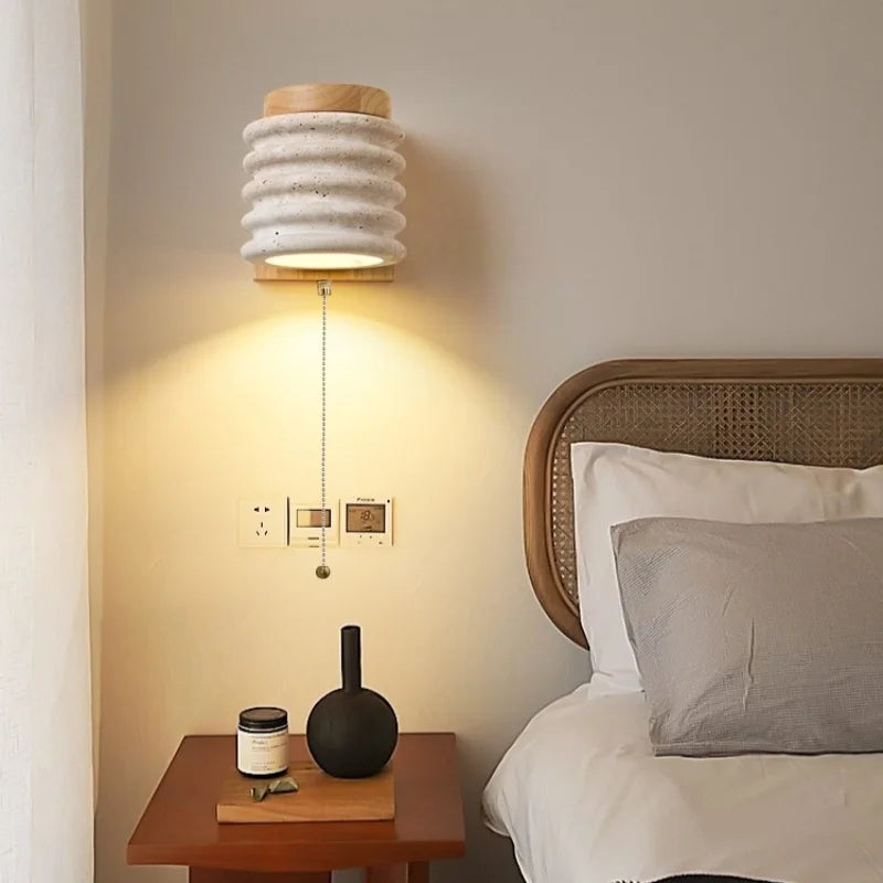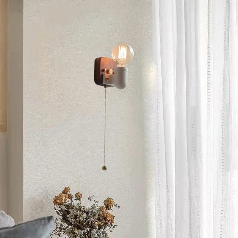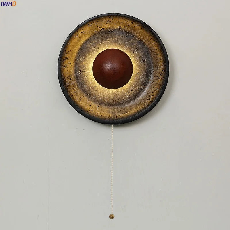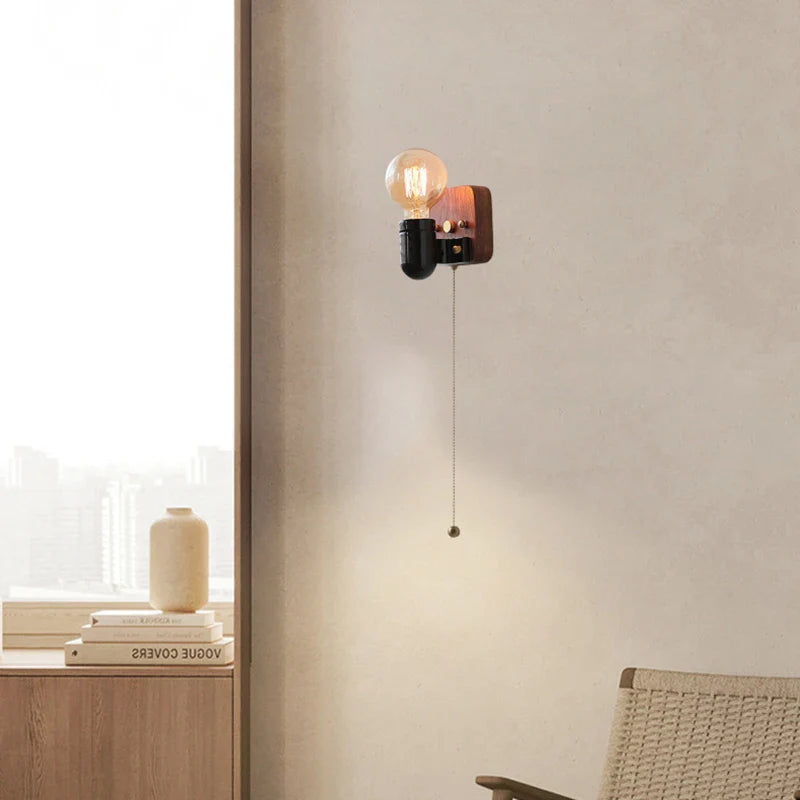 Axyaa Vintage Wabi Sabi LED Wall Lamp with Pull Chain Switch for Living Room and Bedroom
