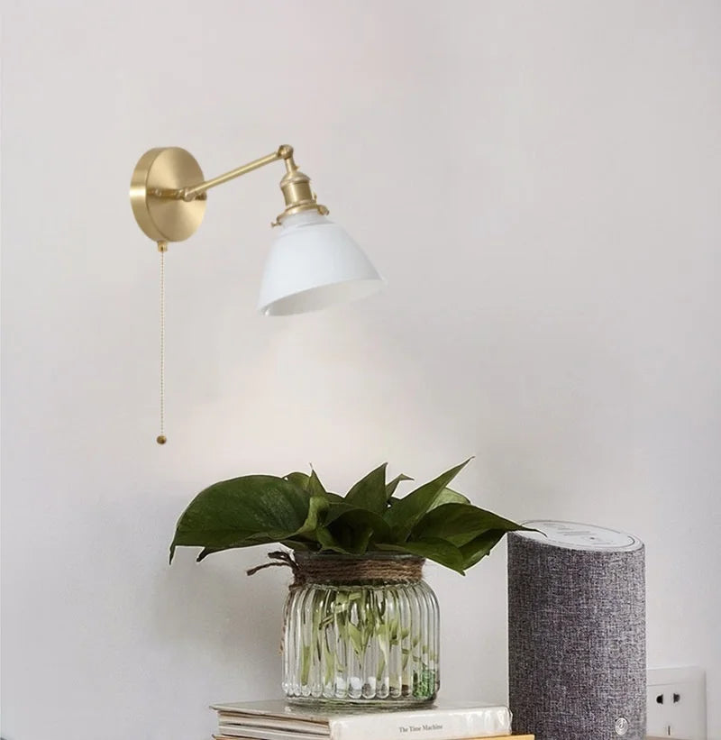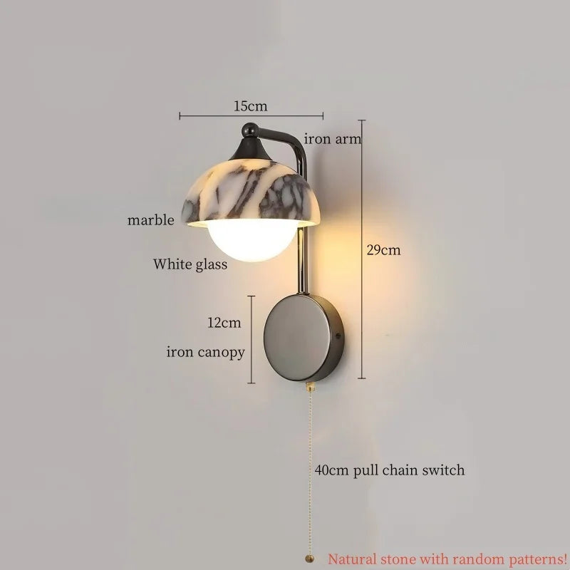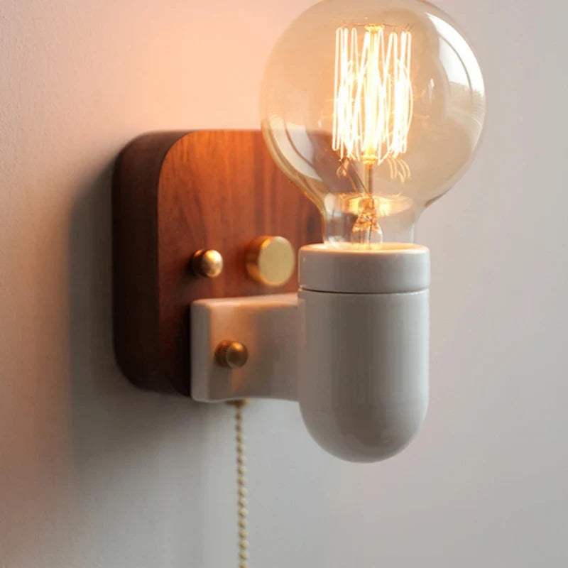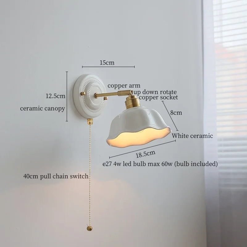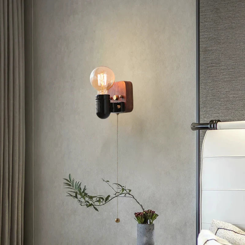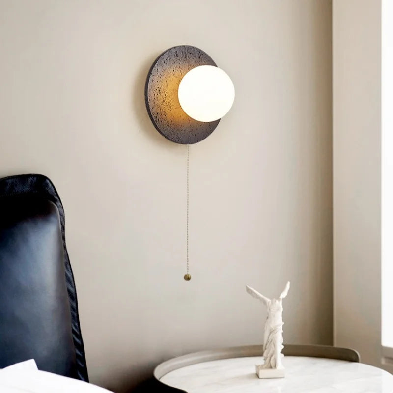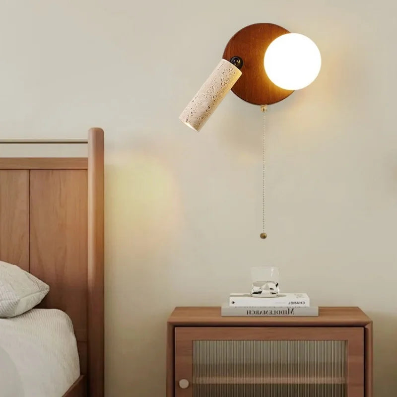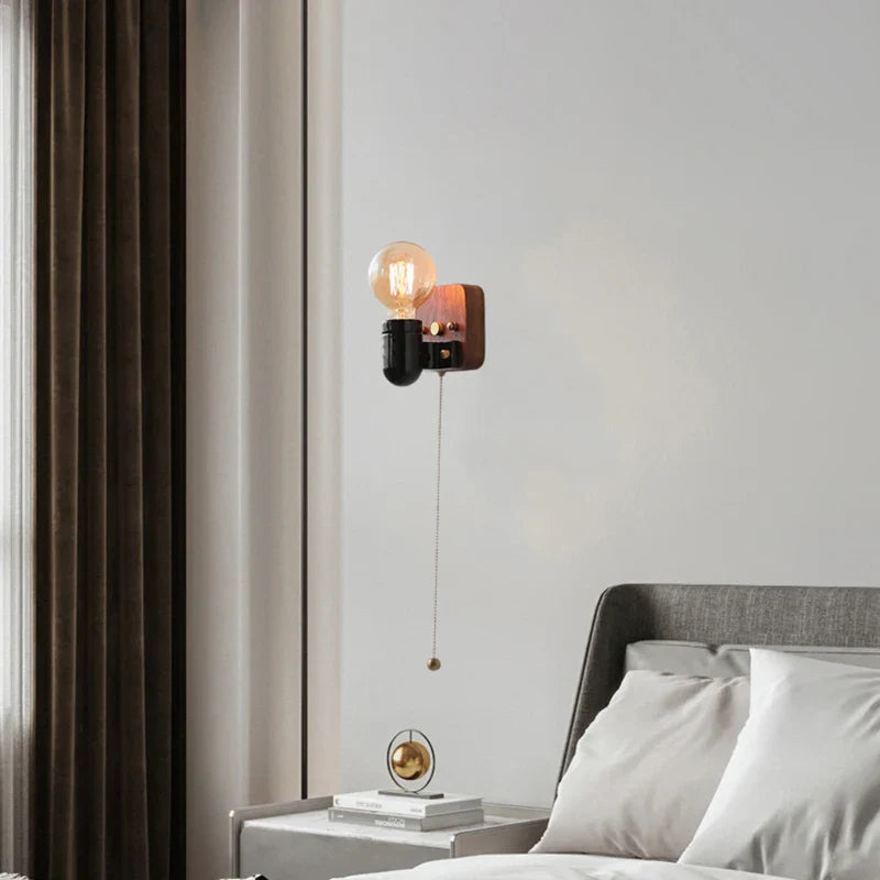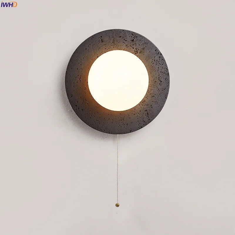 Axyaa Vintage Wabi Sabi LED Wall Lamp with Pull Chain Switch for Living Room and Bedroom
