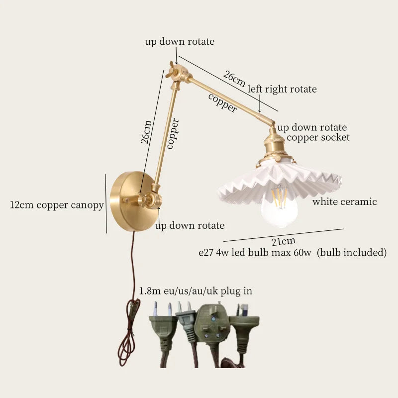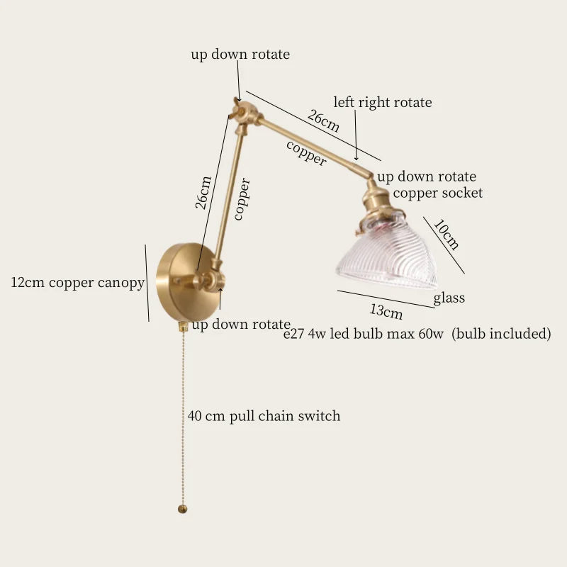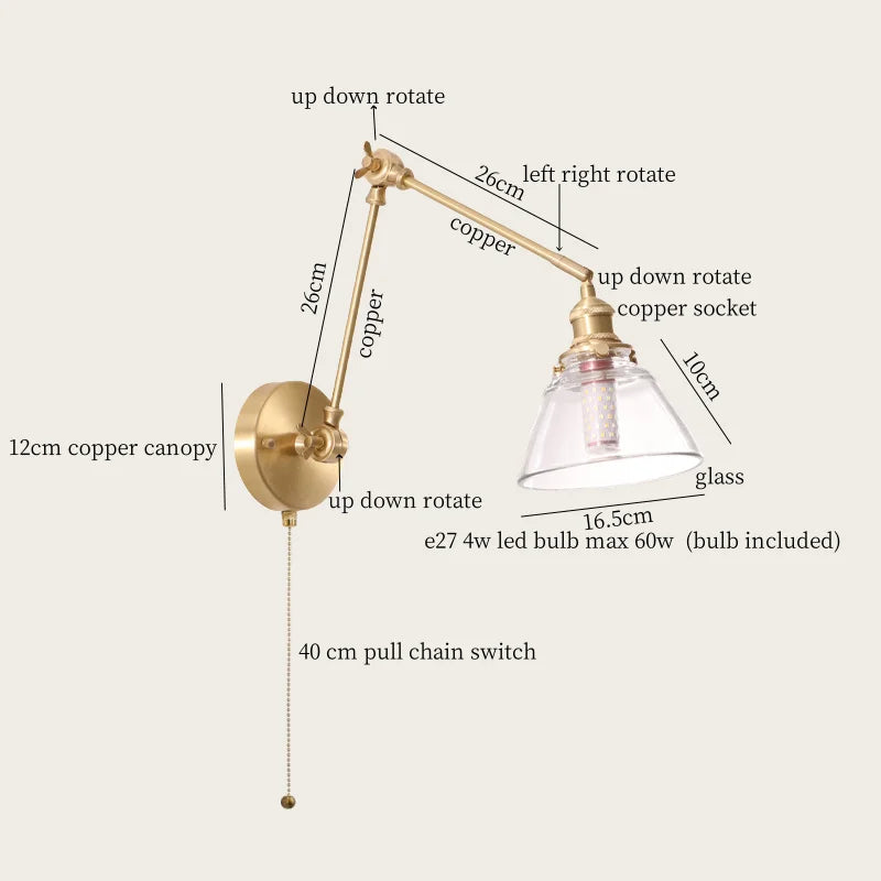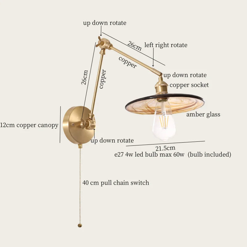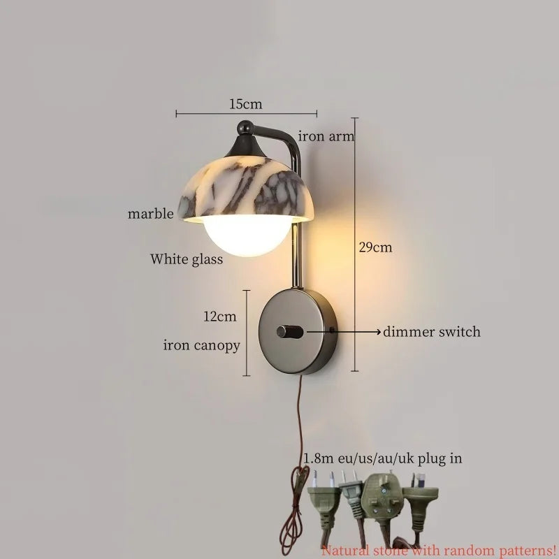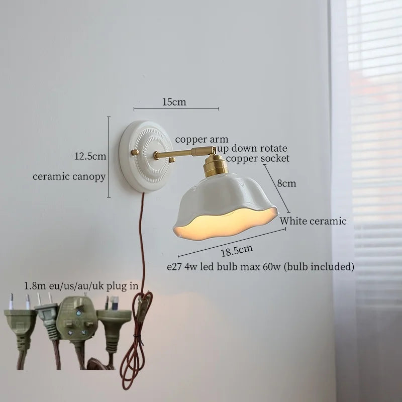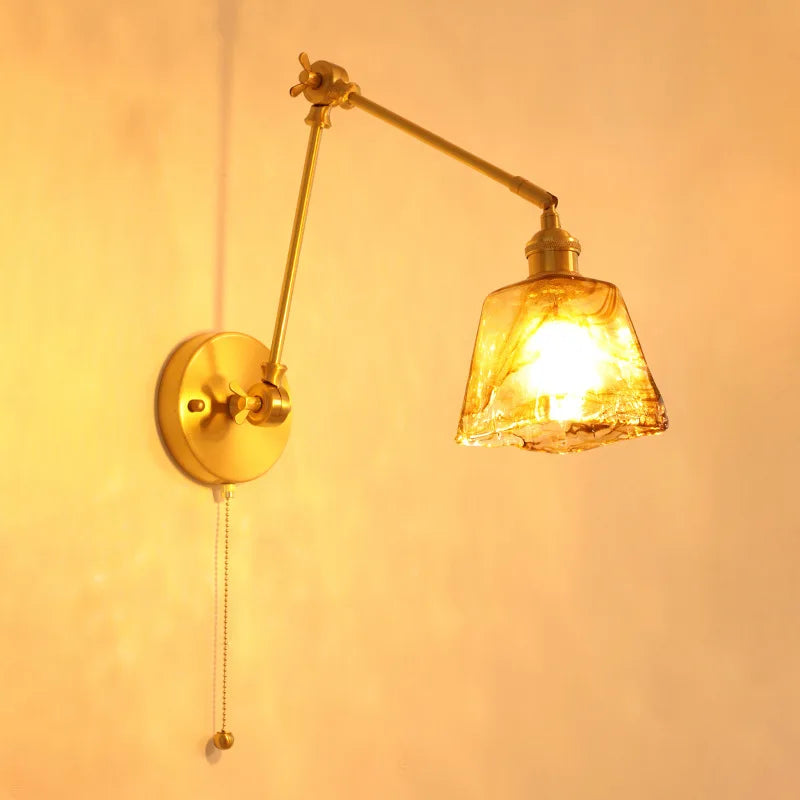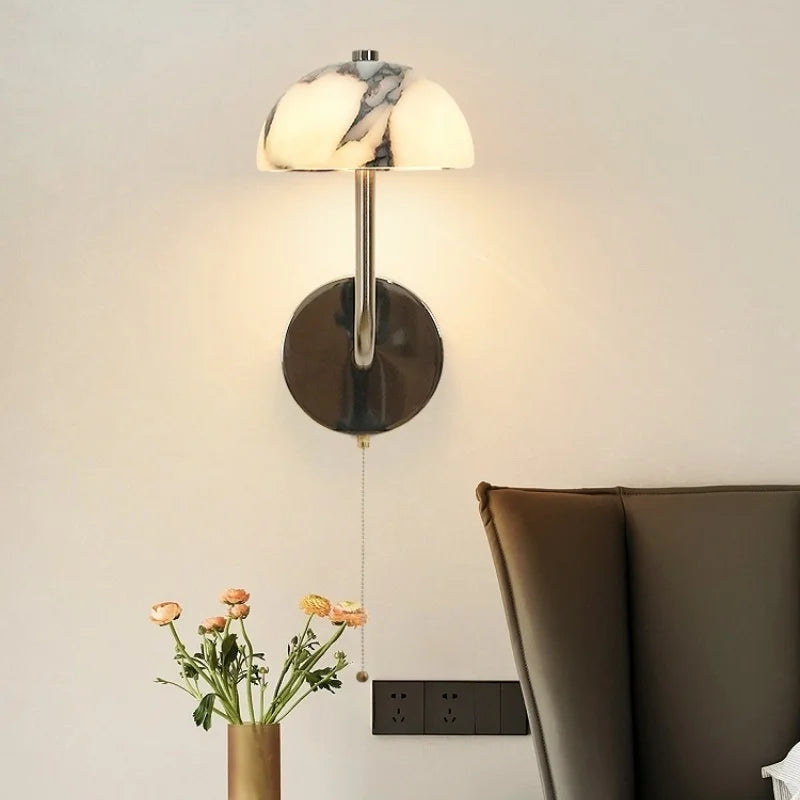 Axyaa Vintage Wabi Sabi LED Wall Lamp with Pull Chain Switch for Living Room and Bedroom