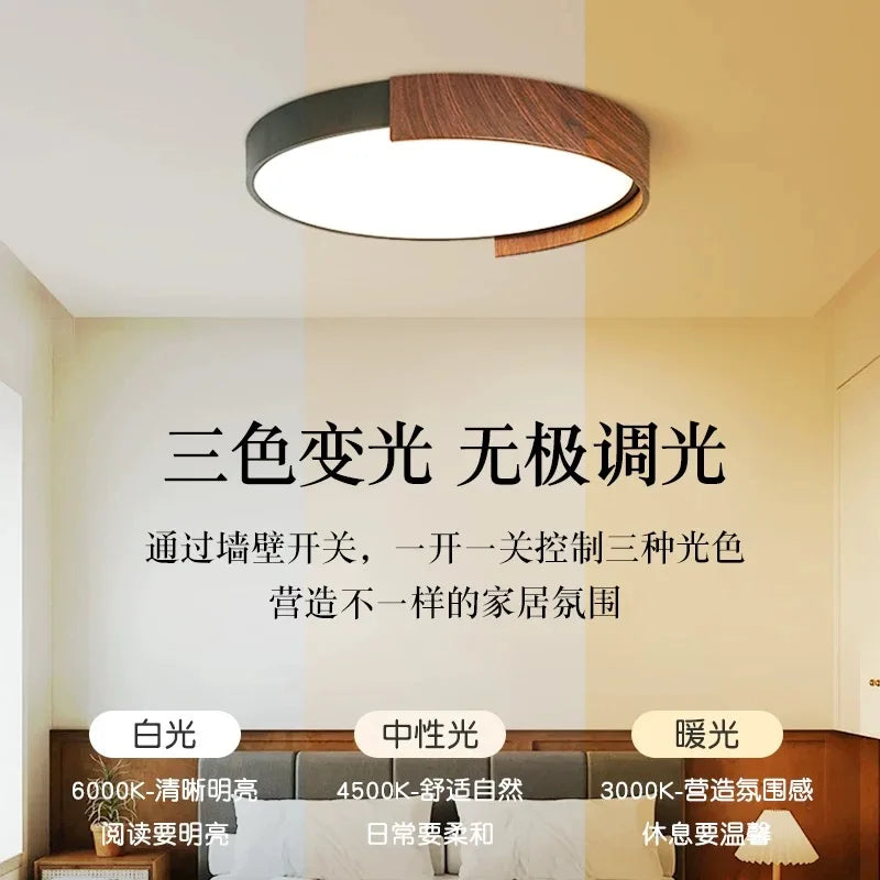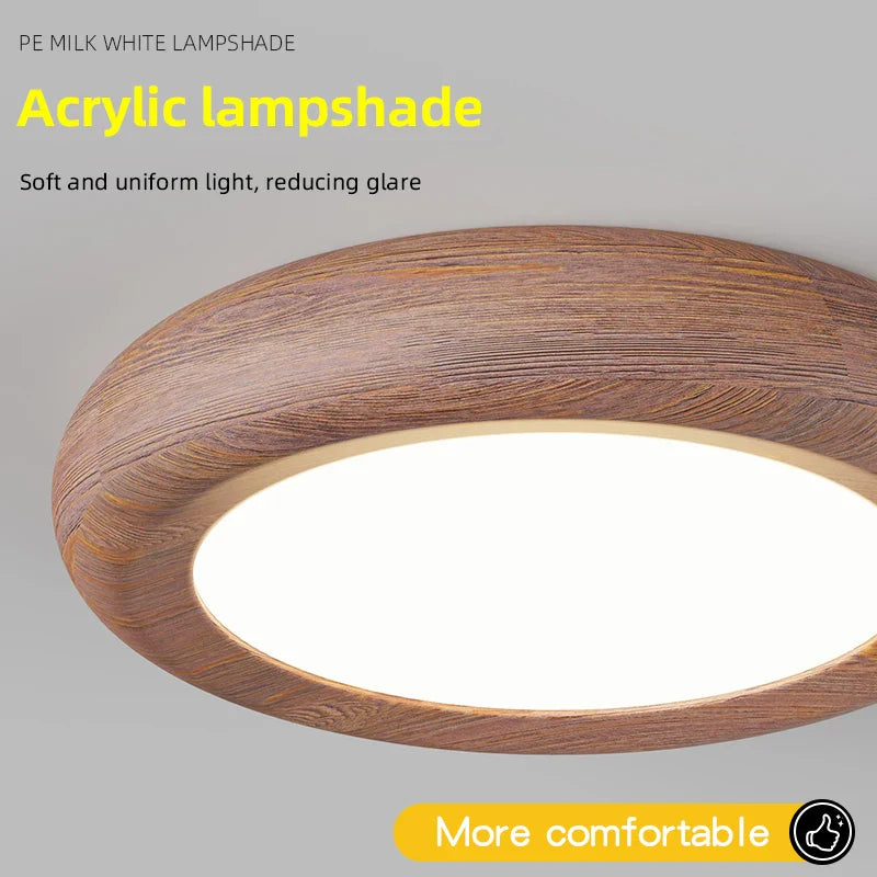 Axyaa Wood Grain LED Ceiling Lamp Modern Nordic Home Decor Bedroom Pendant Light