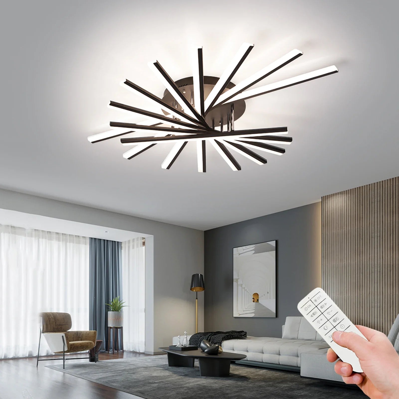 One of the standout features of this ceiling lamp is its dimmable functionality, which can be easily controlled with the included remote. Whether you want to create a cozy atmosphere or brighten up the room, the dimmable option gives you full control over the lighting intensity.