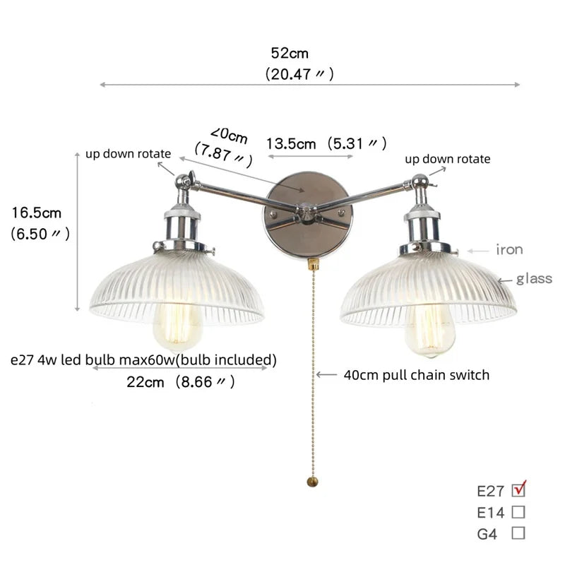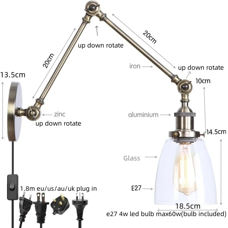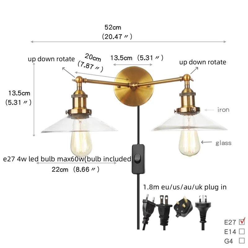 This wall lamp features an E27 base type and can accommodate one LED bulb with a maximum wattage of 4W (max 60w). The LED bulbs offer energy efficiency and long-lasting performance, making them ideal for daily lighting needs. The lampshade is shadeless, allowing the light to disperse evenly in the room.