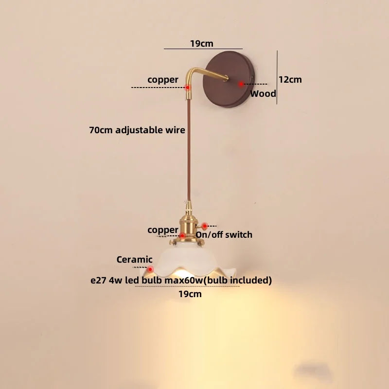 Crafted from high-quality walnut wood, this wall lamp exudes elegance and sophistication. The canopy is made of durable copper material, adding a touch of luxury to the design. The warm brown color complements any interior decor, while the up and down shade direction provides versatile lighting options.