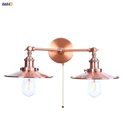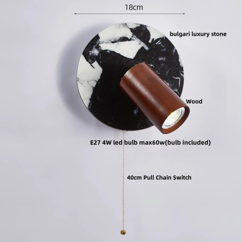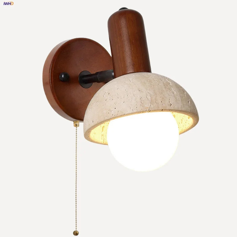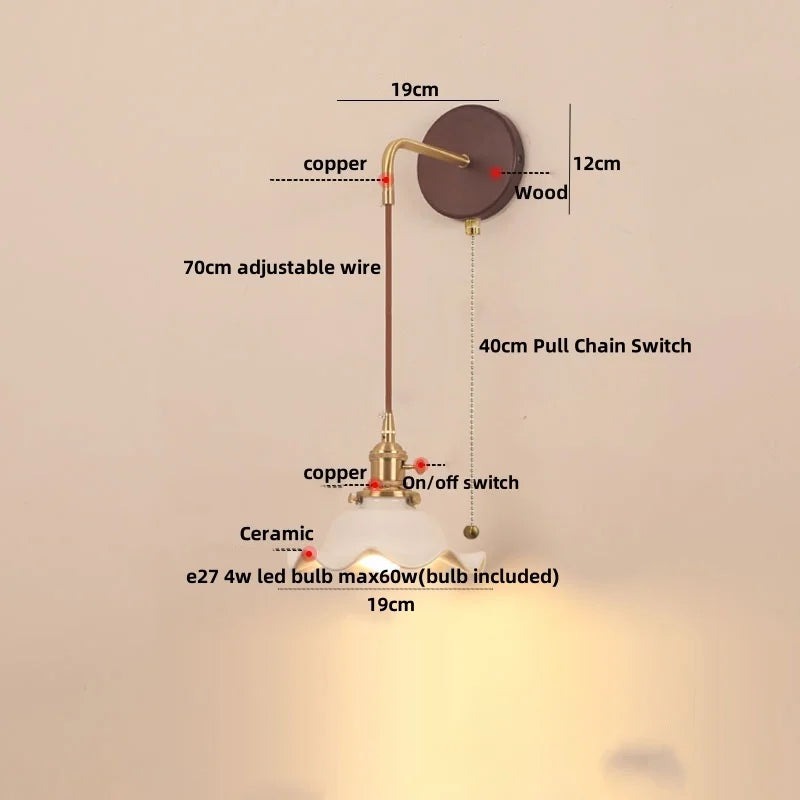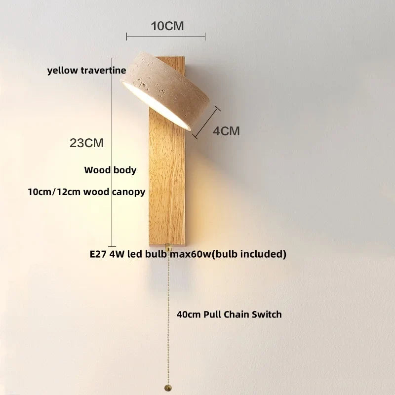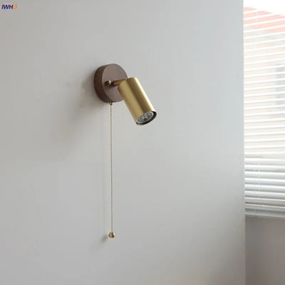 Axyaa Walnut Wood LED Wall Light Fixture with Pull Chain Switch