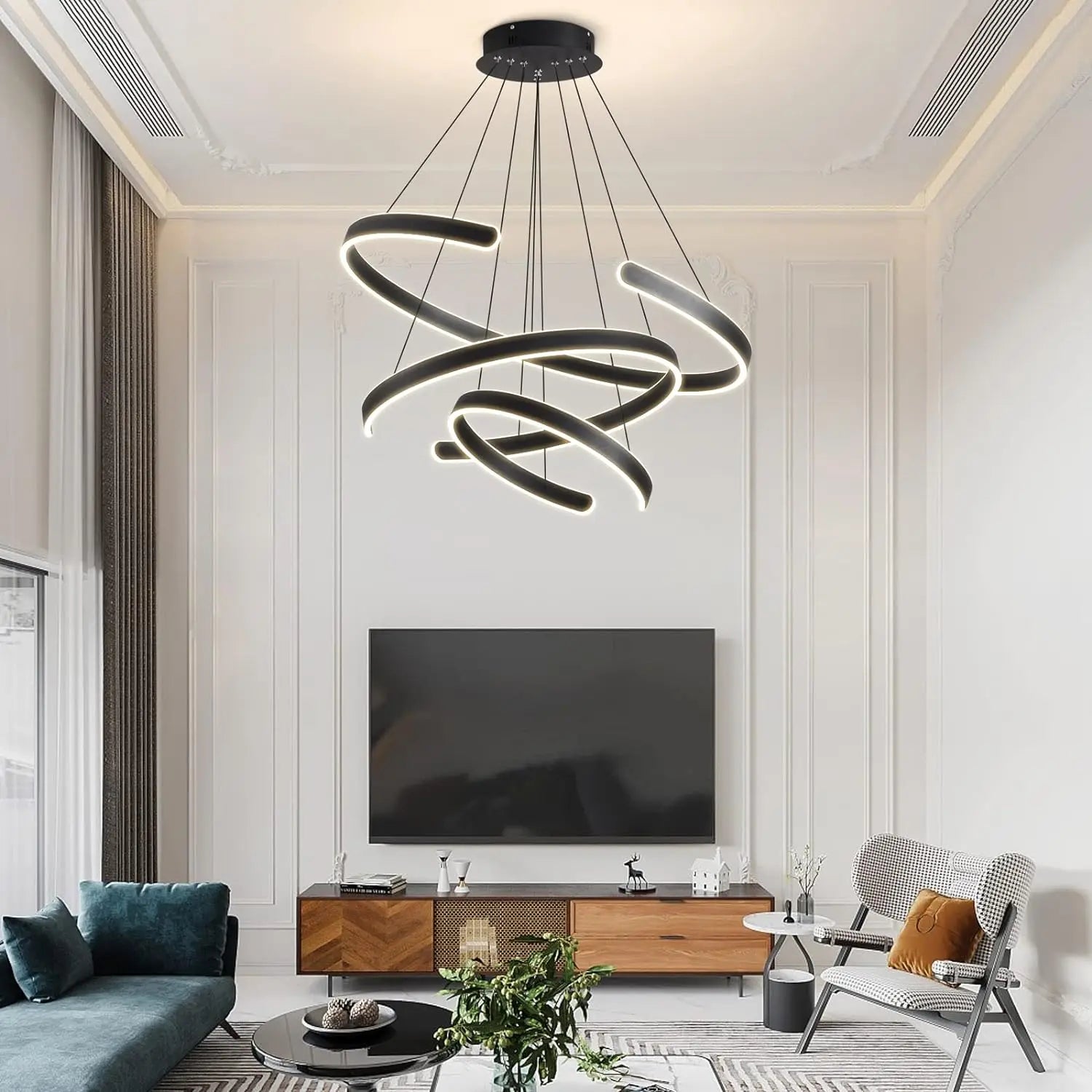 Designed with high-quality aluminum material, these pendant lights are durable and built to last. The LED bulbs provide ample lighting for a 10-15 square meter area, creating a warm and inviting ambiance in your living space. The luminous flux ranges from 2000 to 82000, offering customizable brightness to suit your preferences.