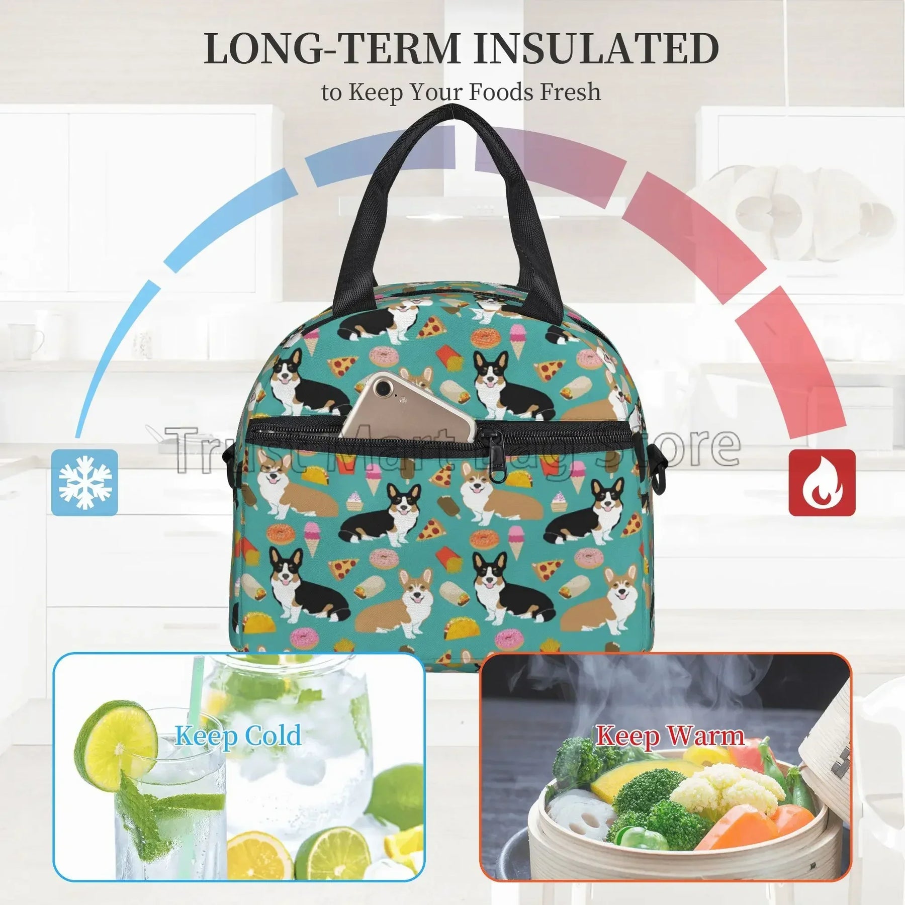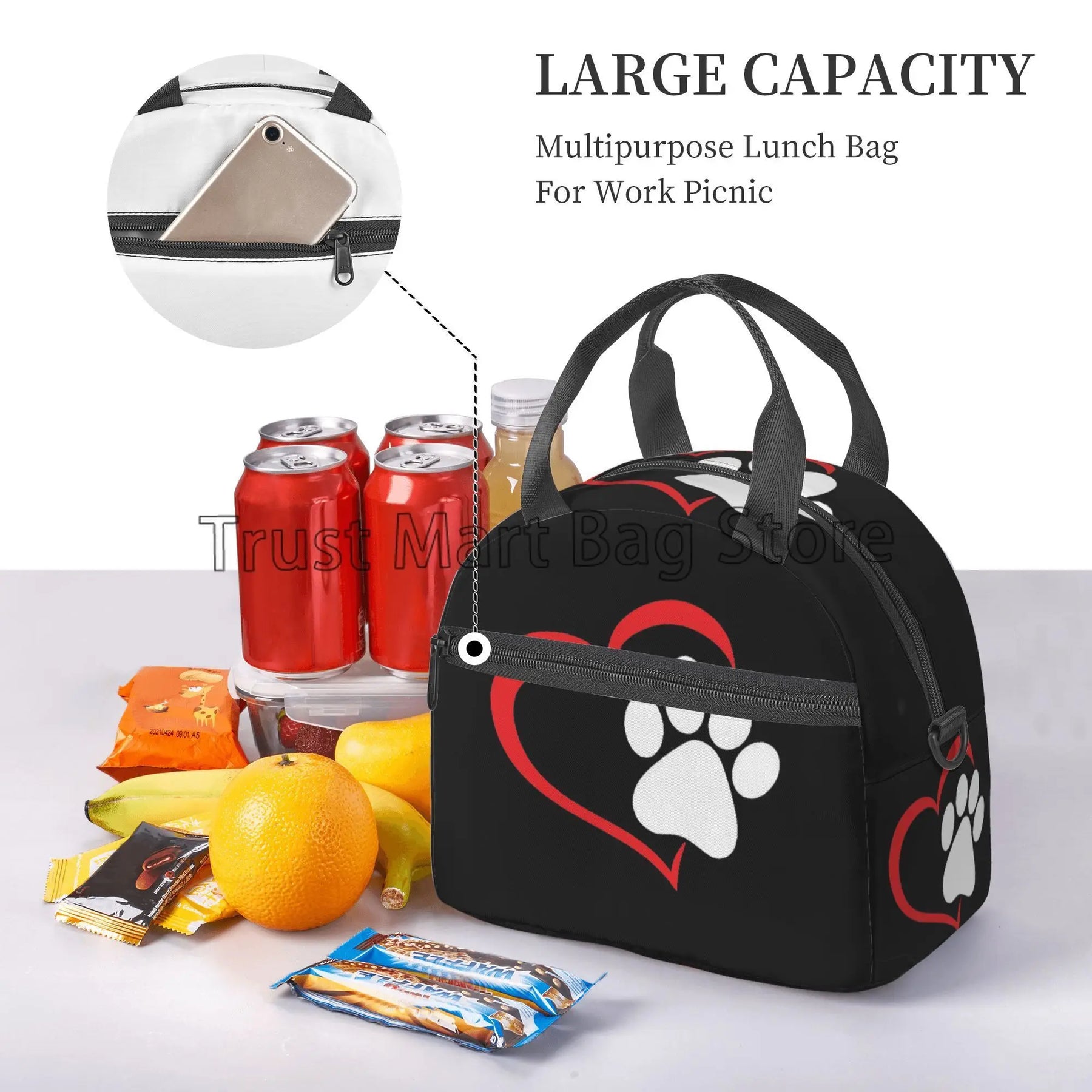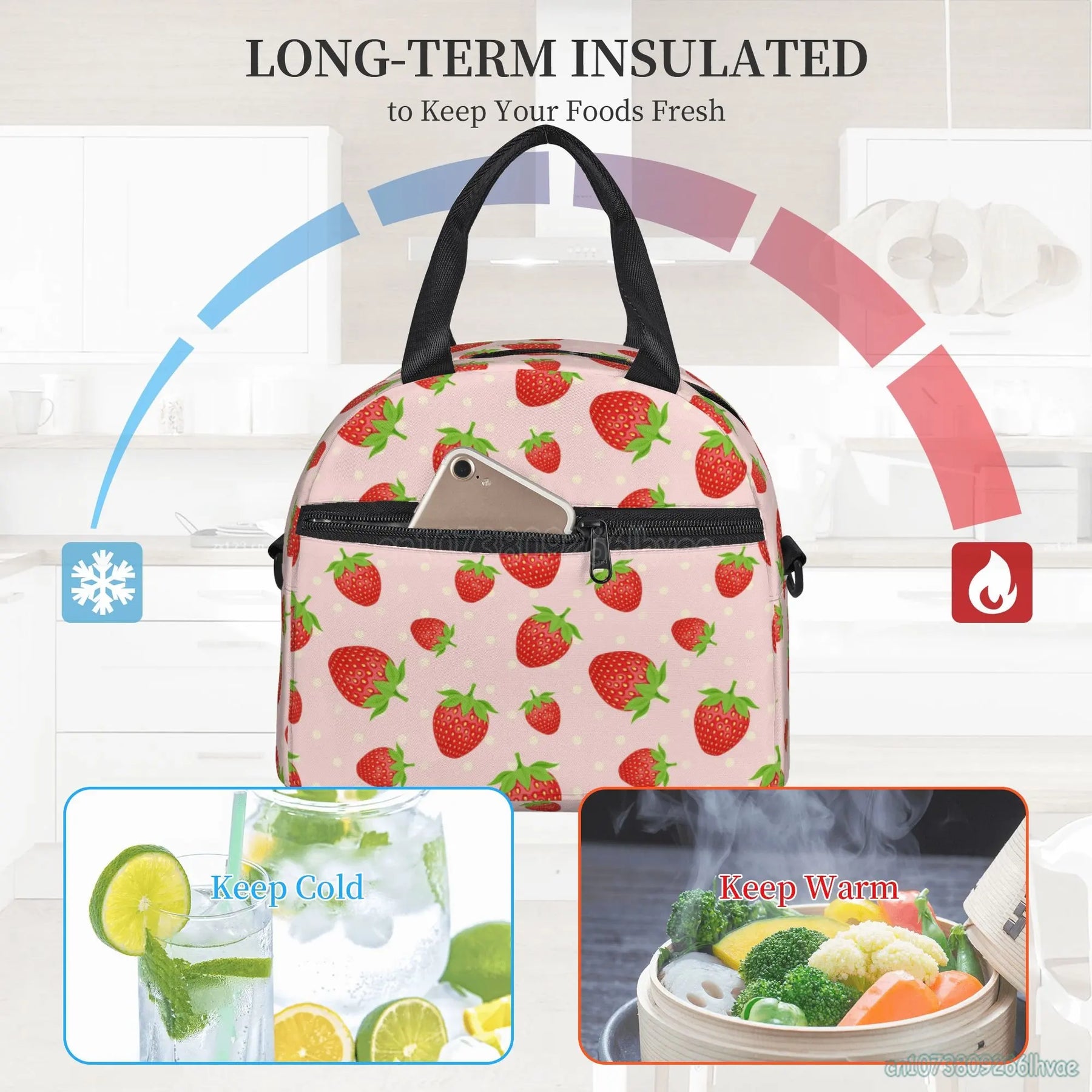 Our lunch bag features a spacious interior that can accommodate food for up to 2 persons, making it ideal for sharing meals with a loved one or a friend. The insulated design helps to keep your food fresh and at the right temperature, whether you're heading to work, school, or on a picnic.