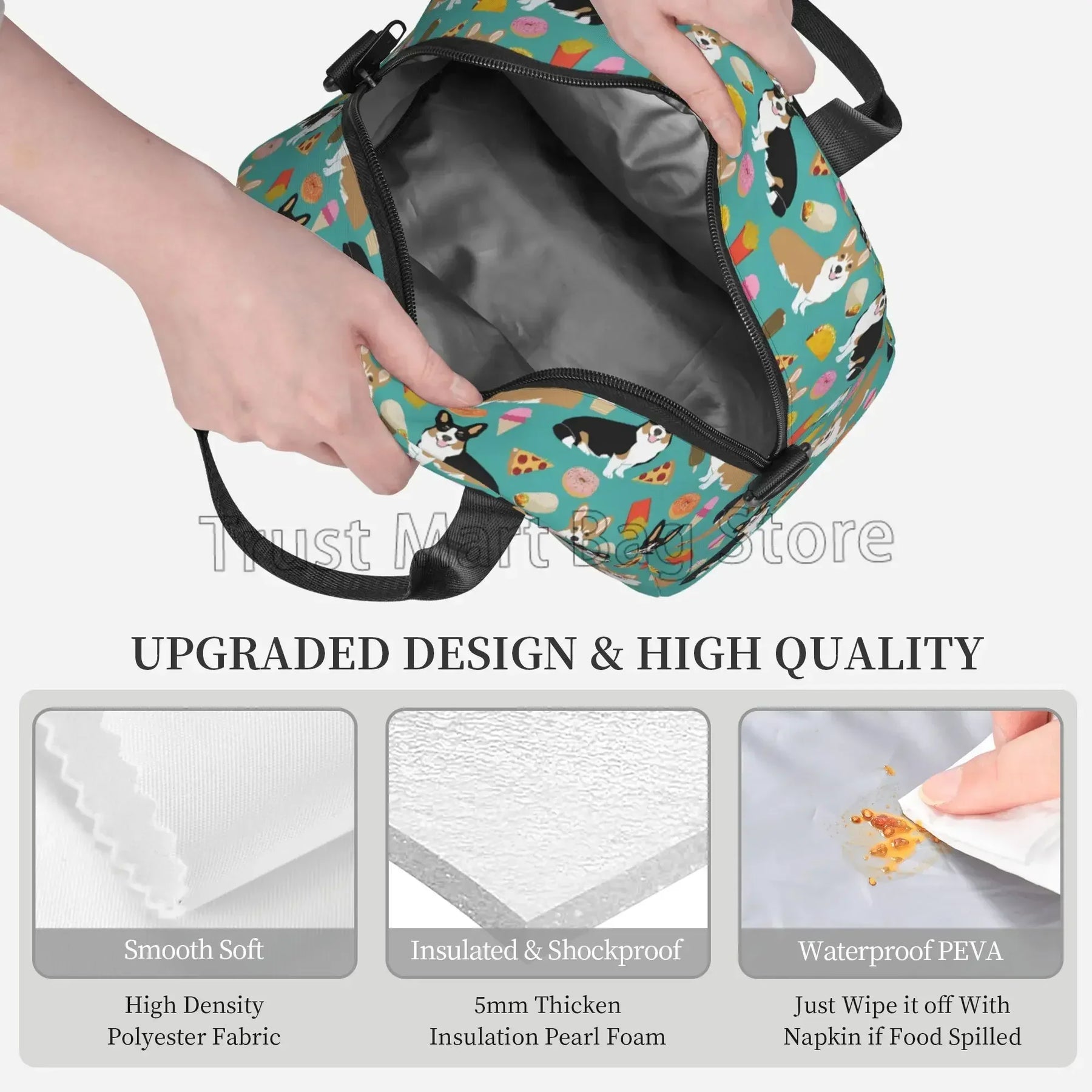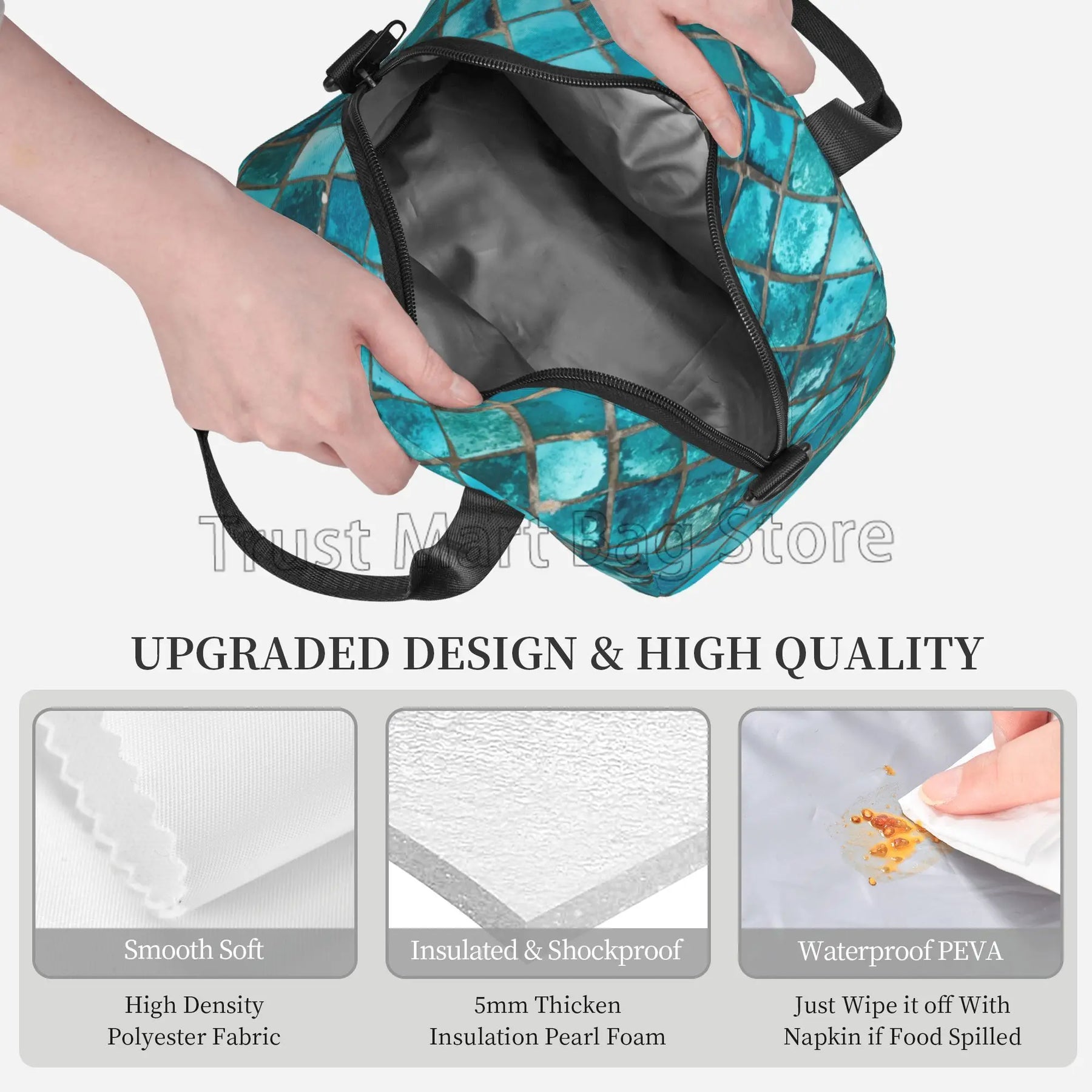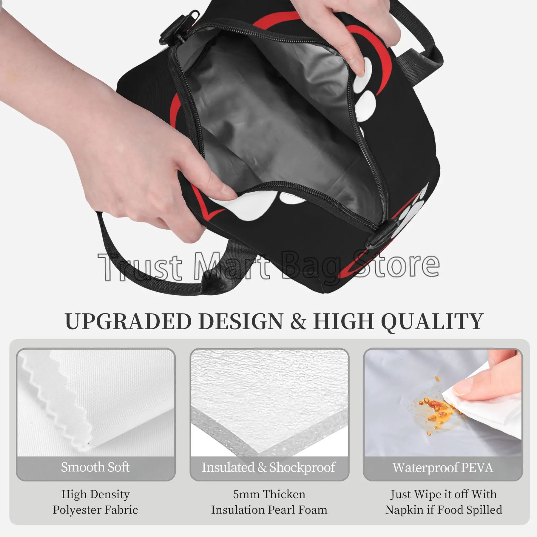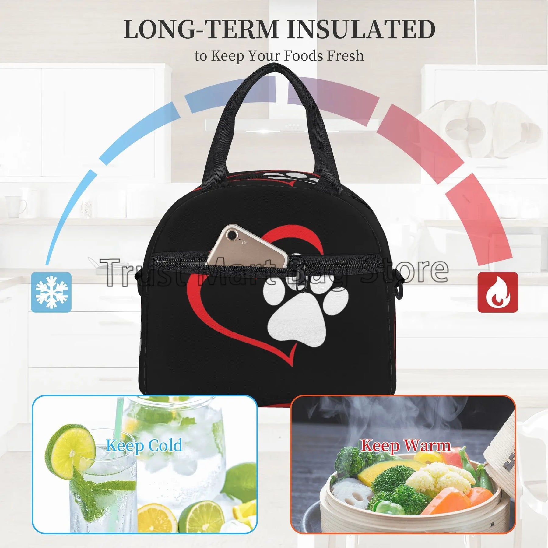 Our lunch bag features a spacious interior that can accommodate food for up to 2 persons, making it ideal for sharing meals with a loved one or a friend. The insulated design helps to keep your food fresh and at the right temperature, whether you're heading to work, school, or on a picnic.