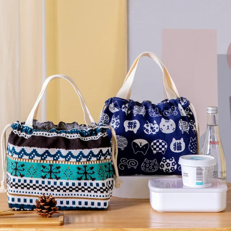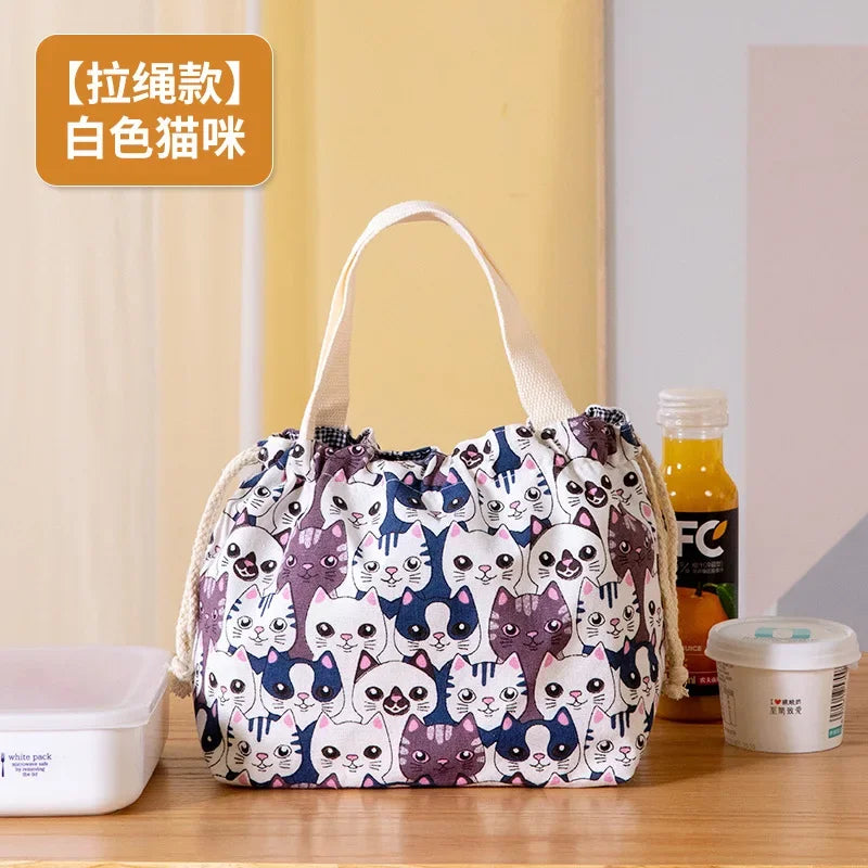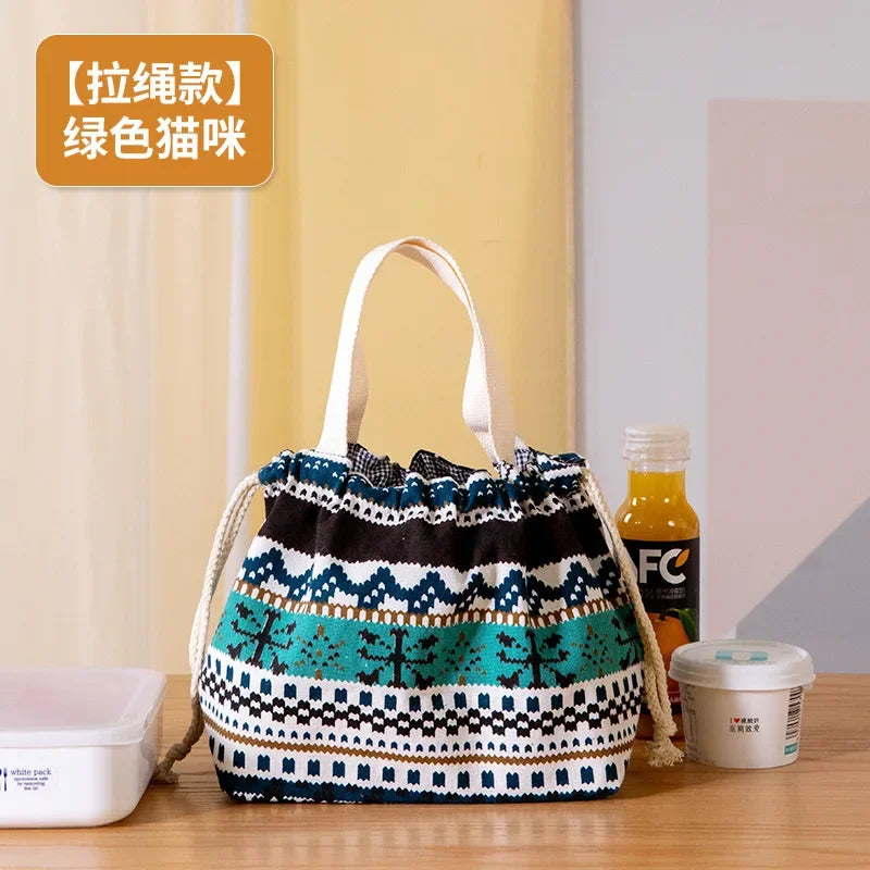 Axyaa Canvas Lunch Bag: New Fashion Student Bento Box Carry Bucket Bag